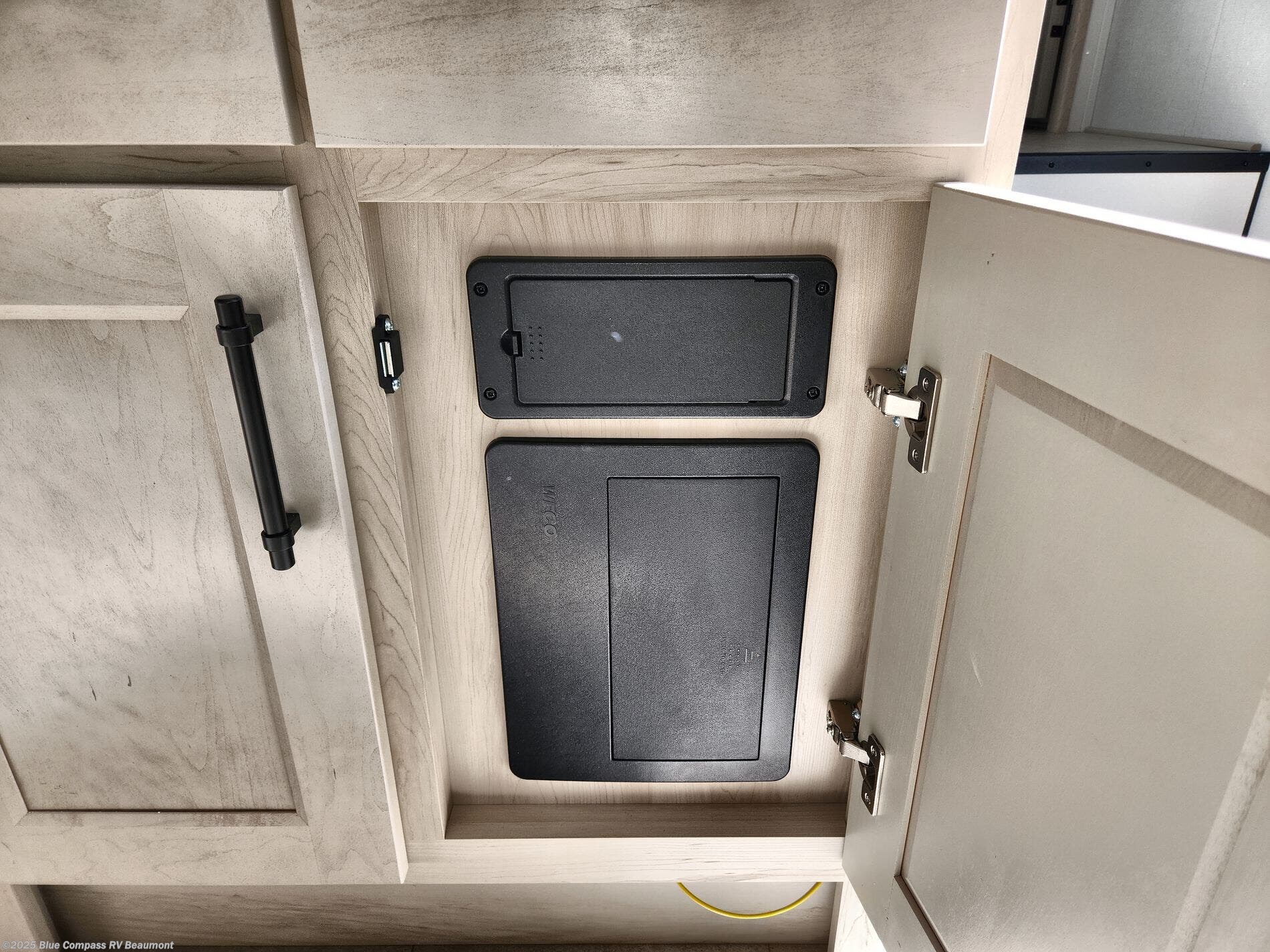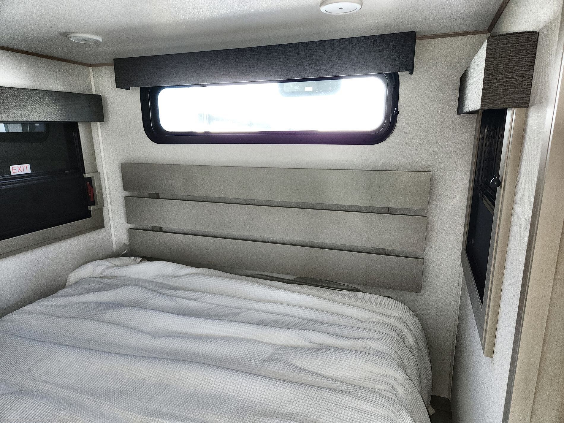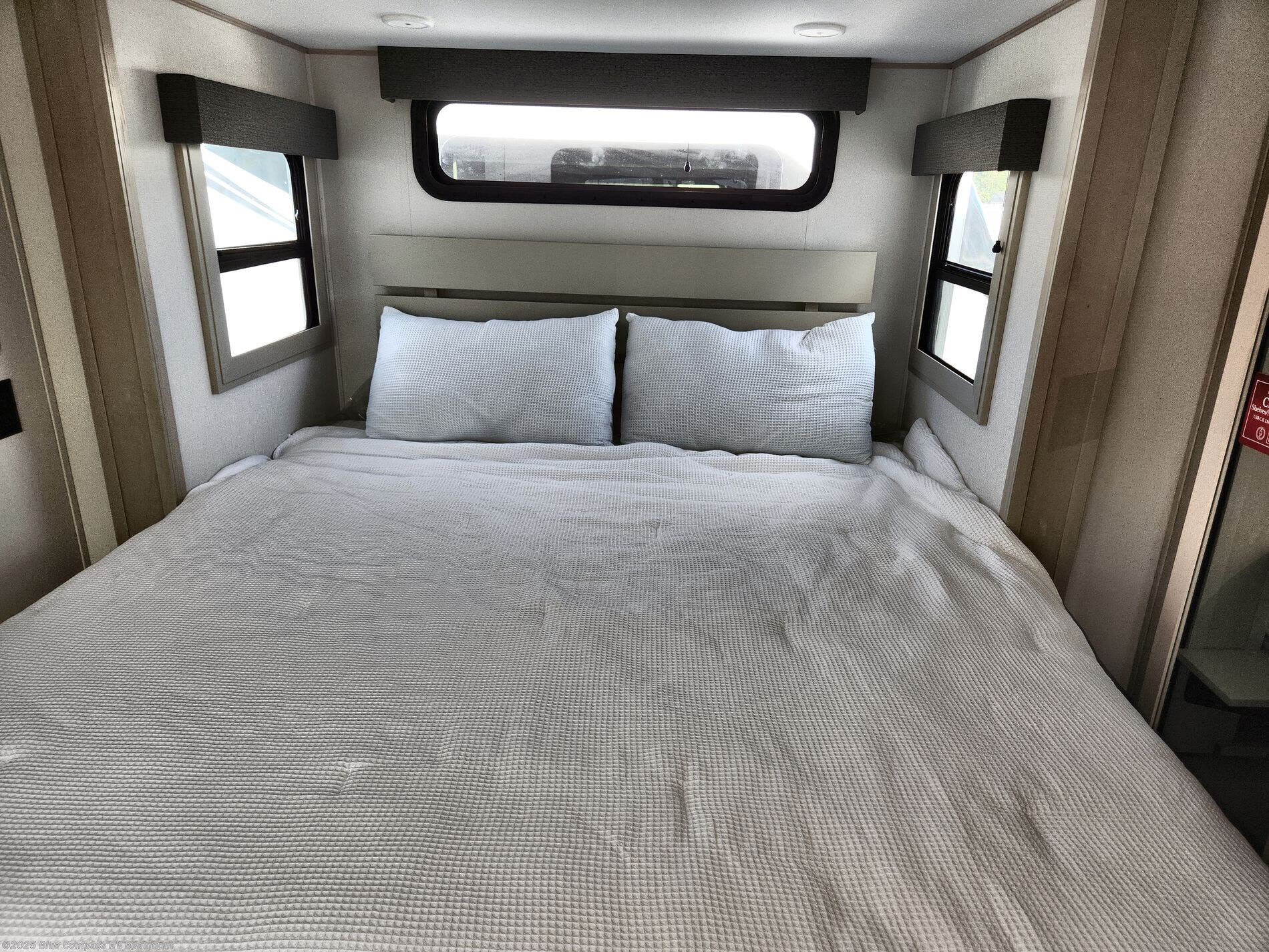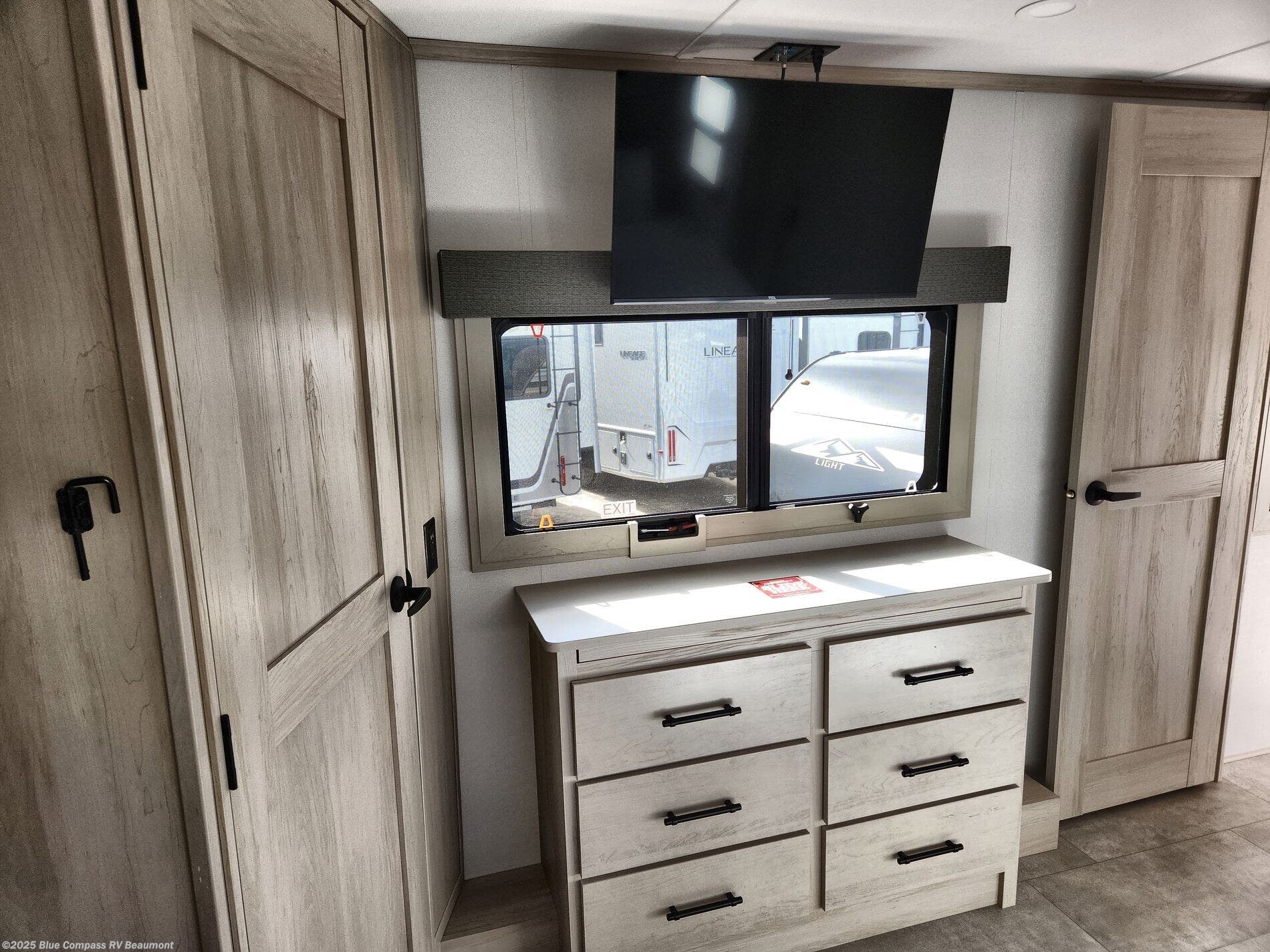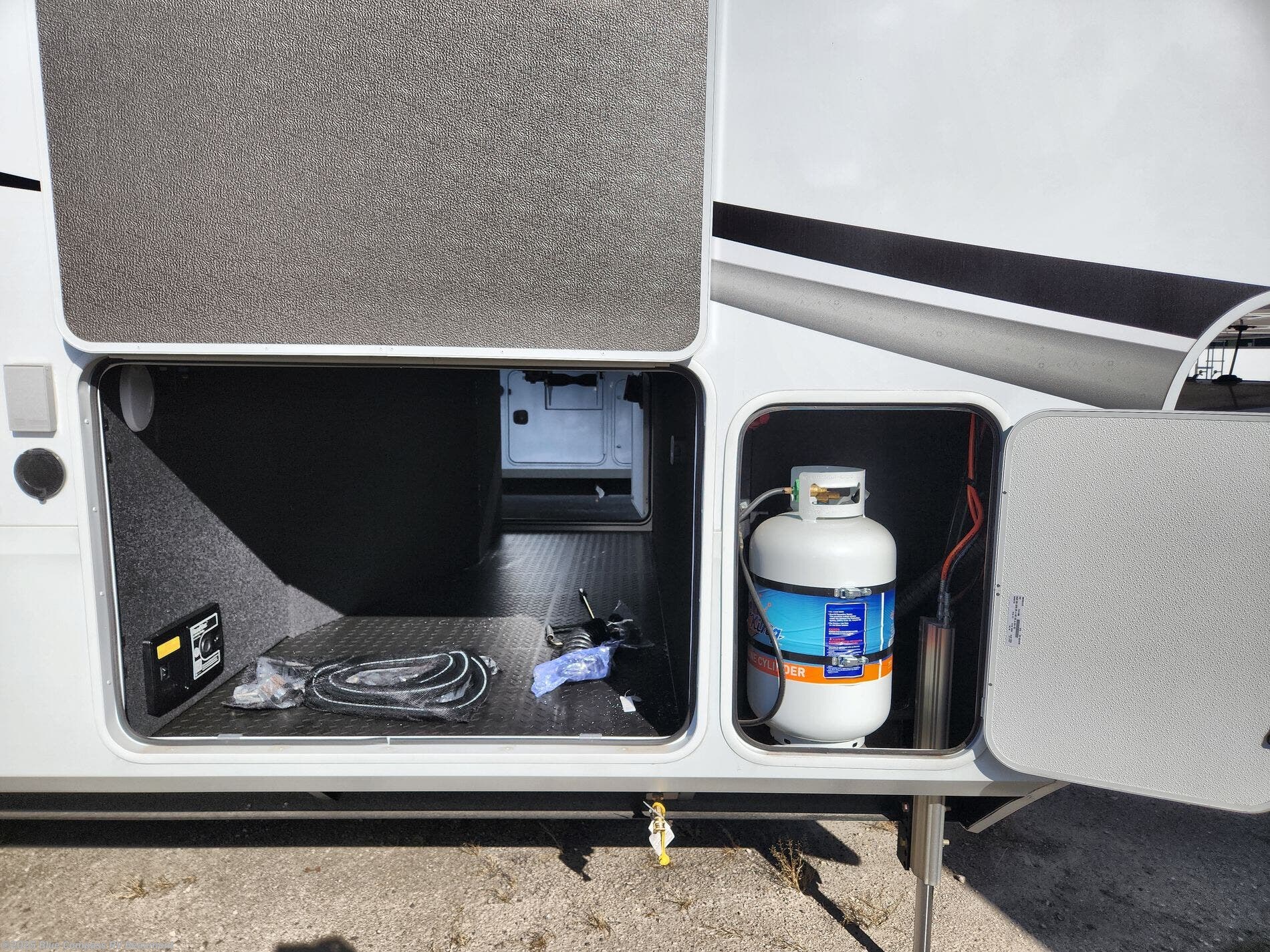 For an affordable luxury extended stay for your family, this Solitude is it! Two private bedrooms plus an overhead Sky Suite loft above the rear bedroom which also has it's own private rear entry/exit door is just the beginning of what is in store for your camping convenience. The upscale kitchen features an island with dishwasher prep, a smart sink, a 12V 20 cu. ft. refrigerator for your perishables, and a built-in oven. There is also a microwave, pantry, and hutch for your dishes, plus a free standing dinette! You can easily take along extra family and friends with the second private bedroom featuring it's own private bath and entry which is great for another couple, and there is even loft space above this rear private bedroom for added storage or sleeping for children. And, you will find ample storage for clothing and belongings throughout with nice size closets, overhead cabinets, plus loads of outside storage.