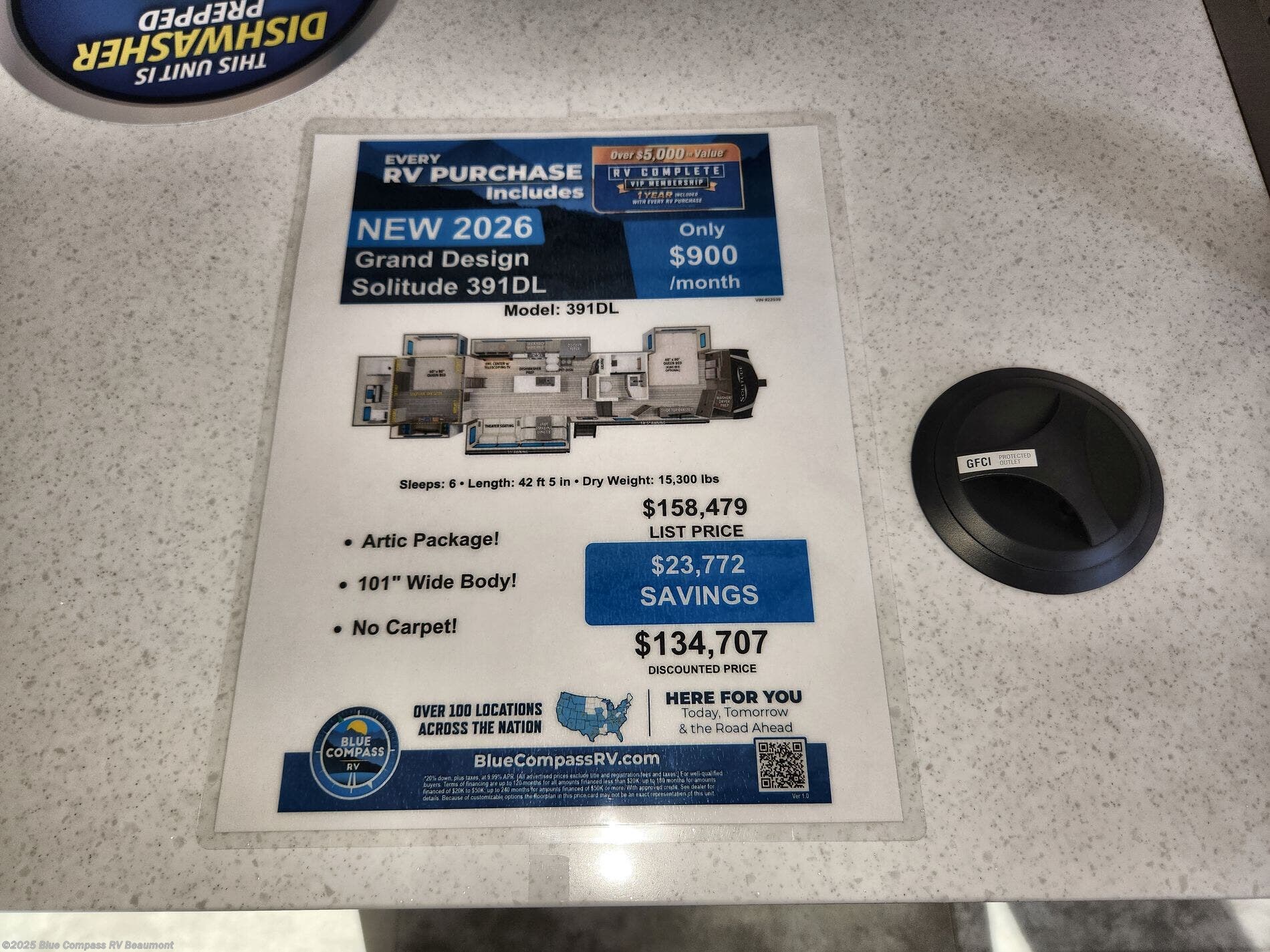 Request More Info on this 2026 Grand Design Solitude 391DL Offered for sale by Blue Compass RV Beaumont