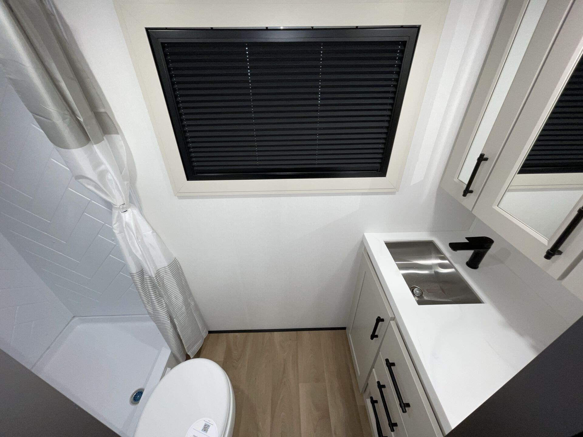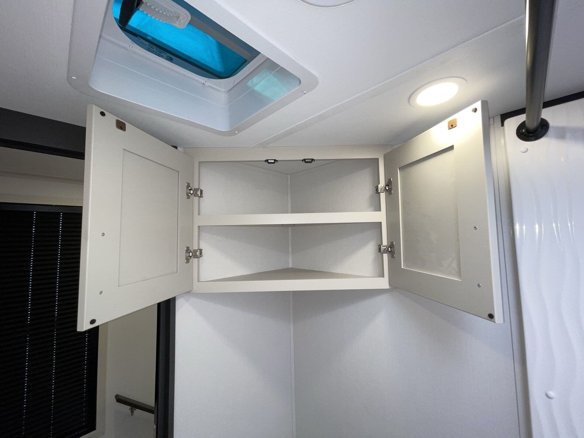 Storage is everywhere — inside closets, cabinets, and in the exterior bays — so you’re not constantly bumping into backpacks and camping gear. And the tank sizes and insulation are solid enough that you can comfortably stay out for extended trips without stressing hookups.