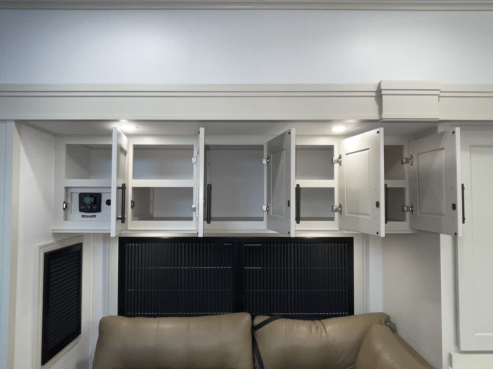 Bunk Beds, Bunkhouse, Day/Night Shades, Dinette, Fireplace, Free Standing Dinette w/Chairs, Hide-A-Bed, King Size Bed, Kitchen Sink, L Sofa, Medicine Cabinet, Overhead Cabinetry, Pantry, Pet Friendly, Queen Bed, Roof Vents, Shower, Solid Surface Countertops, Theater Seating, Toilet, Two Full Baths, Wardrobe(s), Washer/Dryer Prep