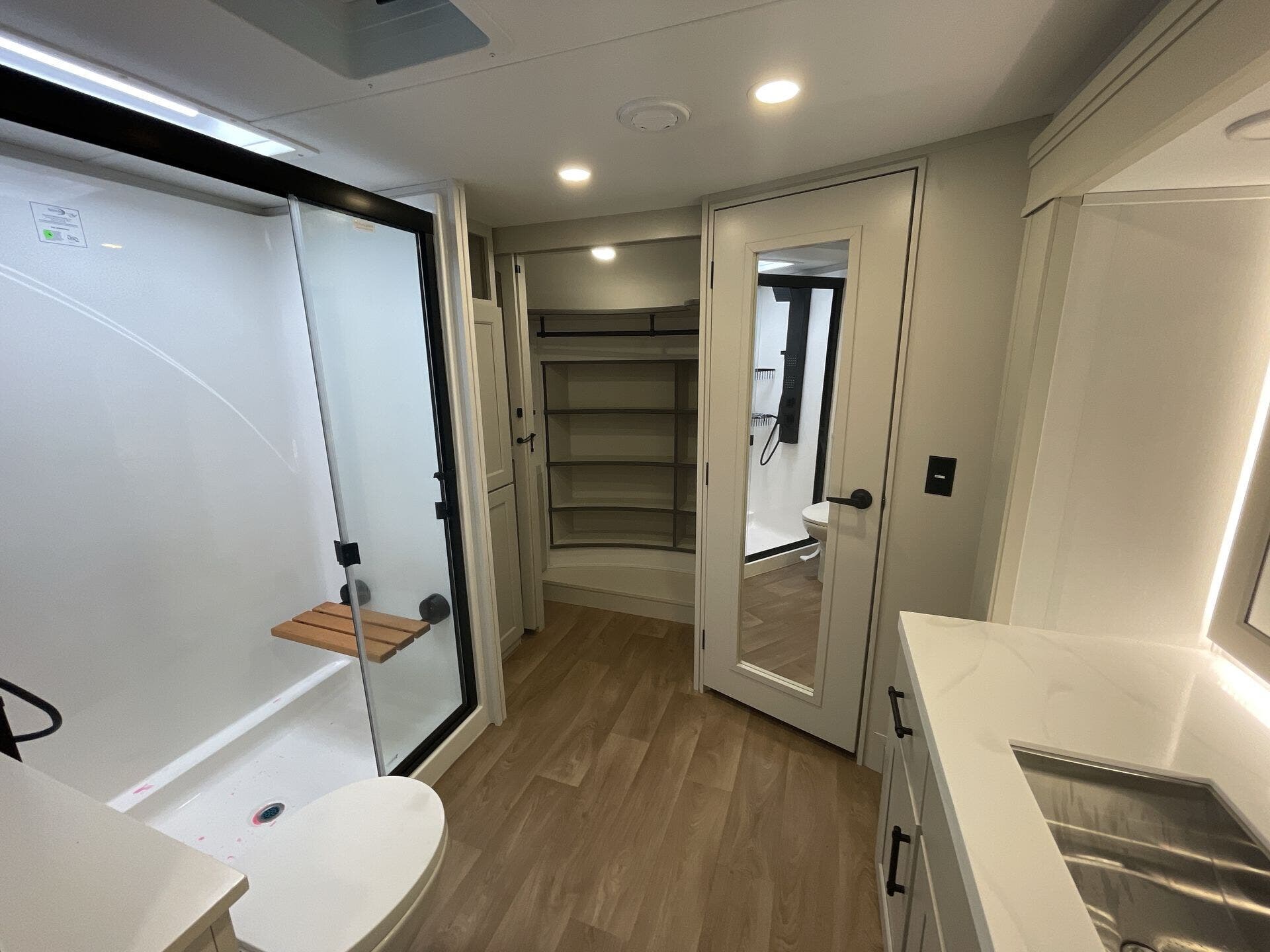 Dinette, Hide-A-Bed, Pantry, Pet Friendly, Queen Bed, Shower, Solid Surface Countertops, Theater Seating, Toilet, Washer/Dryer Prep