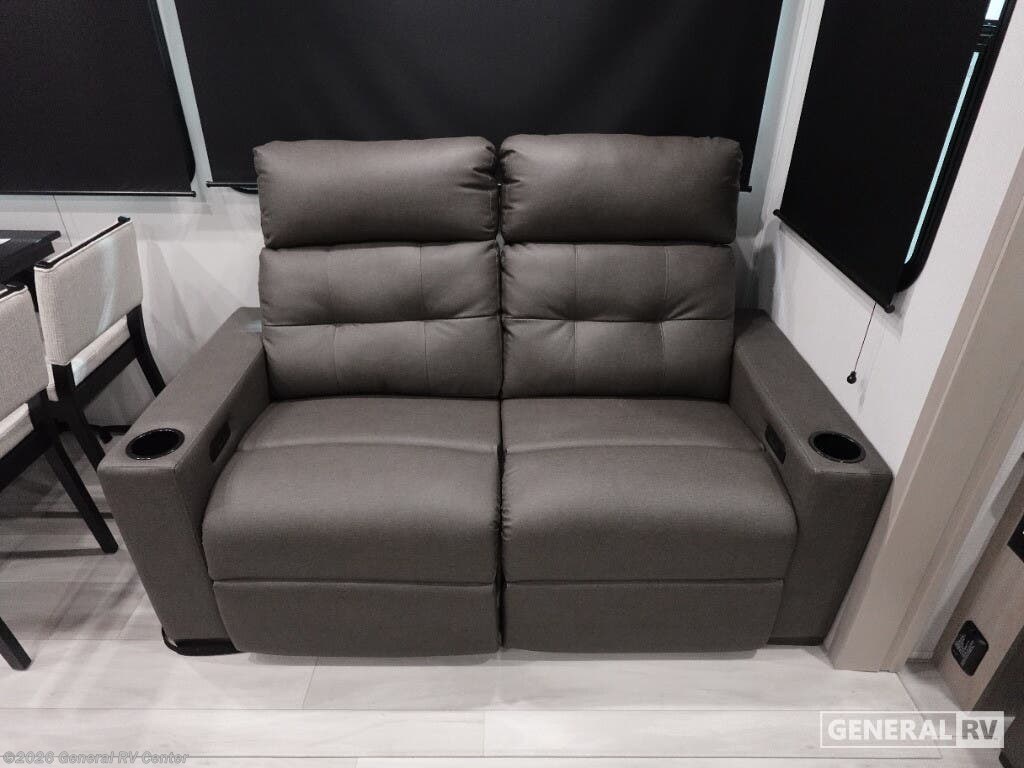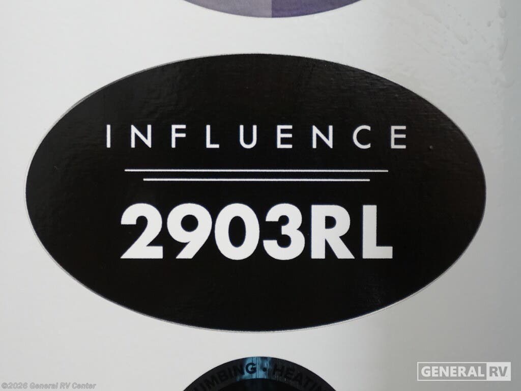 Grand Design Influence fifth wheel 2903RL highlights: Free-Standing Dinette 16' Power Awning with LED Lights Fireplace Kitchen Hutch Theater Seating Pet Dish You'll feel right at home in this spacious fifth wheel with triple slides, a front master bedroom, and a kitchen island with extra counter space. The theatre seating is right across from the entertainment center which includes a 40" TV and fireplace, and there is a rear tri-fold sofa if you have any guests staying over. This model includes a hutch in the kitchen with cabinets above to store you nice dishes, plus there is a large pantry with washer and dryer prep if you plan to go full-time. Head to the dual entry bath that includes a linen closet and a spacious shower, and check out the front master bedroom with its queen bed, and slide out wardrobe. Any Grand Design Influence fifth wheel features five-sided aluminum cage construction with a walk-on roof and a fully enclosed underbelly with heated tanks and storage for all weather camping. For peace of mind, the MORryde CRE3000 Suspension system will provide safe and smooth towing, and the 101" widebody construction offers all the room you need and that is before multiple slides are fully engaged. You will appreciate the Keyed-Alike locks, slam-latch baggage doors with magnetic door catches, exterior security light, and SolidStep entry steps. On the inside, Congoleum flooring, premium roller shades for privacy, a hallway handrail for safety, and nightstands with USB ports to keep all of your electronics fully charged. You will also love the on demand tankless water heater when showering, plus the added heat and ambiance from an electric fireplace, and so much more!