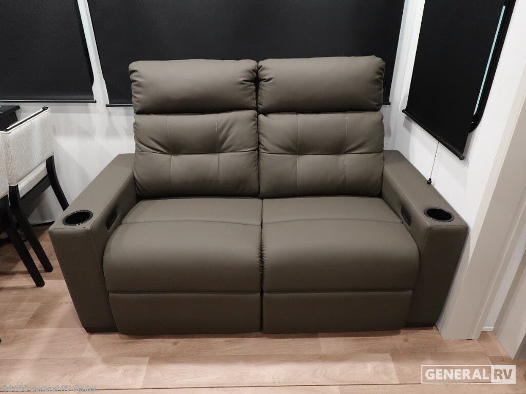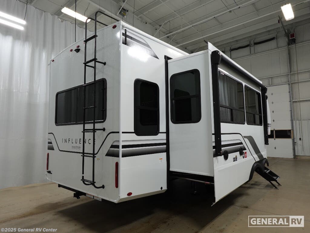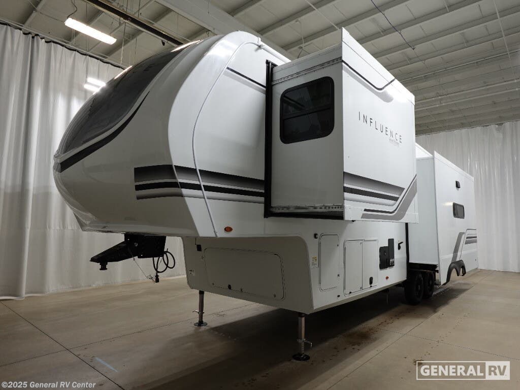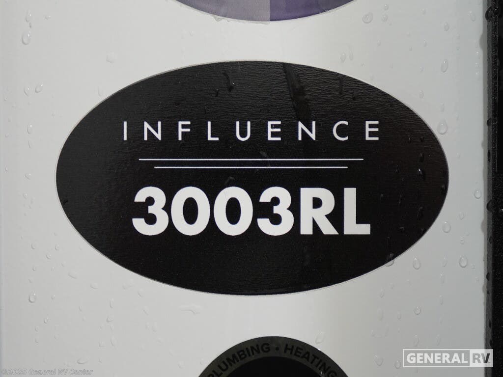 **Grand Design Influence fifth wheel 3003RL highlights:** Fireplace Kitchen Island Theater Seating Pass-Through Storage A perfect fifth wheel featuring triple slides and a tri-fold sofa for overnight guests! You will love the spacious interior thanks to the dual opposing slides in the main living and kitchen area. Here you will find a kitchen island in the center and plenty of seating with a free standing dinette, theater seating for movie night opposite the fireplace and entertainment center, as well as a tri-fold sofa. The kitchen offers all of the amenities just like home, a 16 cu. ft. 12-volt refrigerator for your perishables, and a hutch with an electronics drawer to keep your gadgets organized. There is even a pet dish under the refrigerator for your furry friends. The spacious full bath includes a 48" x 30" shower, dual linen closets, and an accessory drawer for necessities. You'll love the front bedroom with its king bed slide out, slide top dresser, front wardrobe with washer and dryer prep, plus a pass-thru clothes hamper between the bedroom and bath; how convenient! Any Grand Design Influence fifth wheel features five-sided aluminum cage construction with a walk-on roof and a fully enclosed underbelly with heated tanks and storage for all weather camping. For peace of mind, the MORryde CRE3000 Suspension system will provide safe and smooth towing, and the 101" widebody construction offers all the room you need and that is before multiple slides are fully engaged. You will appreciate the Keyed-Alike locks, slam-latch baggage doors with magnetic door catches, exterior security light, and SolidStep entry steps. On the inside, Congoleum flooring, premium roller shades for privacy, a hallway handrail for safety, and nightstands with USB ports to keep all of your electronics fully charged. You will also love the On Demand tankless water heater when showering, plus the added heat and ambiance from an electric fireplace, and so much more!