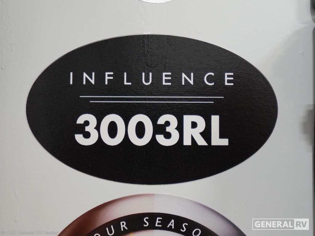 Grand Design Influence fifth wheel 3003RL highlights: Fireplace Kitchen Island Theater Seating Pass-Through Storage A perfect fifth wheel featuring triple slides and a tri-fold sofa for overnight guests! You will love the spacious interior thanks to the dual opposing slides in the main living and kitchen area. Here you will find a kitchen island in the center and plenty of seating with a free standing dinette, theater seating for movie night opposite the fireplace and entertainment center, as well as a tri-fold sofa. The kitchen offers all of the amenities just like home, a 16 cu. ft. 12-volt refrigerator for your perishables, and a hutch with an electronics drawer to keep your gadgets organized. There is even a pet dish under the refrigerator for your furry friends. The spacious full bath includes a 48" x 30" shower, dual linen closets, and an accessory drawer for necessities. You'll love the front bedroom with its king bed slide out, slide top dresser, front wardrobe with washer and dryer prep, plus a pass-thru clothes hamper between the bedroom and bath; how convenient! Any Grand Design Influence fifth wheel features five-sided aluminum cage construction with a walk-on roof and a fully enclosed underbelly with heated tanks and storage for all weather camping. For peace of mind, the MORryde CRE3000 Suspension system will provide safe and smooth towing, and the 101" widebody construction offers all the room you need and that is before multiple slides are fully engaged. You will appreciate the Keyed-Alike locks, slam-latch baggage doors with magnetic door catches, exterior security light, and SolidStep entry steps. On the inside, Congoleum flooring, premium roller shades for privacy, a hallway handrail for safety, and nightstands with USB ports to keep all of your electronics fully charged. You will also love the On Demand tankless water heater when showering, plus the added heat and ambiance from an electric fireplace, and so much more!