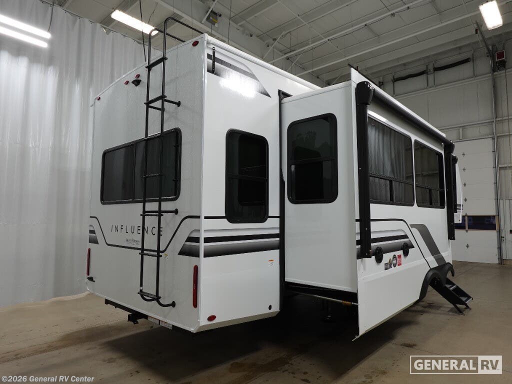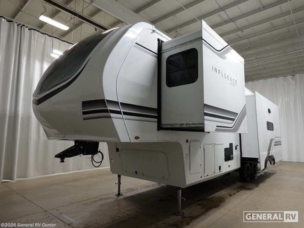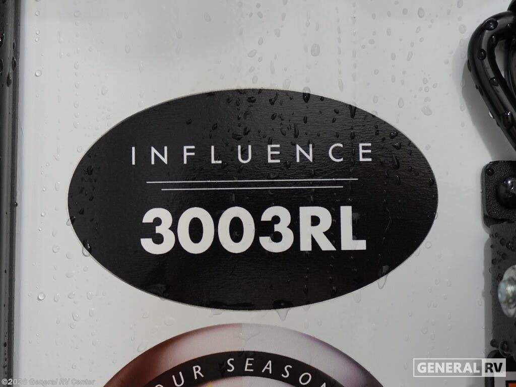 Grand Design Influence fifth wheel 3003RL highlights: Fireplace Kitchen Island Theater Seating Pass-Through Storage A perfect fifth wheel featuring triple slides and a tri-fold sofa for overnight guests! You will love the spacious interior thanks to the dual opposing slides in the main living and kitchen area. Here you will find a kitchen island in the center and plenty of seating with a free standing dinette, theater seating for movie night opposite the fireplace and entertainment center, as well as a tri-fold sofa. The kitchen offers all of the amenities just like home, a 16 cu. ft. 12-volt refrigerator for your perishables, and a hutch with an electronics drawer to keep your gadgets organized. There is even a pet dish under the refrigerator for your furry friends. The spacious full bath includes a 48" x 30" shower, dual linen closets, and an accessory drawer for necessities. You'll love the front bedroom with its king bed slide out, slide top dresser, front wardrobe with washer and dryer prep, plus a pass-thru clothes hamper between the bedroom and bath; how convenient! Any Grand Design Influence fifth wheel features five-sided aluminum cage construction with a walk-on roof and a fully enclosed underbelly with heated tanks and storage for all weather camping. For peace of mind, the MORryde CRE3000 Suspension system will provide safe and smooth towing, and the 101" widebody construction offers all the room you need and that is before multiple slides are fully engaged. You will appreciate the Keyed-Alike locks, slam-latch baggage doors with magnetic door catches, exterior security light, and SolidStep entry steps. On the inside, Congoleum flooring, premium roller shades for privacy, a hallway handrail for safety, and nightstands with USB ports to keep all of your electronics fully charged. You will also love the On Demand tankless water heater when showering, plus the added heat and ambiance from an electric fireplace, and so much more!
