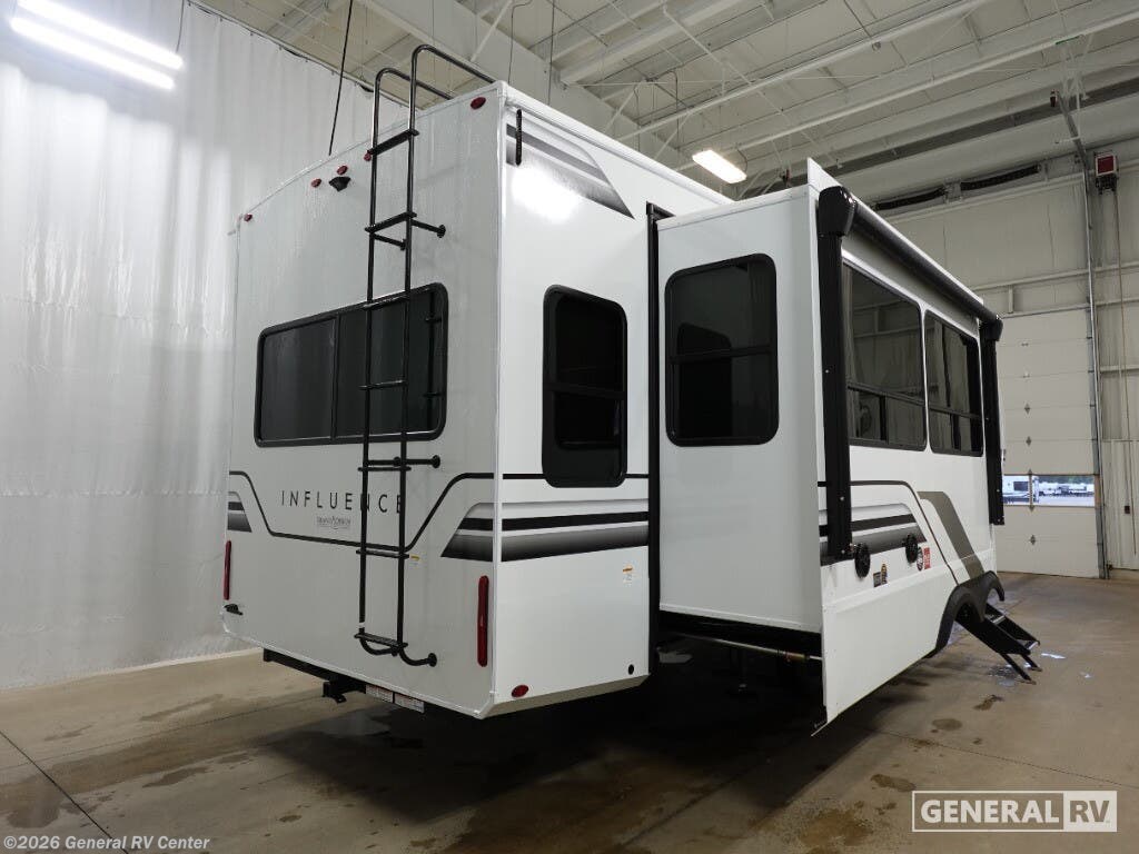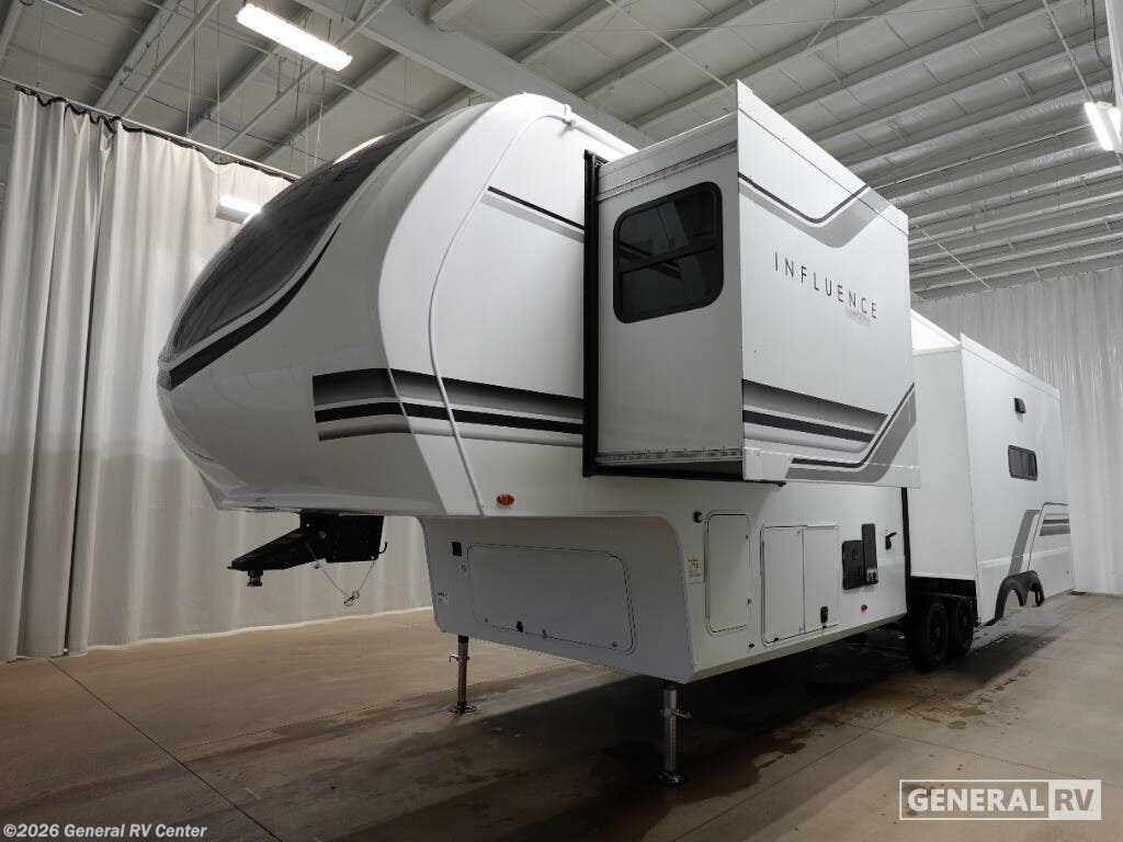 Grand Design Influence fifth wheel 3003RL highlights: Fireplace Kitchen Island Theater Seating Pass-Through Storage A perfect fifth wheel featuring triple slides and a tri-fold sofa for overnight guests! You will love the spacious interior thanks to the dual opposing slides in the main living and kitchen area. Here you will find a kitchen island in the center and plenty of seating with a free standing dinette, theater seating for movie night opposite the fireplace and entertainment center, as well as a tri-fold sofa. The kitchen offers all of the amenities just like home, a 16 cu. ft. 12-volt refrigerator for your perishables, and a hutch with an electronics drawer to keep your gadgets organized. There is even a pet dish under the refrigerator for your furry friends. The spacious full bath includes a 48" x 30" shower, dual linen closets, and an accessory drawer for necessities. You'll love the front bedroom with its king bed slide out, slide top dresser, front wardrobe with washer and dryer prep, plus a pass-thru clothes hamper between the bedroom and bath; how convenient! Any Grand Design Influence fifth wheel features five-sided aluminum cage construction with a walk-on roof and a fully enclosed underbelly with heated tanks and storage for all weather camping. For peace of mind, the MORryde CRE3000 Suspension system will provide safe and smooth towing, and the 101" widebody construction offers all the room you need and that is before multiple slides are fully engaged. You will appreciate the Keyed-Alike locks, slam-latch baggage doors with magnetic door catches, exterior security light, and SolidStep entry steps. On the inside, Congoleum flooring, premium roller shades for privacy, a hallway handrail for safety, and nightstands with USB ports to keep all of your electronics fully charged. You will also love the On Demand tankless water heater when showering, plus the added heat and ambiance from an electric fireplace, and so much more!