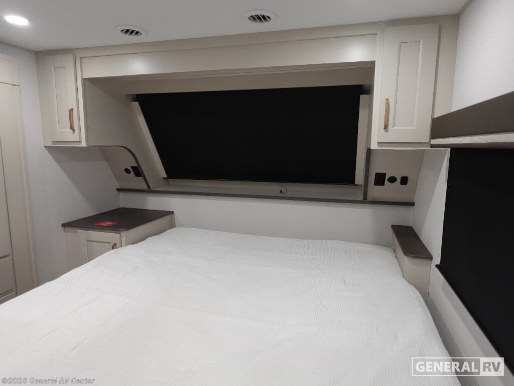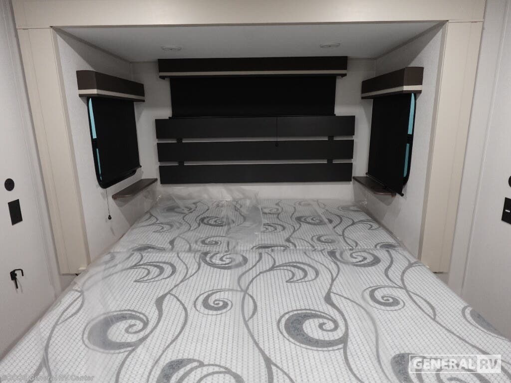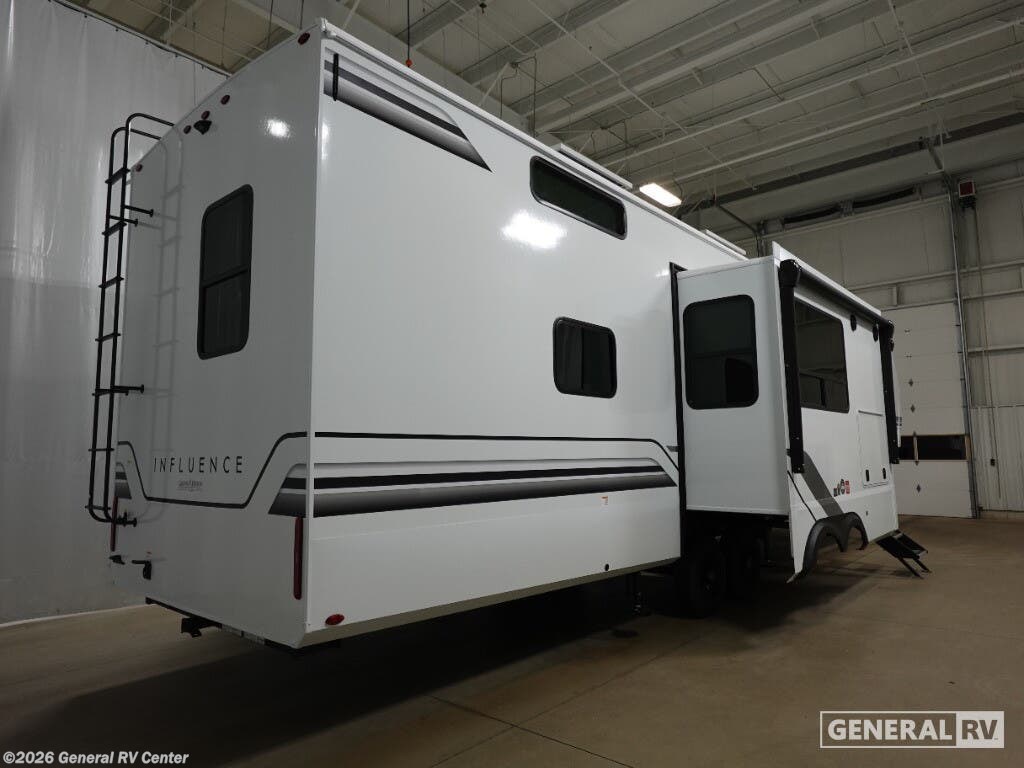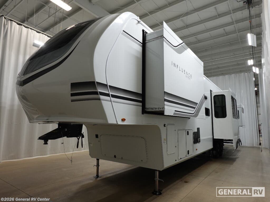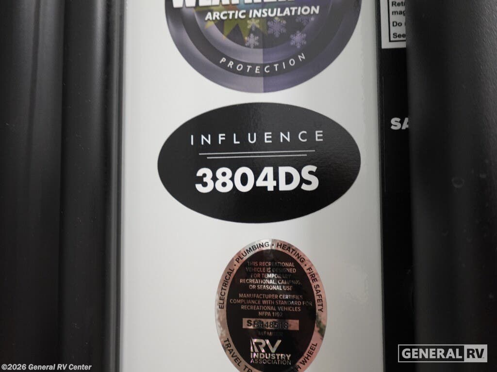 Experience the pinnacle of luxury and innovation with the 2026 Grand Design Influence 3804DS. This RV is designed to elevate your travel experience with its spacious and thoughtfully crafted interior. At 42 feet in length, it offers ample room for relaxation and entertainment. The living area features a plush sofa and an entertainment center with a 50" TV, perfect for cozy nights in. The kitchen is a chef's delight, equipped with a 16 cu ft refrigerator and ample pantry space, ensuring you have everything you need for gourmet meals on the road. The sleeping arrangements are equally impressive, accommodating up to six people. The master suite boasts a 60" x 80" queen bed, while a loft above the bedroom offers additional sleeping space with a folding queen bed, making it ideal for families or guests. With two awnings providing shade and comfort, and generous storage options including pass-thru and exterior storage, the Influence 3804DS ensures you have everything you need for memorable adventures. Discover this extraordinary RV at your nearest General RV dealership and start your journey today.