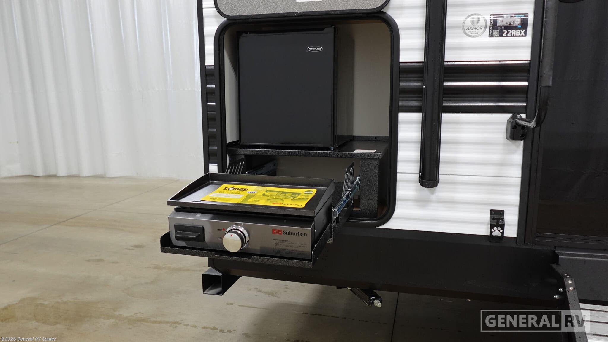 Grand Design Transcend Xplor travel trailer 22RBX highlights: Full Rear Bath Pull-Out Trash Can Exterior Griddle Front Private Bedroom Pack your bags and head for the campground in this spacious travel trailer! Once you arrive, you can unload the pass-thru storage, then make lunch on the exterior griddle with a 1.7 cu. ft. exterior refrigerator. The U-shaped dinette slide will provide a place to dine if you decide not to stay outside under the 16' power awning. You'll sleep soundly on the queen bed in the front bedroom, and the full rear bath lets you freshen up each day. The customer-focused, quality-built Transcend Xplor travel trailers by Grand Design are your ticket to fun and adventure. You will appreciate the power tongue jack when it comes time to set up, as well as the all-in-one utility center and the detachable power cord with an LED light. These models include many outlets throughout, USB ports to charge your gadgets, and a JBL exterior speaker to listen to your favorite tunes. The interior of the Transcend Xplor will have you feeling right at home with upgraded residential furniture, residential countertops, residential cabinet doors, and the list goes on!