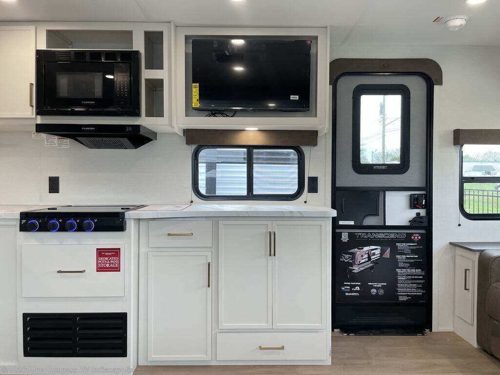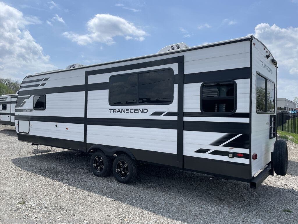 With any Transcend travel trailer by Grand Design, you will enjoy upscale appointments and convenient amenities to make each camping experience one to remember! The Quad Seal technology, residential insulated walls, plus heated and enclosed underbelly with suspended tanks make these units solid and durable. There is a black automotive glass door outside, along with a Safe-T-Rail assist on the main entry door, backup camera prep, and a universal docking station. JBL interior and exterior speakers plus a JBL head unit will let you listen to your favorite tunes as you visit under the power awning with LED strip lights. Inside, you'll enjoy multiple outlets to keep your gadgets charged, thermoformed and seamless countertops, and a 6' 6" interior height so you won't feel closed in. The Solar Prep Package will allow you to enjoy off-grid capabilities with a 200W solar panel, which is wired for up to 600W, a 30 AMP Bluetooth solar controller, a 2000W inverter prep, and more!