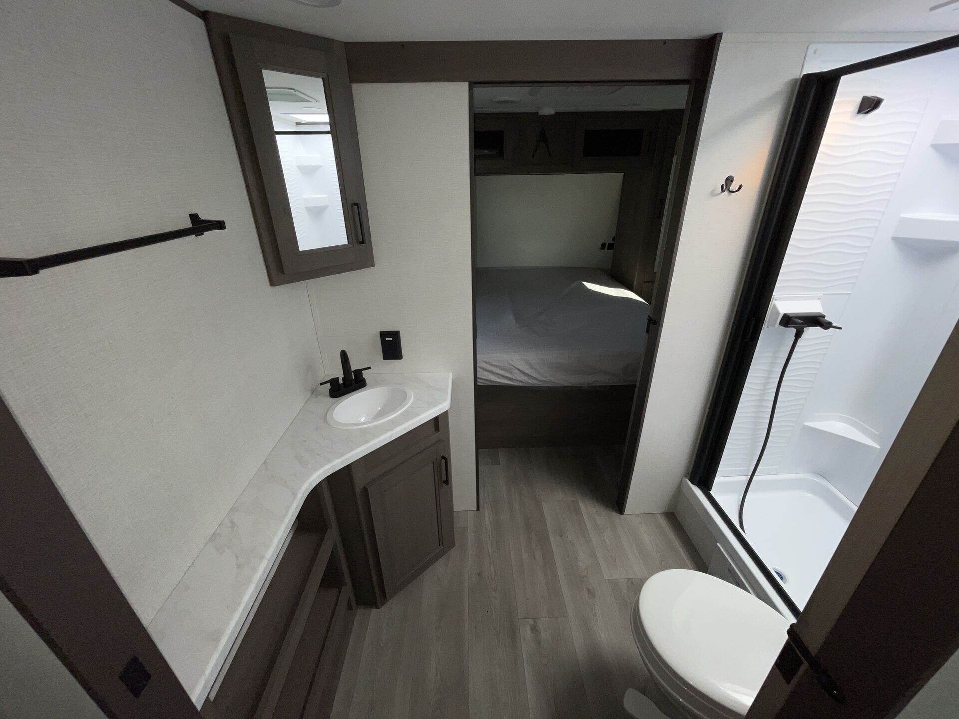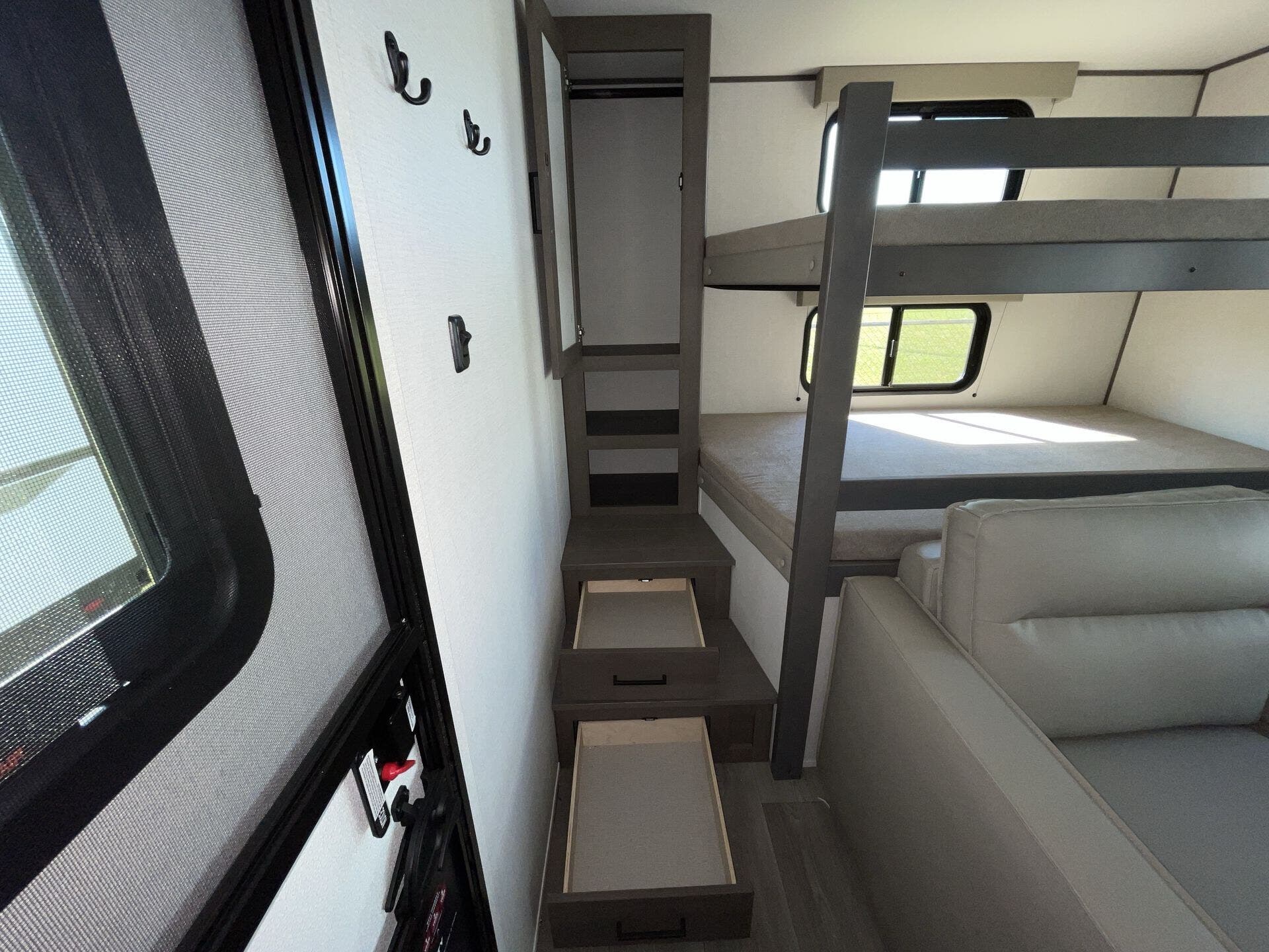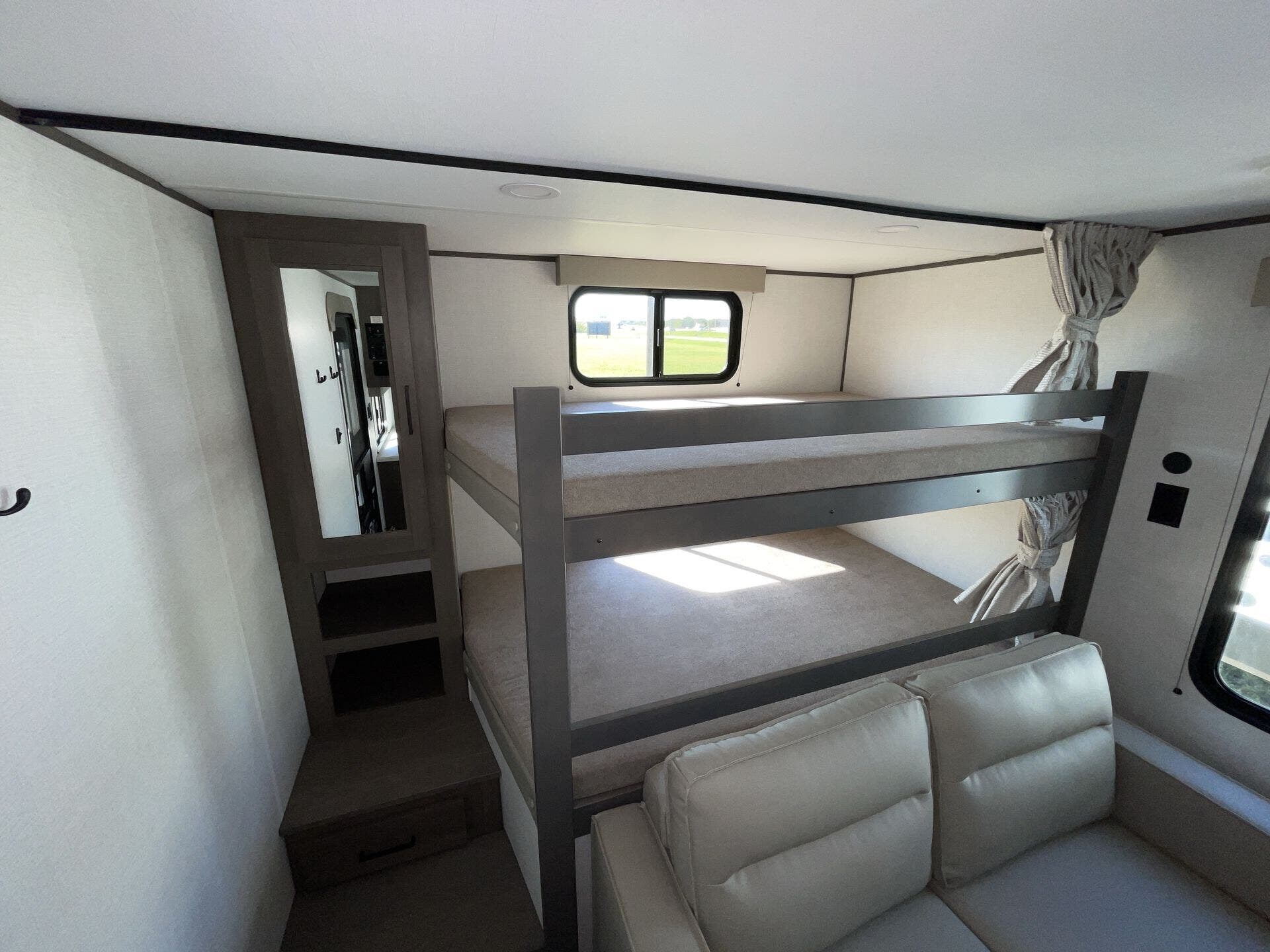 Booth Dinette, Bunk Beds, Bunkhouse, Dinette Bed, Kitchen Sink, Medicine Cabinet, Overhead Cabinetry, Queen Bed, Removable Table, Roof Vents, Shower, Sofa Bed, Toilet, U-Shaped Dinette, Wardrobe(s)