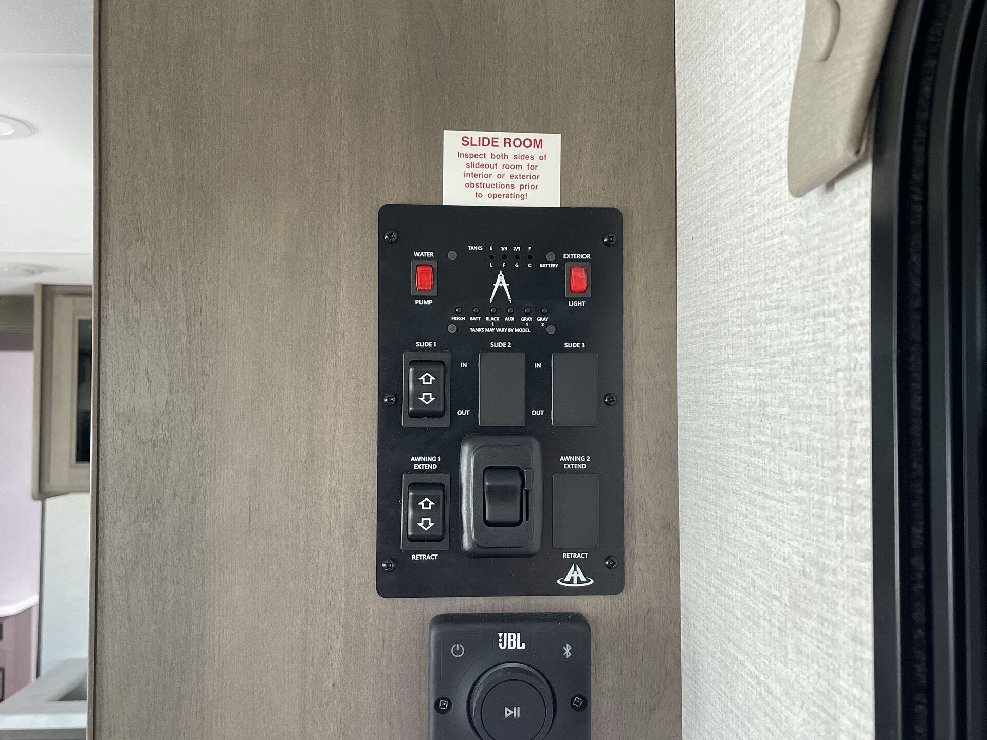 Awning, Hitch, Leveling Jacks, Slideout, Spare Tire Kit -