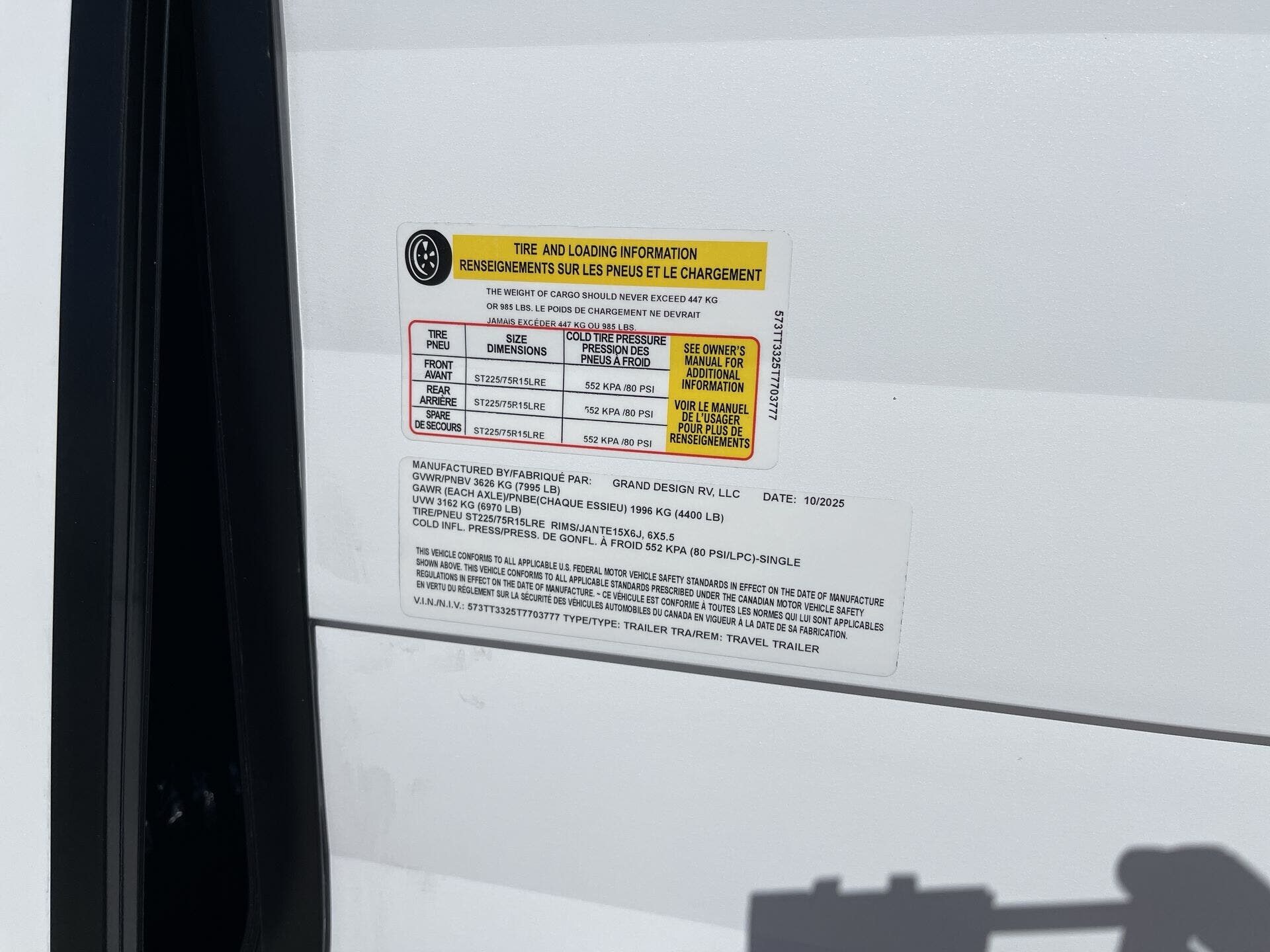 - VIN573TT3325T7703777