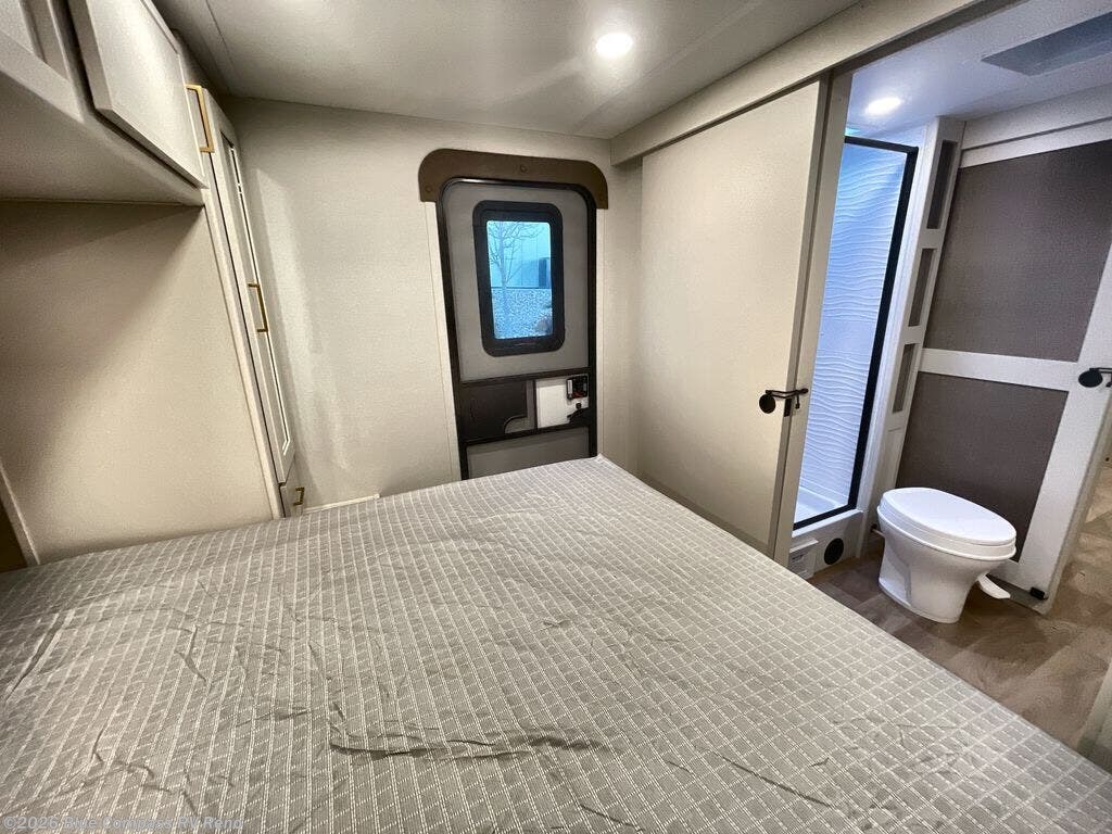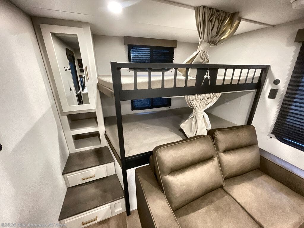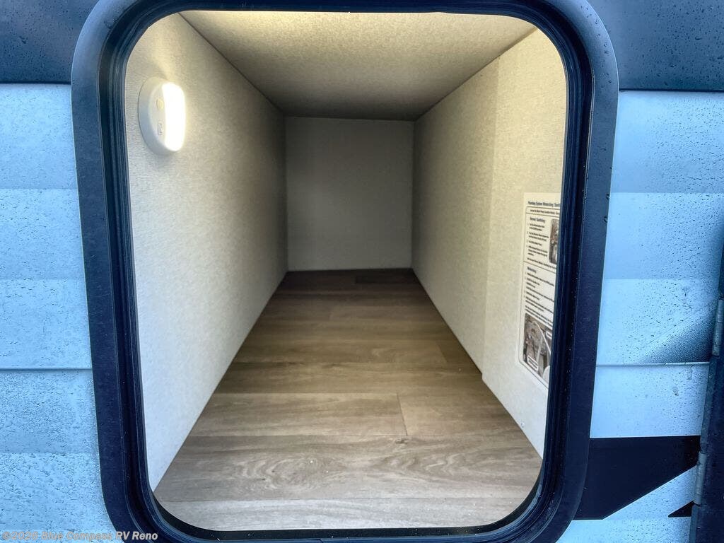Your crew of eight will love camping in this spacious travel trailer! There are double-size bunks in the back with step storage and an added wardrobe for your guests' things plus exterior storage for camp gear galore. A walk-thru bath will create a front master bedroom you are sure to love, especially with its queen bed, wardrobe storage, and private exterior entry door! The main living area will be a favorite place to hang out with its U-shaped dinette, theater seating and 32" TV. If the weather is nice, you may just find yourselves outdoors since there is a rear exterior griddle and 1.7 cu. ft. refrigerator!