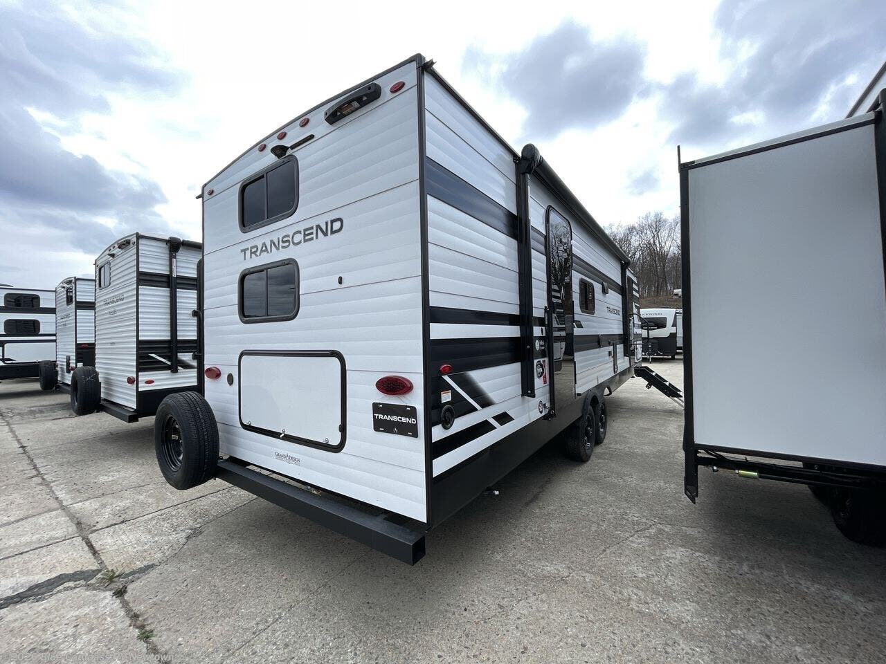 With any Transcend travel trailer by Grand Design, you will enjoy upscale appointments and convenient amenities to make each camping experience one to remember! The Quad Seal technology, residential insulated walls, plus heated and enclosed underbelly with suspended tanks make these units solid and durable. There is a black automotive glass door outside, along with a Safe-T-Rail assist on the main entry door, backup camera prep, and a universal docking station. JBL interior and exterior speakers plus a JBL head unit will let you listen to your favorite tunes as you visit under the power awning with LED strip lights. Inside, you'll enjoy multiple outlets to keep your gadgets charged, thermoformed and seamless countertops, and a 6' 6" interior height so you won't feel closed in. The Solar Prep Package will allow you to enjoy off-grid capabilities with a 200W solar panel, which is wired for up to 600W, a 30 AMP Bluetooth solar controller, a 2000W inverter prep, and more!