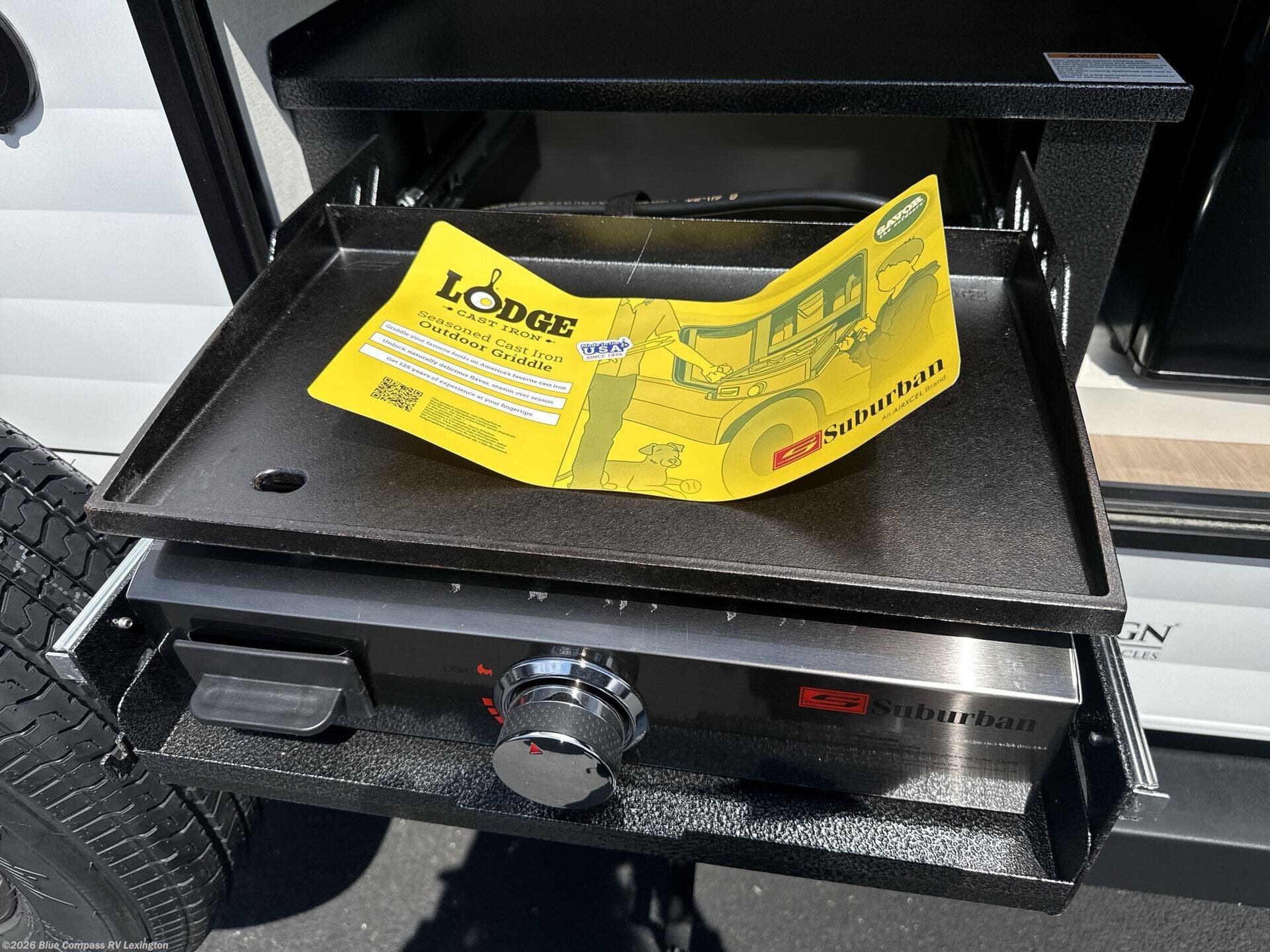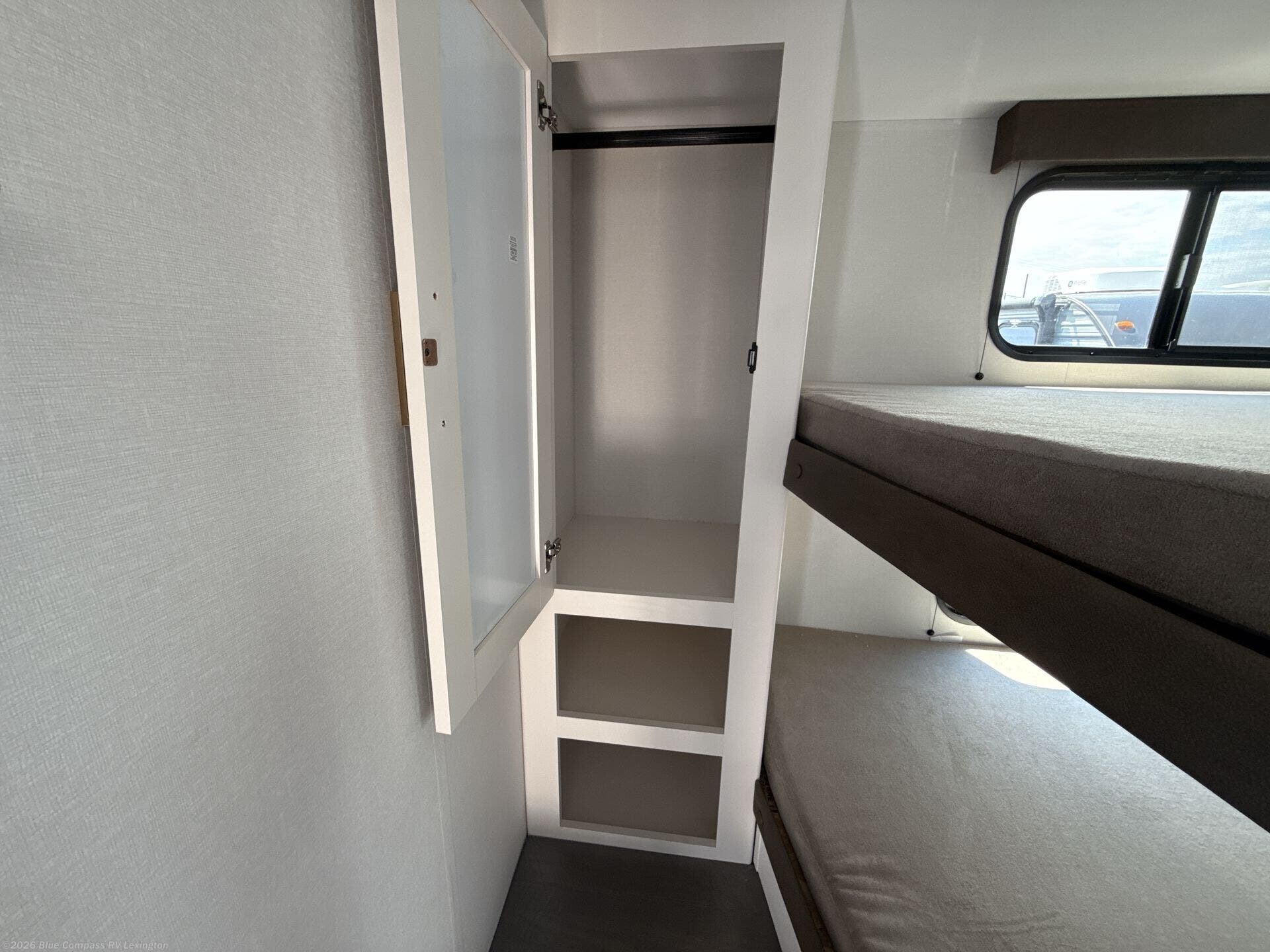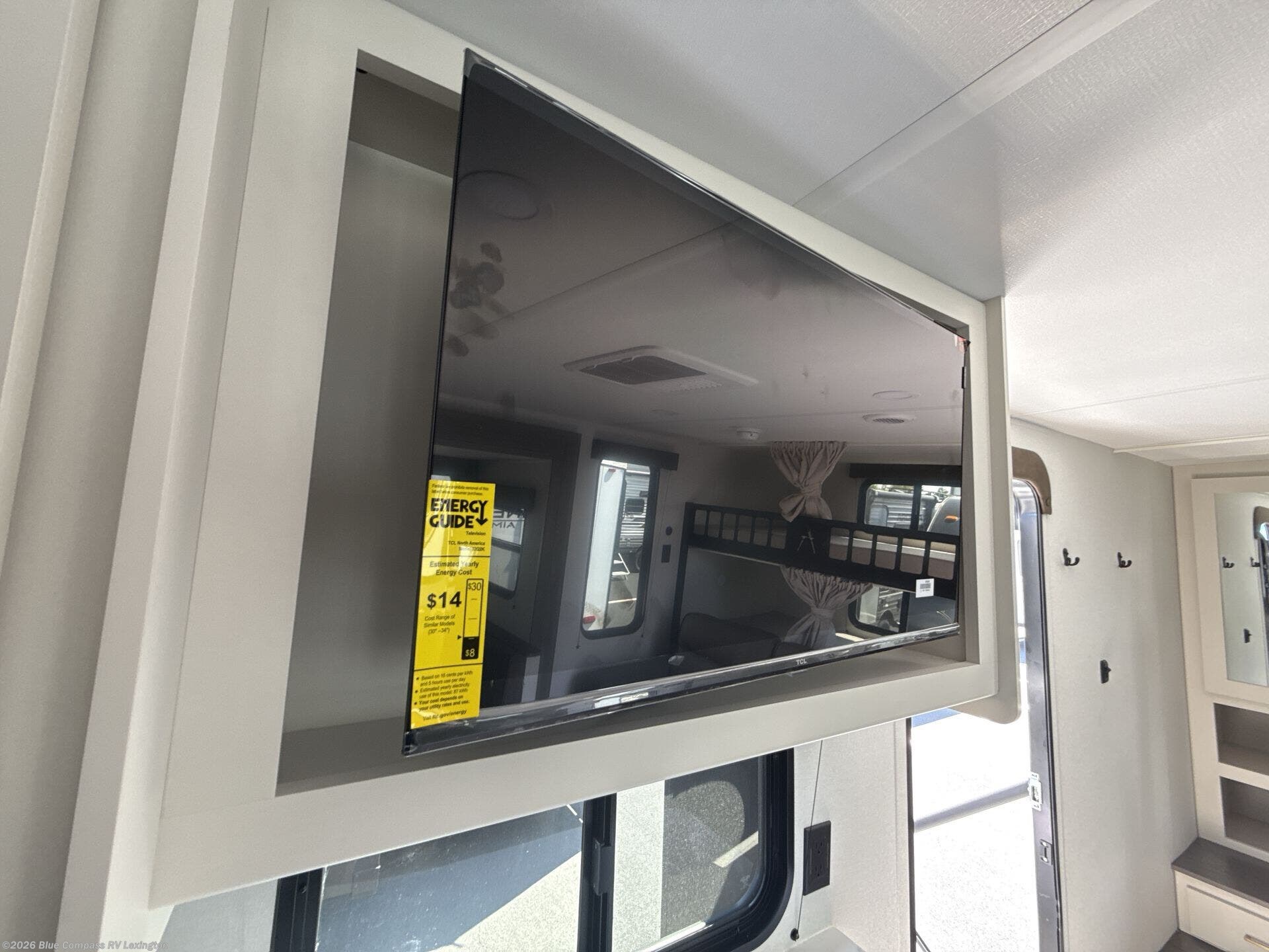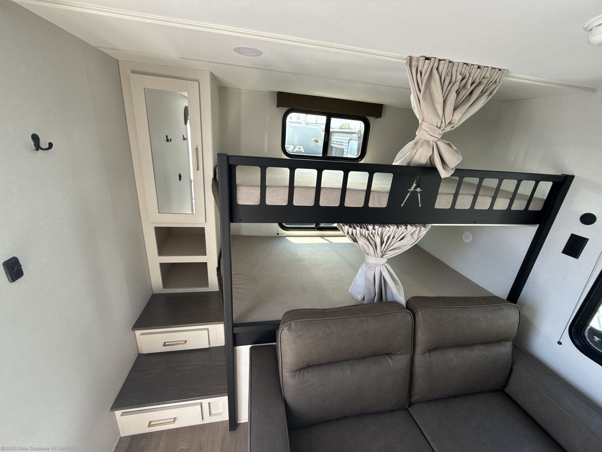 Your crew of eight will love camping in this spacious travel trailer! There are double-size bunks in the back with step storage and an added wardrobe for your guests' things plus exterior storage for camp gear galore. A walk-thru bath will create a front master bedroom you are sure to love, especially with its queen bed, wardrobe storage, and private exterior entry door! The main living area will be a favorite place to hang out with its U-shaped dinette, theater seating and 32" TV. If the weather is nice, you may just find yourselves outdoors since there is a rear exterior griddle and 1.7 cu. ft. refrigerator!