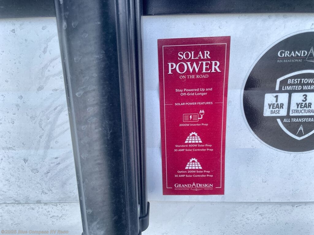 With any Transcend travel trailer by Grand Design, you will enjoy upscale appointments and convenient amenities to make each camping experience one to remember! The Quad Seal technology, residential insulated walls, plus heated and enclosed underbelly with suspended tanks make these units solid and durable. There is a black automotive glass door outside, along with a Safe-T-Rail assist on the main entry door, backup camera prep, and a universal docking station. JBL interior and exterior speakers plus a JBL head unit will let you listen to your favorite tunes as you visit under the power awning with LED strip lights. Inside, you'll enjoy multiple outlets to keep your gadgets charged, thermoformed and seamless countertops, and a 6' 6" interior height so you won't feel closed in. The Solar Prep Package will allow you to enjoy off-grid capabilities with a 200W solar panel, which is wired for up to 600W, a 30 AMP Bluetooth solar controller, a 2000W inverter prep, and more!