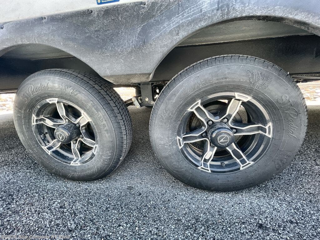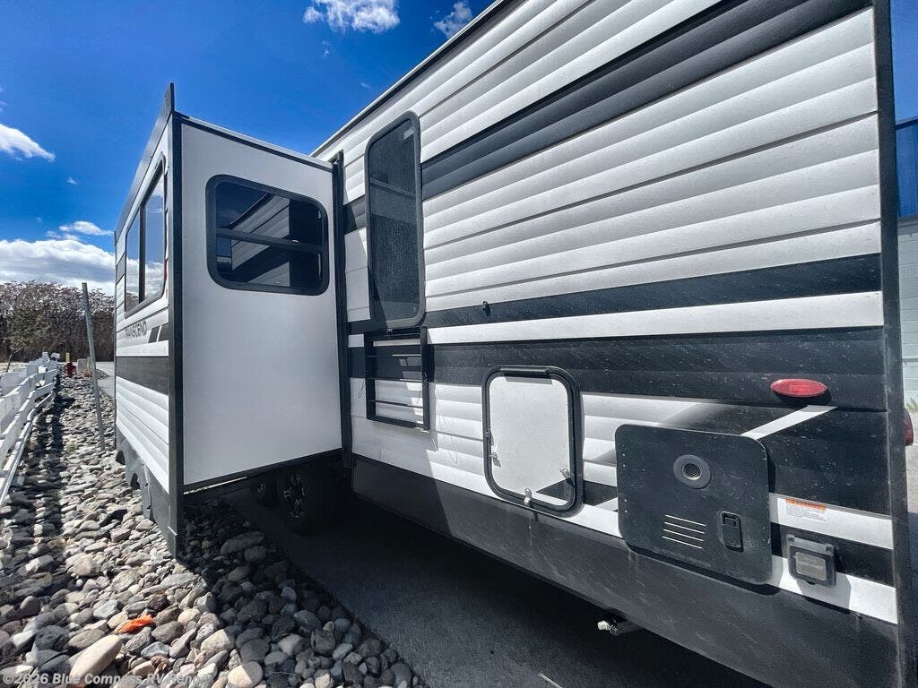 Your crew of eight will love camping in this spacious travel trailer! There are double-size bunks in the back with step storage and an added wardrobe for your guests' things plus exterior storage for camp gear galore. A walk-thru bath will create a front master bedroom you are sure to love, especially with its queen bed, wardrobe storage, and private exterior entry door! The main living area will be a favorite place to hang out with its U-shaped dinette, theater seating and 32" TV. If the weather is nice, you may just find yourselves outdoors since there is a rear exterior griddle and 1.7 cu. ft. refrigerator!