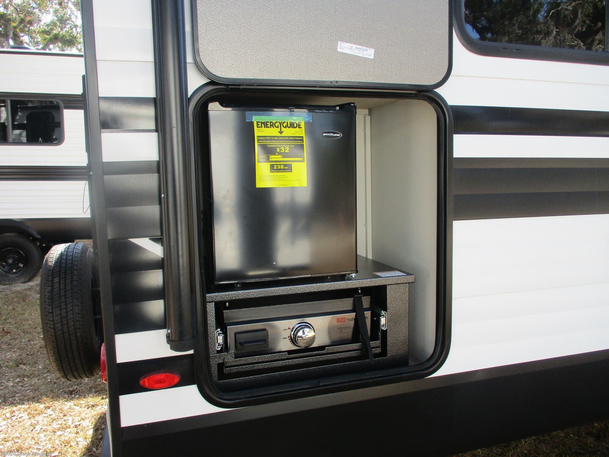 Awning, Black Tank Flush, Detachable, Detachable Power Cord, Enclosed Underbelly, Griddle, Power Awning, Tinted Windows -
