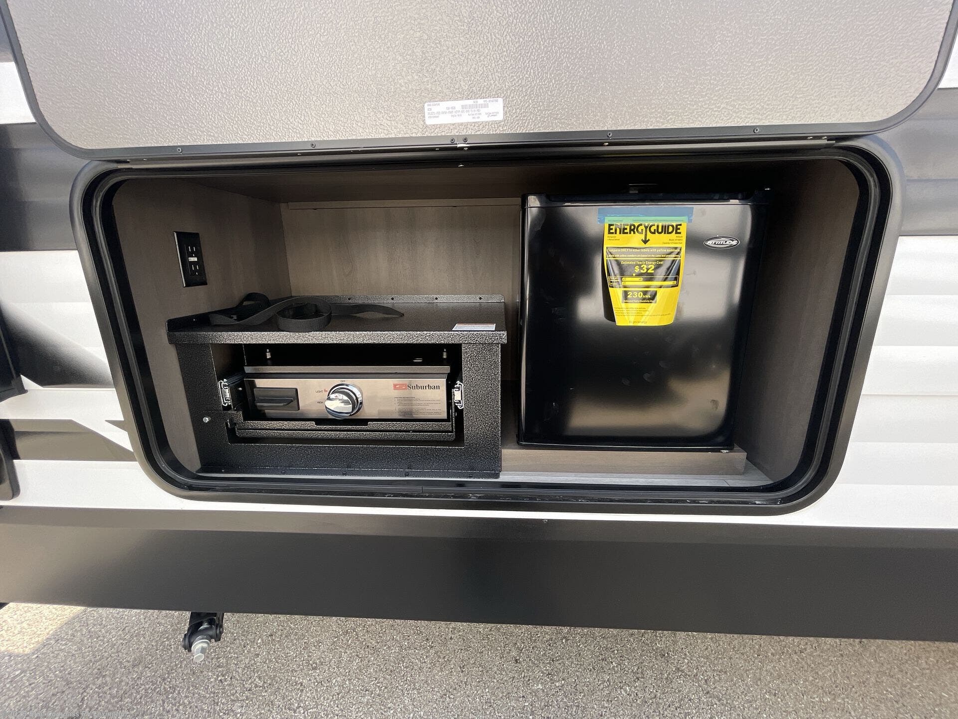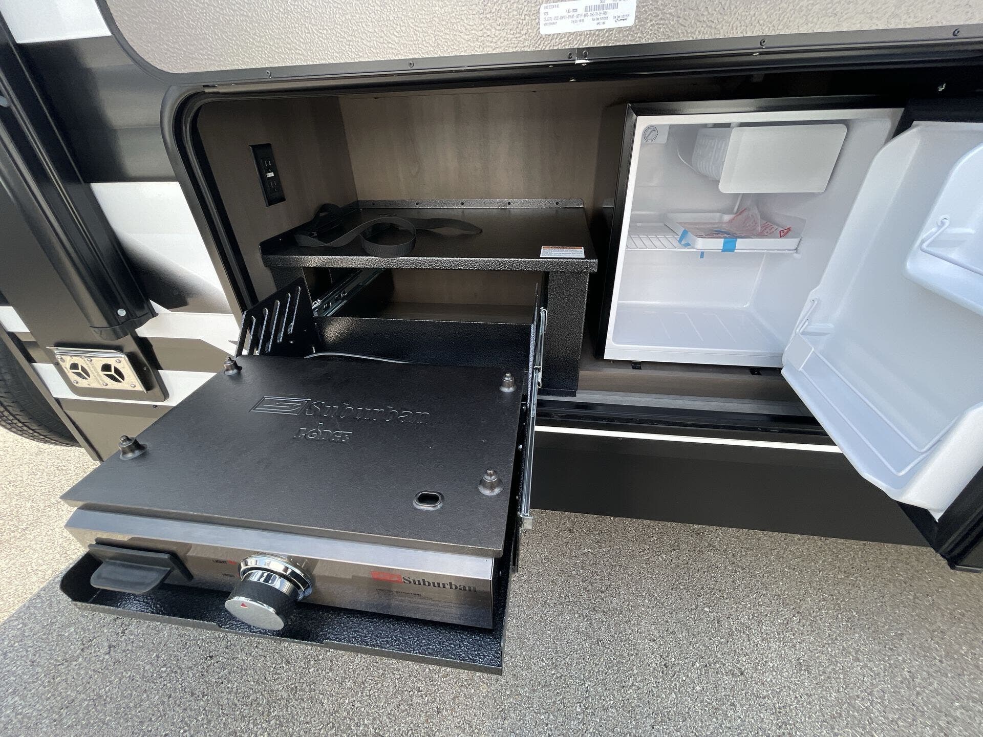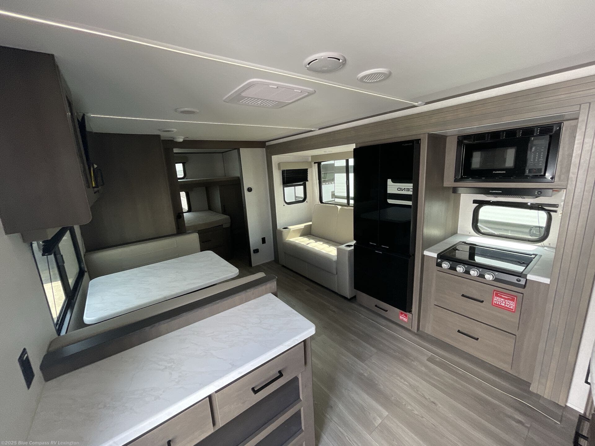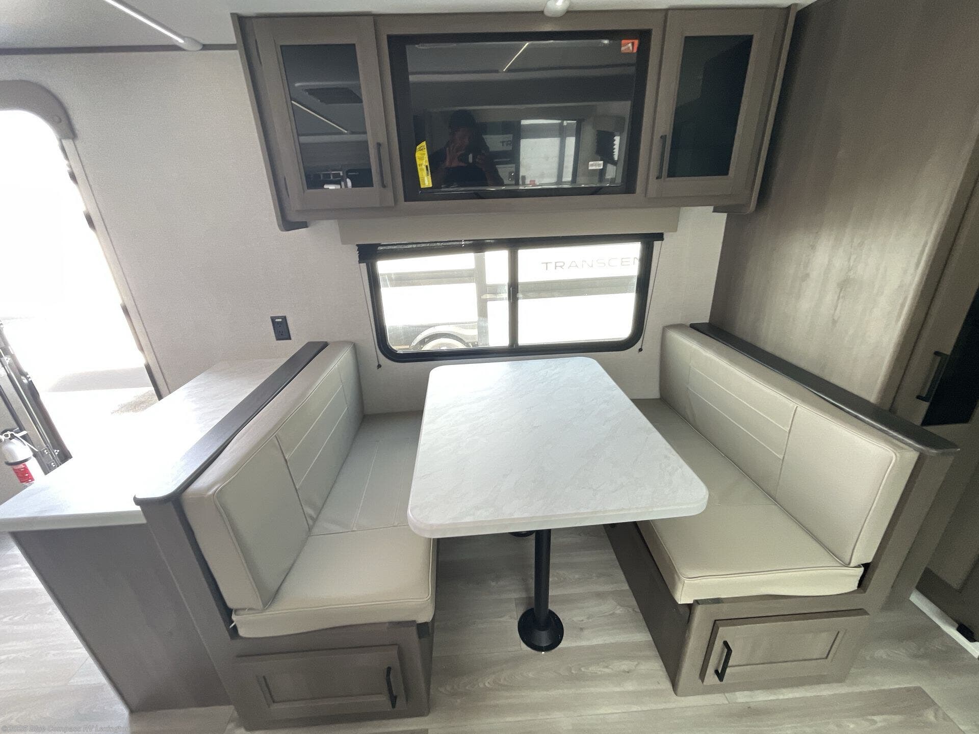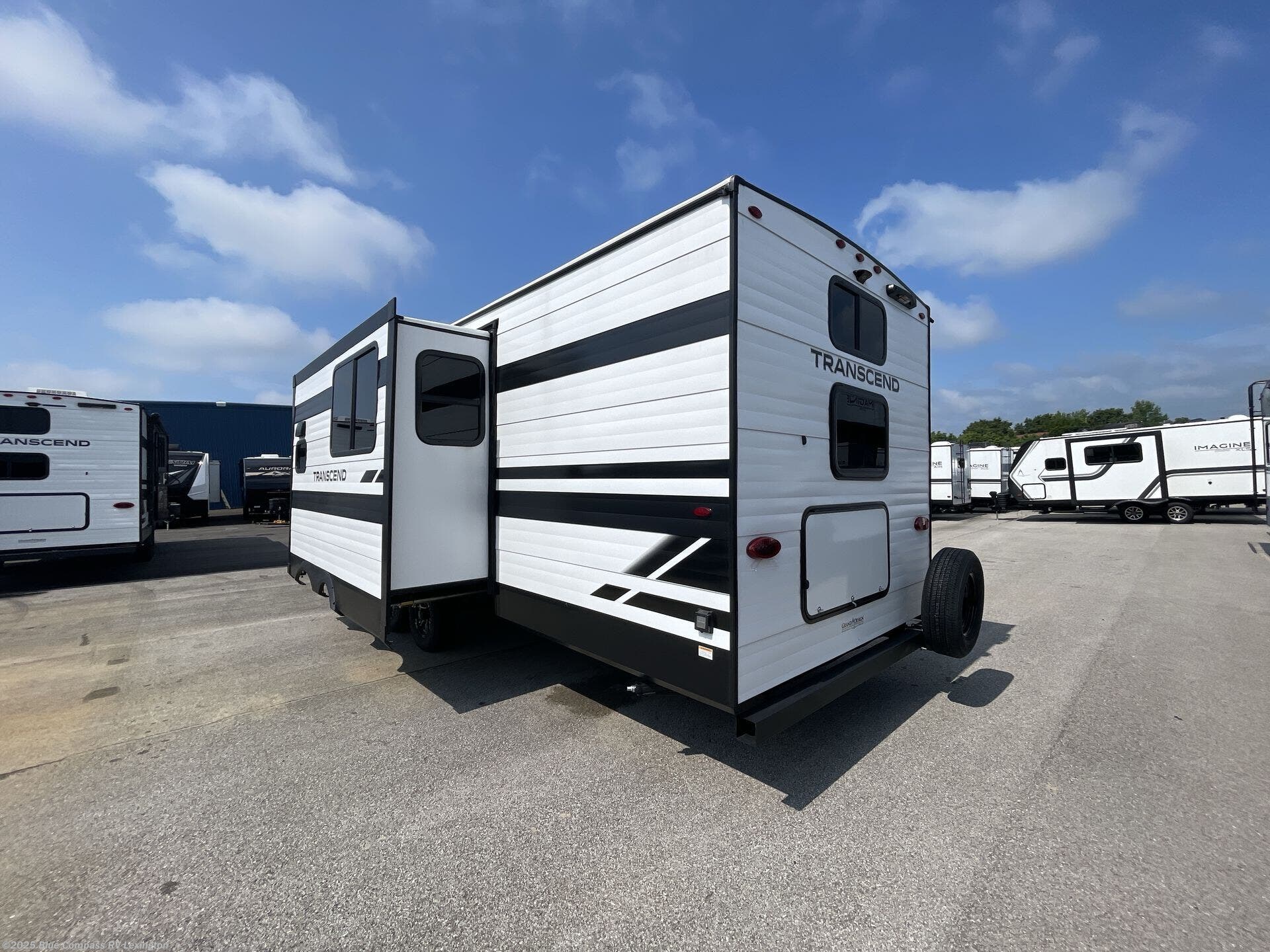 You're going to love every minute spent in this Transcend travel trailer! Your guests or the little ones will have the rear bunkhouse all to themselves that includes a residential full-size bed and two bunks, storage drawers, and TV prep if you want to add a television here. You'll enjoy your own space up front in the private bedroom with a queen bed, storage drawers, and TV prep here also. The combined kitchen and living area includes a sleeper sofa with an optional theater seating, a booth dinette where you can dine together, and a 32" TV for movie nights! The exterior is just as accommodating with its 20' awning, rear storage, plus exterior griddle and refrigerator!