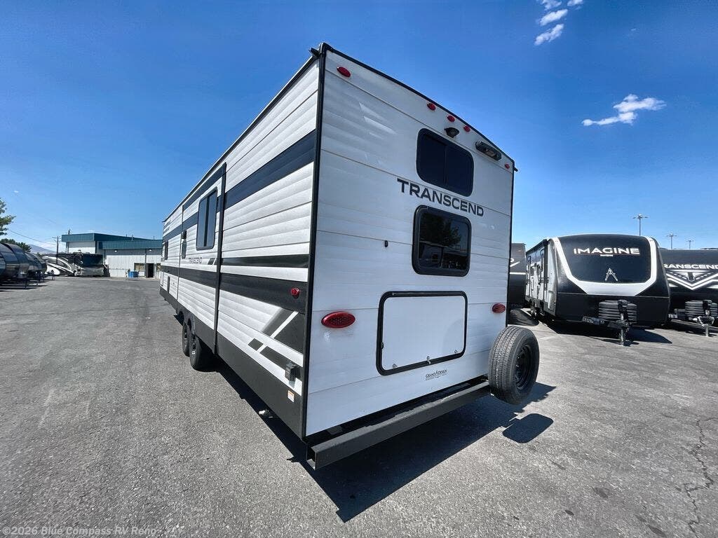 With any Transcend travel trailer by Grand Design, you will enjoy upscale appointments and convenient amenities to make each camping experience one to remember! The Quad Seal technology, residential insulated walls, plus heated and enclosed underbelly with suspended tanks make these units solid and durable. There is a black automotive glass door outside, along with a Safe-T-Rail assist on the main entry door, backup camera prep, and a universal docking station. JBL interior and exterior speakers plus a JBL head unit will let you listen to your favorite tunes as you visit under the power awning with LED strip lights. Inside, you'll enjoy multiple outlets to keep your gadgets charged, thermoformed and seamless countertops, and a 6' 6" interior height so you won't feel closed in. The Solar Prep Package will allow you to enjoy off-grid capabilities with a 200W solar panel, which is wired for up to 600W, a 30 AMP Bluetooth solar controller, a 2000W inverter prep, and more!