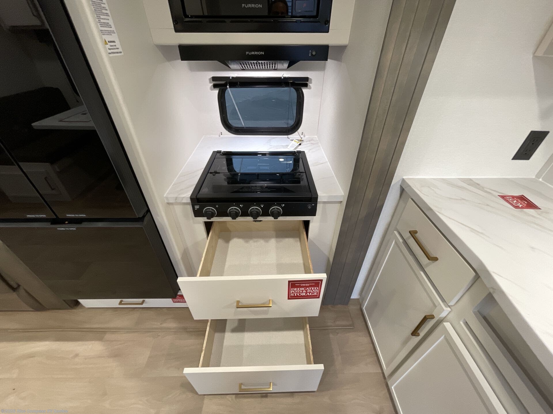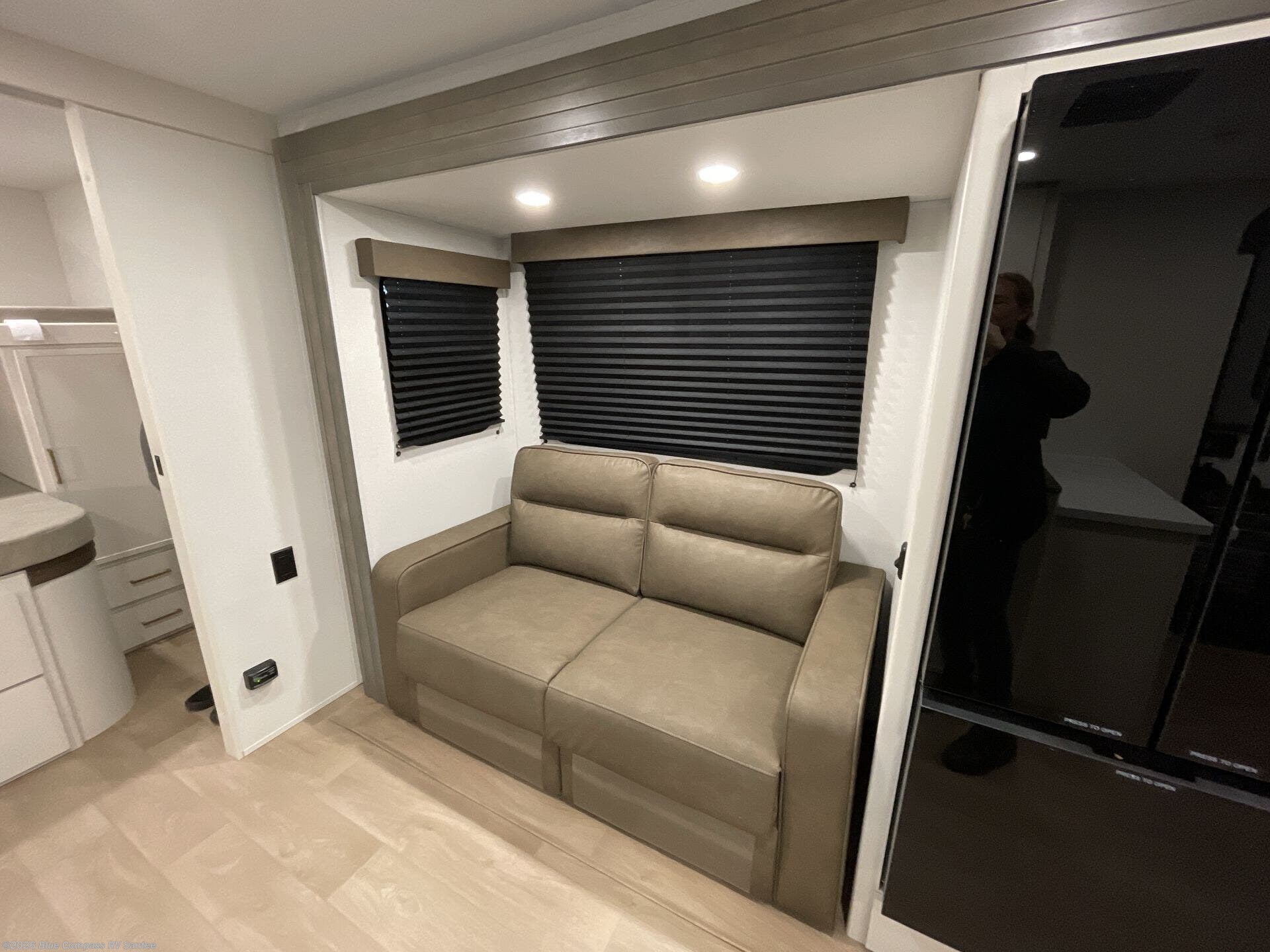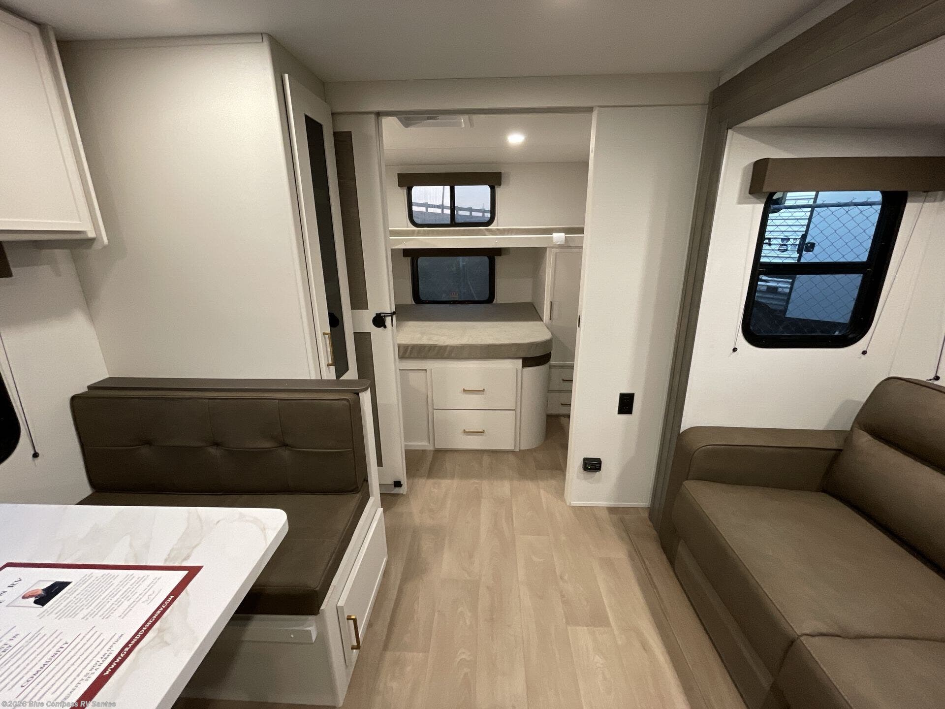 You're going to love every minute spent in this Transcend travel trailer! Your guests or the little ones will have the rear bunkhouse all to themselves that includes a residential full-size bed and two bunks, storage drawers, and TV prep if you want to add a television here. You'll enjoy your own space up front in the private bedroom with a queen bed, storage drawers, and TV prep here also. The combined kitchen and living area includes a sleeper sofa with an optional theater seating, a booth dinette where you can dine together, and a 32" TV for movie nights! The exterior is just as accommodating with its 20' awning, rear storage, plus exterior griddle and refrigerator!