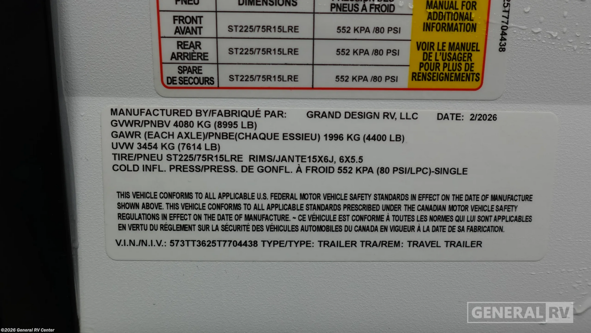 - VIN573TT3625T7704438