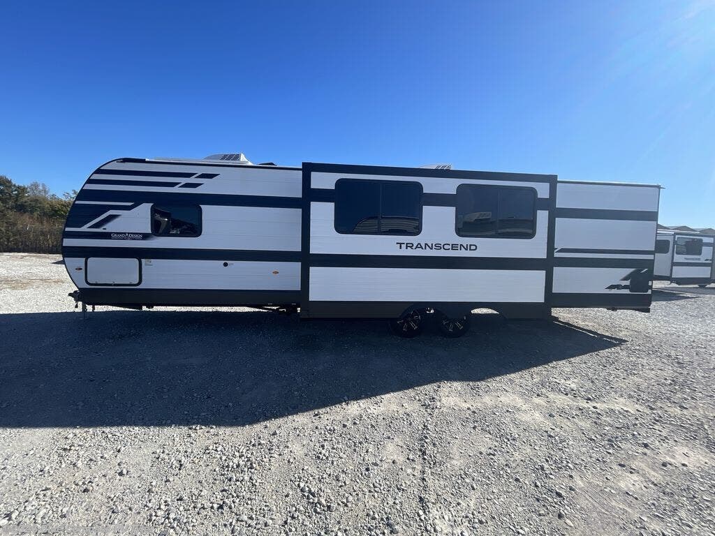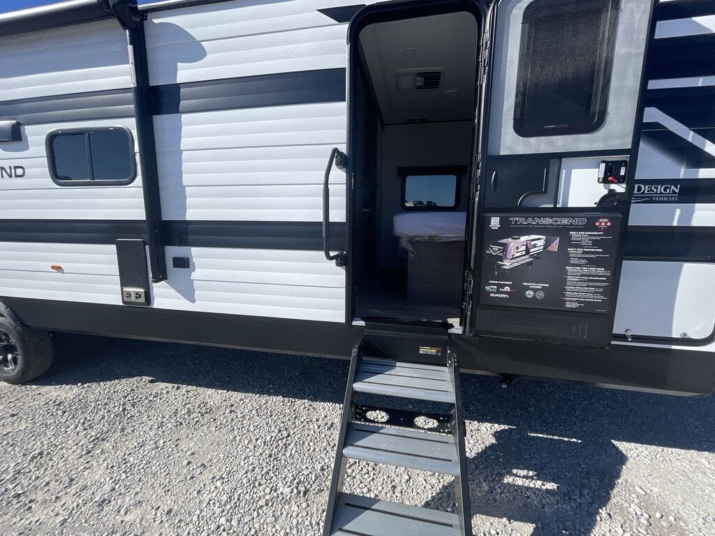 With any Transcend travel trailer by Grand Design, you will enjoy upscale appointments and convenient amenities to make each camping experience one to remember! The Quad Seal technology, residential insulated walls, plus heated and enclosed underbelly with suspended tanks make these units solid and durable. There is a black automotive glass door outside, along with a Safe-T-Rail assist on the main entry door, backup camera prep, and a universal docking station. JBL interior and exterior speakers plus a JBL head unit will let you listen to your favorite tunes as you visit under the power awning with LED strip lights. Inside, you'll enjoy multiple outlets to keep your gadgets charged, thermoformed and seamless countertops, and a 6' 6" interior height so you won't feel closed in. The Solar Prep Package will allow you to enjoy off-grid capabilities with a 200W solar panel, which is wired for up to 600W, a 30 AMP Bluetooth solar controller, a 2000W inverter prep, and more!