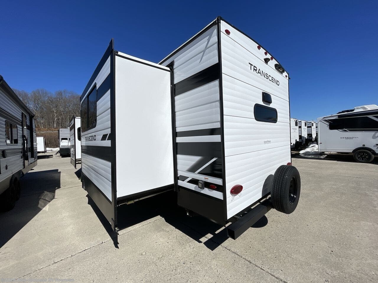 With any Transcend travel trailer by Grand Design, you will enjoy upscale appointments and convenient amenities to make each camping experience one to remember! The Quad Seal technology, residential insulated walls, plus heated and enclosed underbelly with suspended tanks make these units solid and durable. There is a black automotive glass door outside, along with a Safe-T-Rail assist on the main entry door, backup camera prep, and a universal docking station. JBL interior and exterior speakers plus a JBL head unit will let you listen to your favorite tunes as you visit under the power awning with LED strip lights. Inside, you'll enjoy multiple outlets to keep your gadgets charged, thermoformed and seamless countertops, and a 6' 6" interior height so you won't feel closed in. The Solar Prep Package will allow you to enjoy off-grid capabilities with a 200W solar panel, which is wired for up to 600W, a 30 AMP Bluetooth solar controller, a 2000W inverter prep, and more!