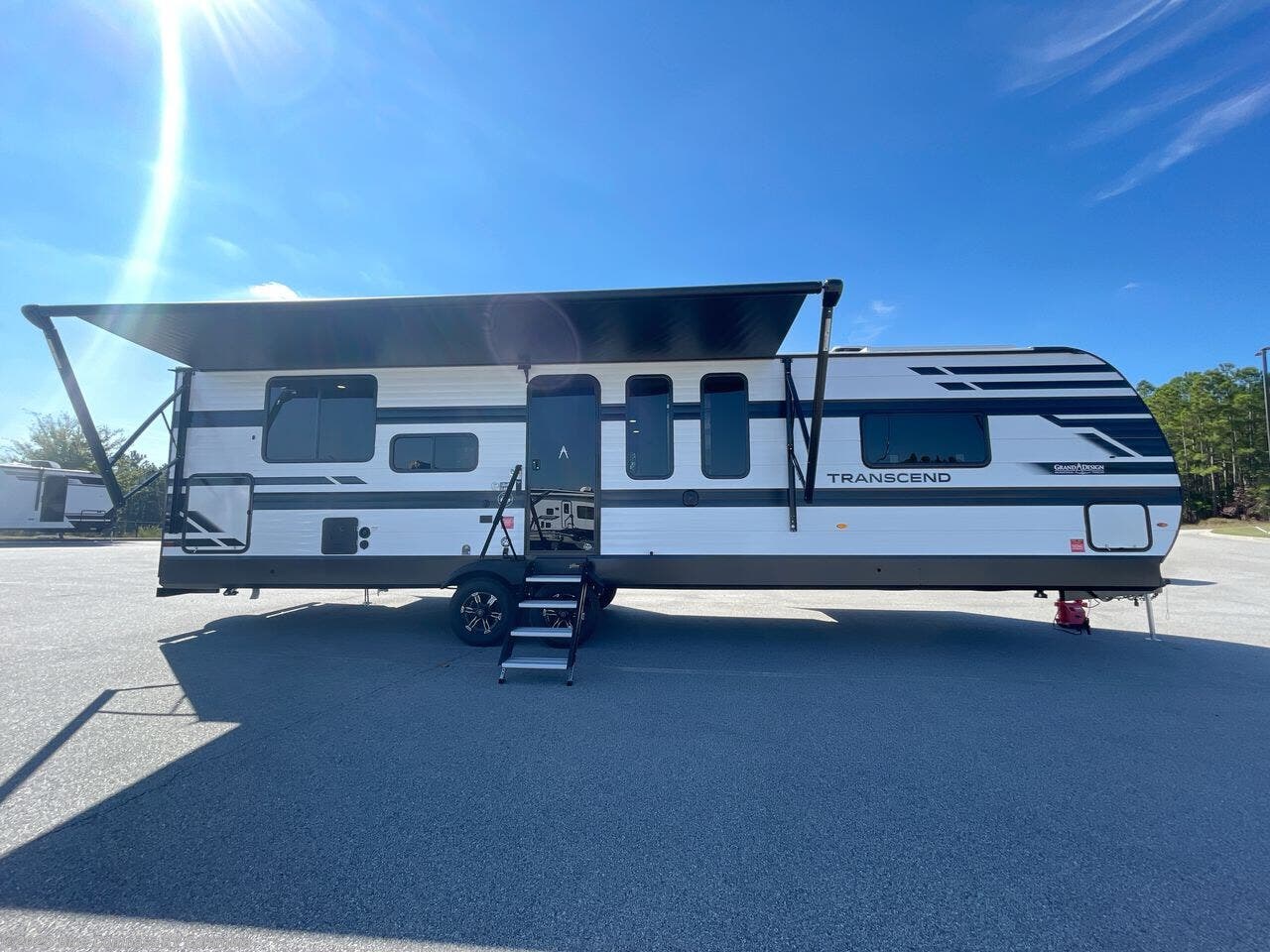 With any Transcend travel trailer by Grand Design, you will enjoy upscale appointments and convenient amenities to make each camping experience one to remember! The Quad Seal technology, residential insulated walls, plus heated and enclosed underbelly with suspended tanks make these units solid and durable. There is a black automotive glass door outside, along with a Safe-T-Rail assist on the main entry door, backup camera prep, and a universal docking station. JBL interior and exterior speakers plus a JBL head unit will let you listen to your favorite tunes as you visit under the power awning with LED strip lights. Inside, you'll enjoy multiple outlets to keep your gadgets charged, thermoformed and seamless countertops, and a 6' 6" interior height so you won't feel closed in. The Solar Prep Package will allow you to enjoy off-grid capabilities with a 200W solar panel, which is wired for up to 600W, a 30 AMP Bluetooth solar controller, a 2000W inverter prep, and more!