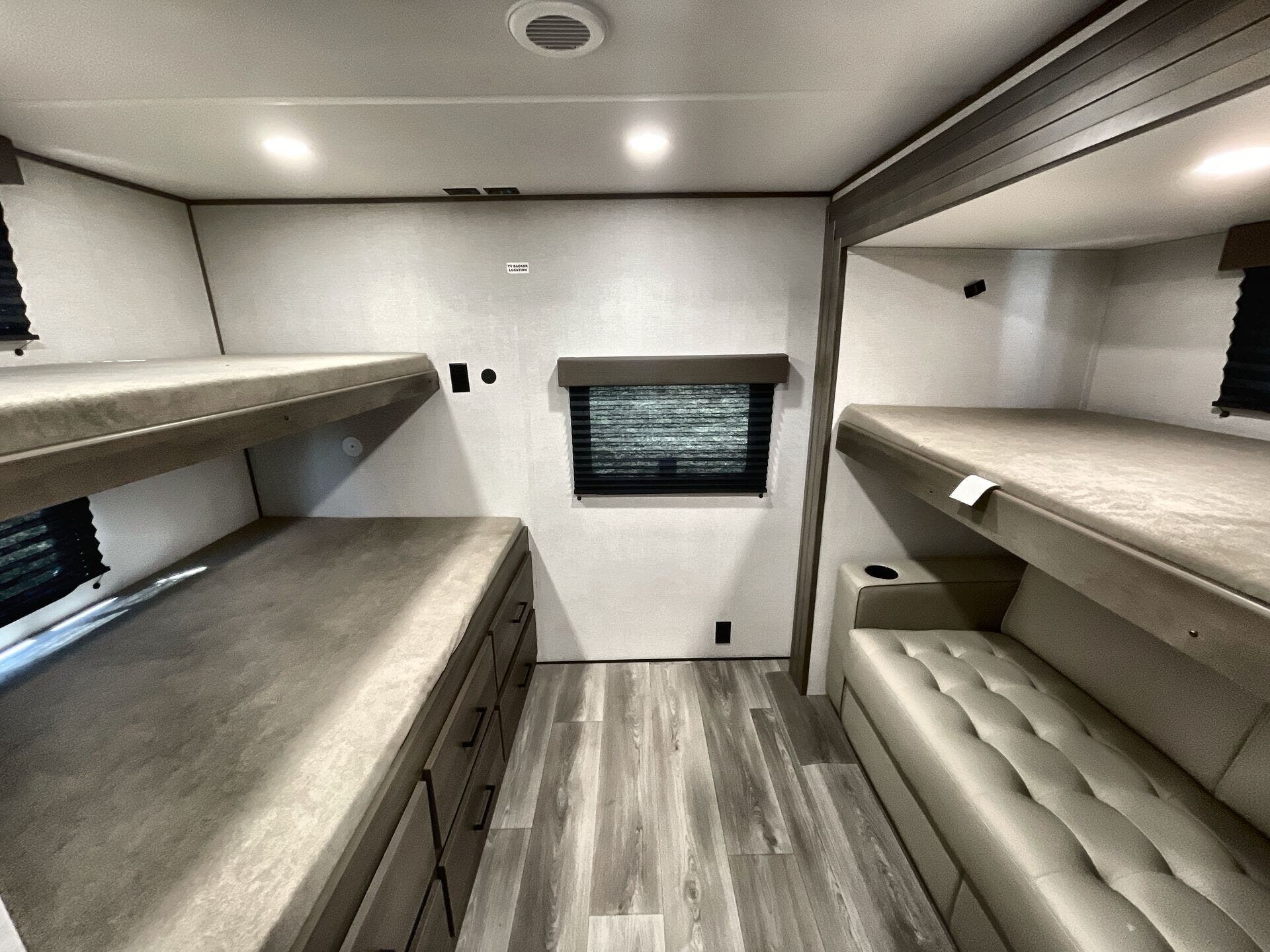Bunk Beds, Bunkhouse, Kitchen Sink, Queen Mattress, Shower, Sofa Bed, U-Shaped Dinette