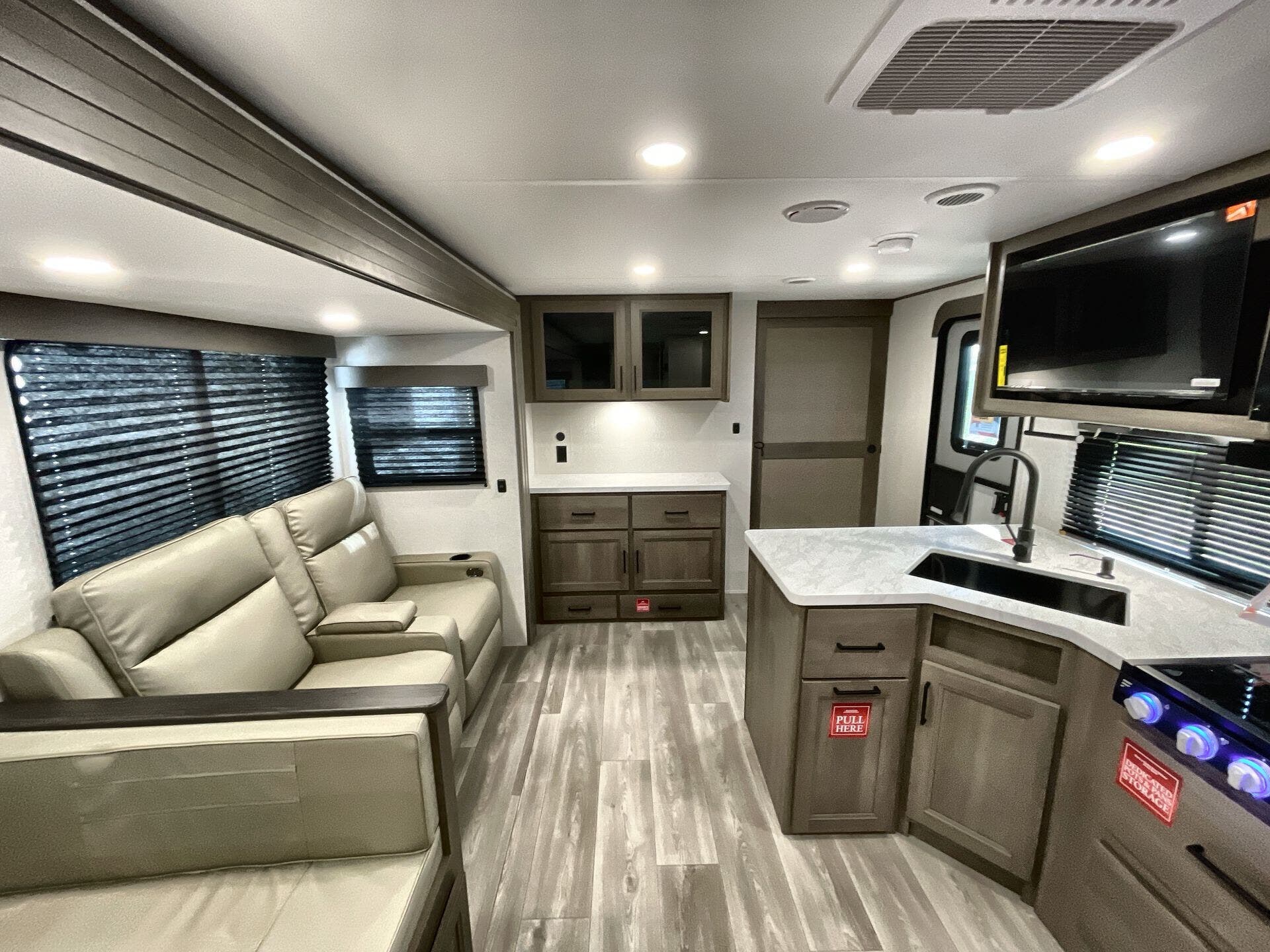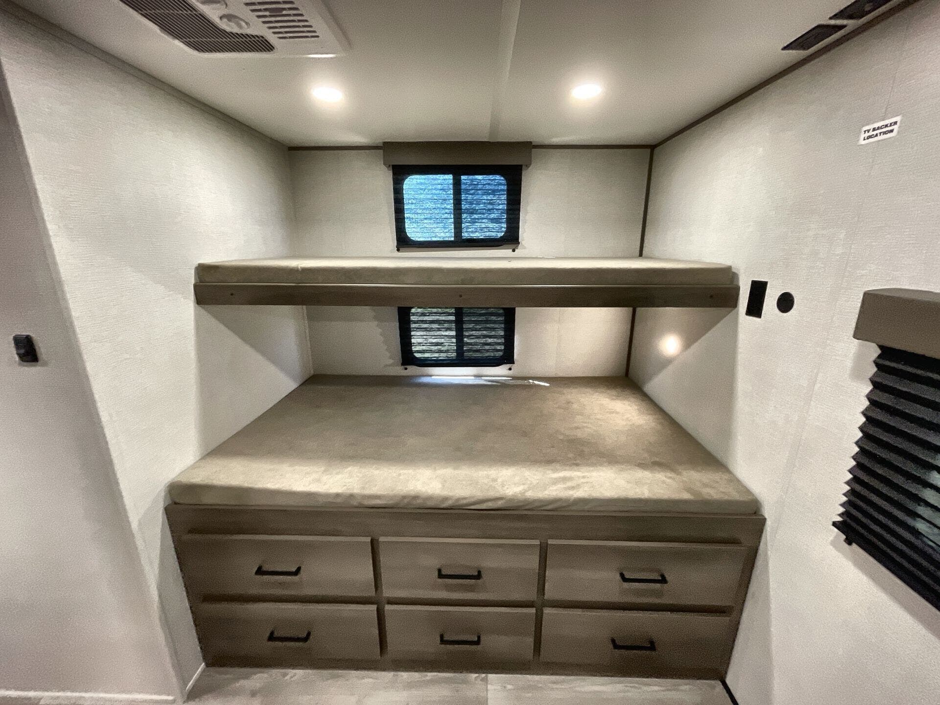 - Brand/Model: Grand Design Transcend 325BHT bunkhouse travel trailer