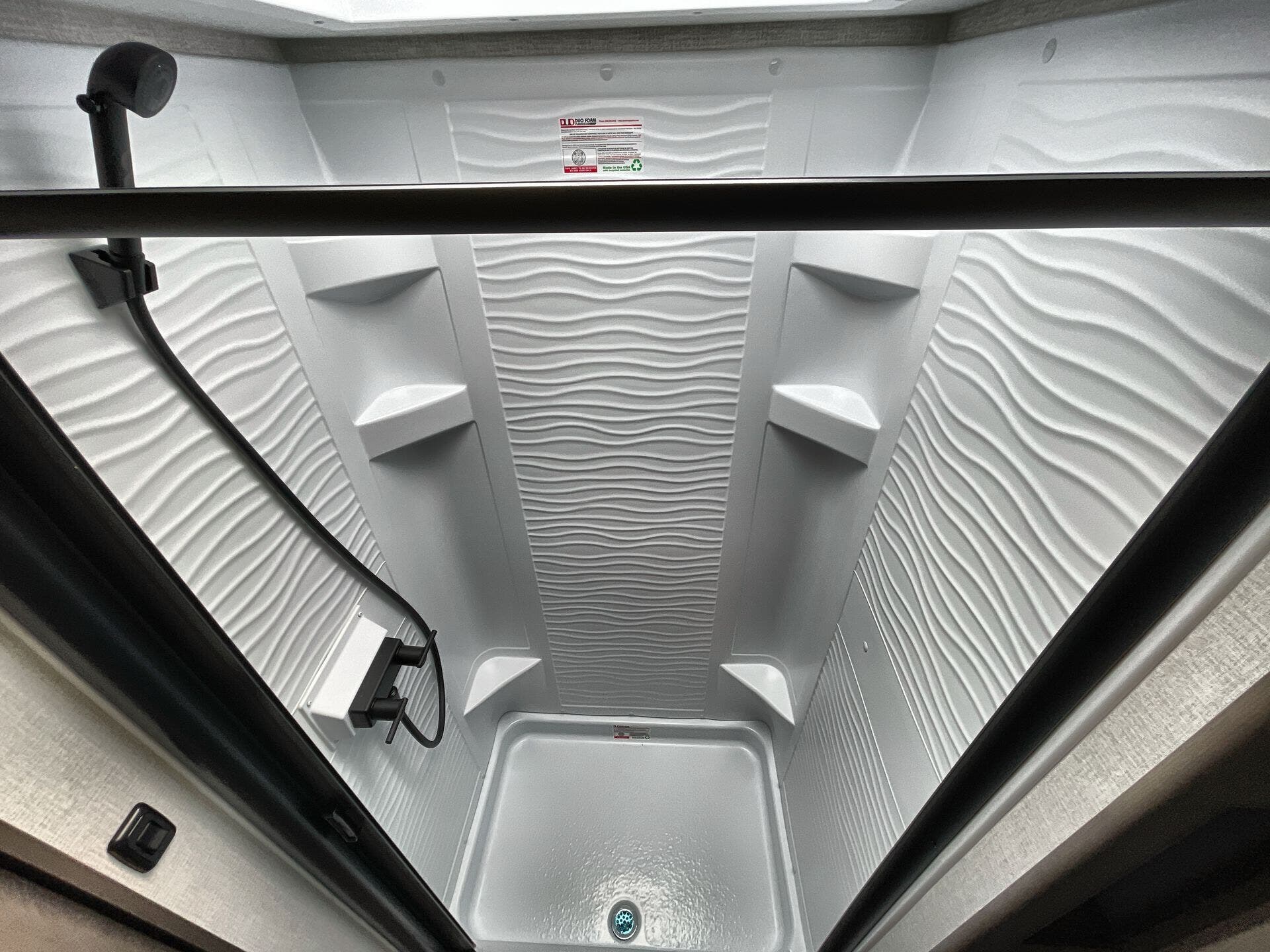 - Fresh water: 56 gallons; Grey water: 78 gallons; Black water: 57 gallons