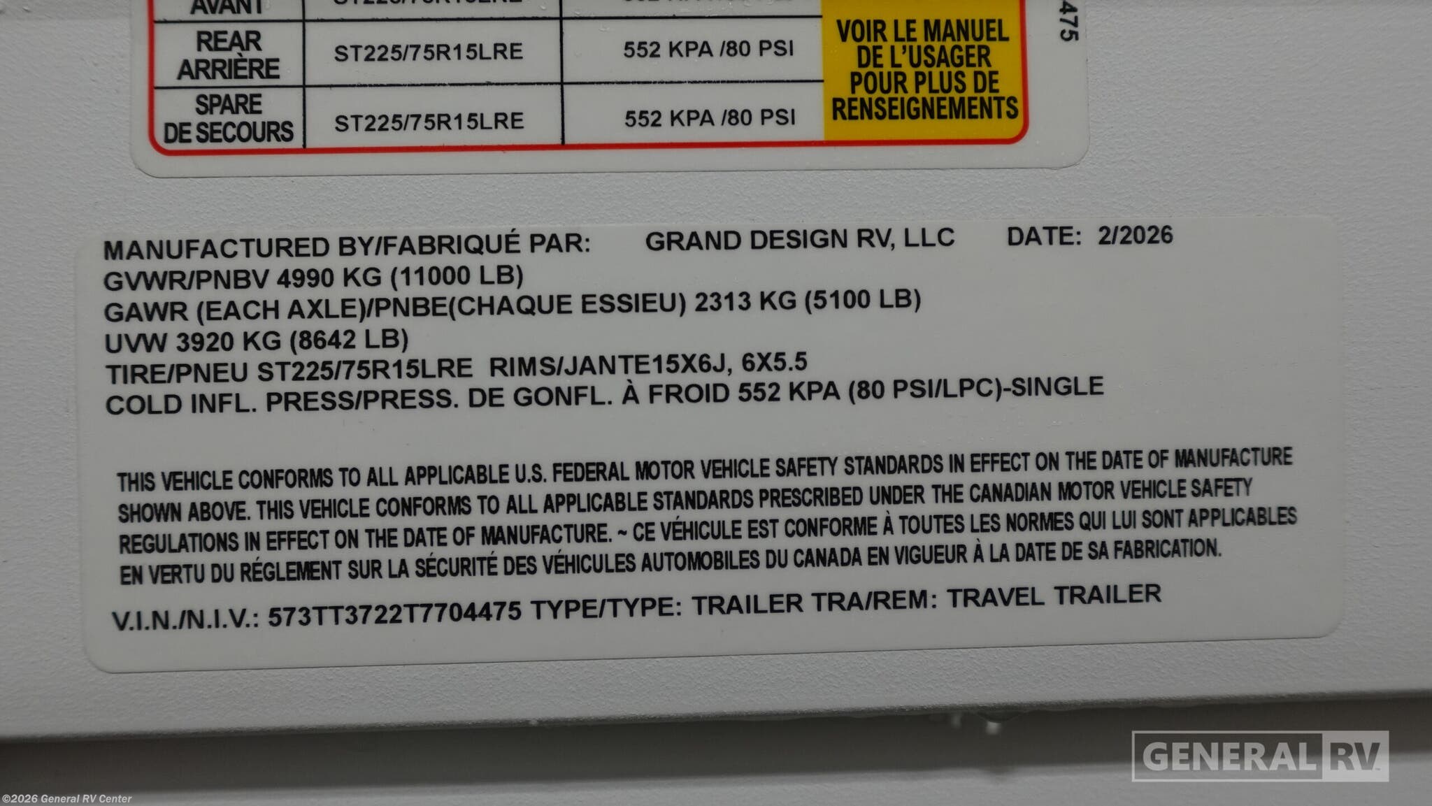 - VIN573TT3722T7704475