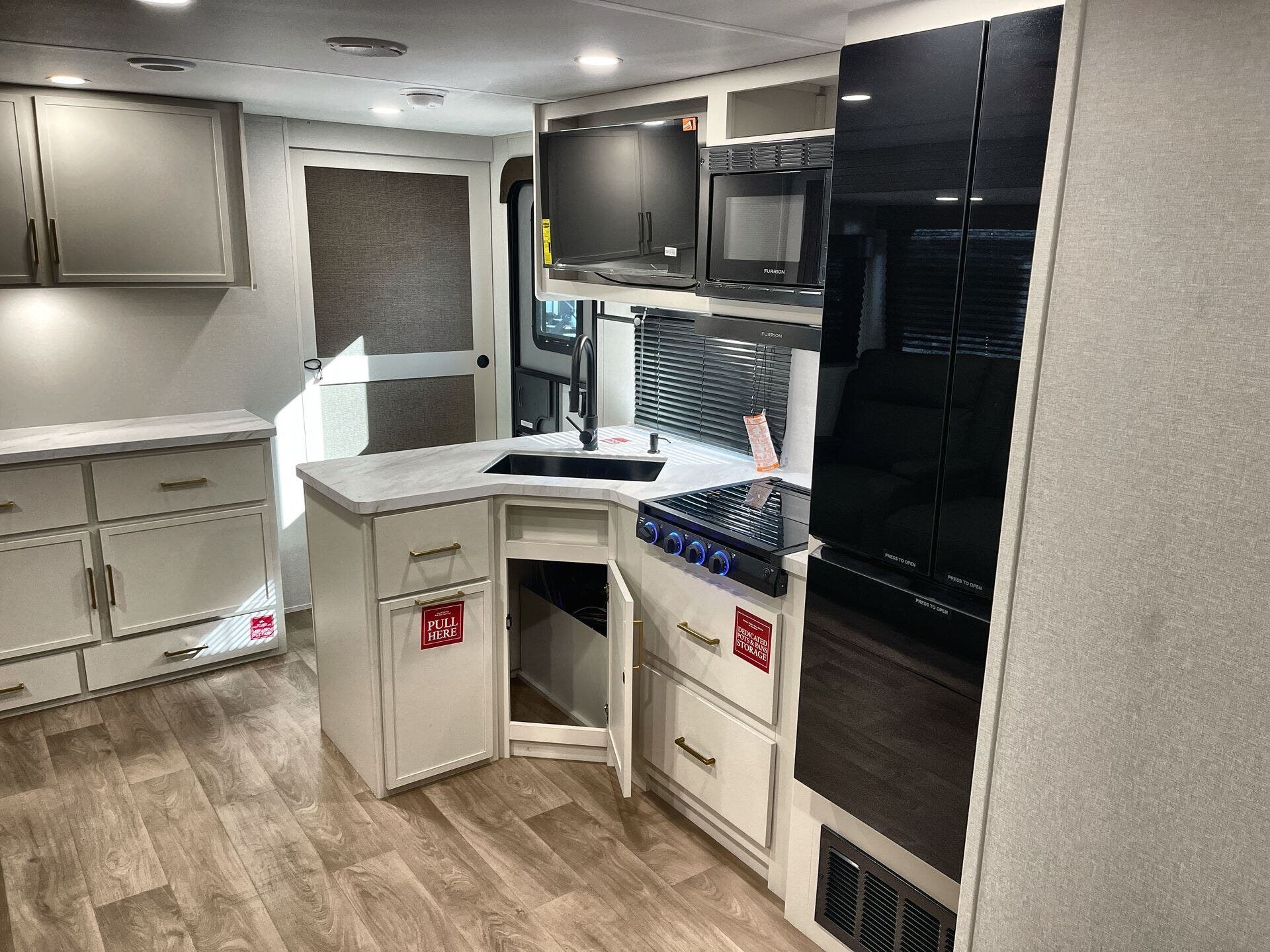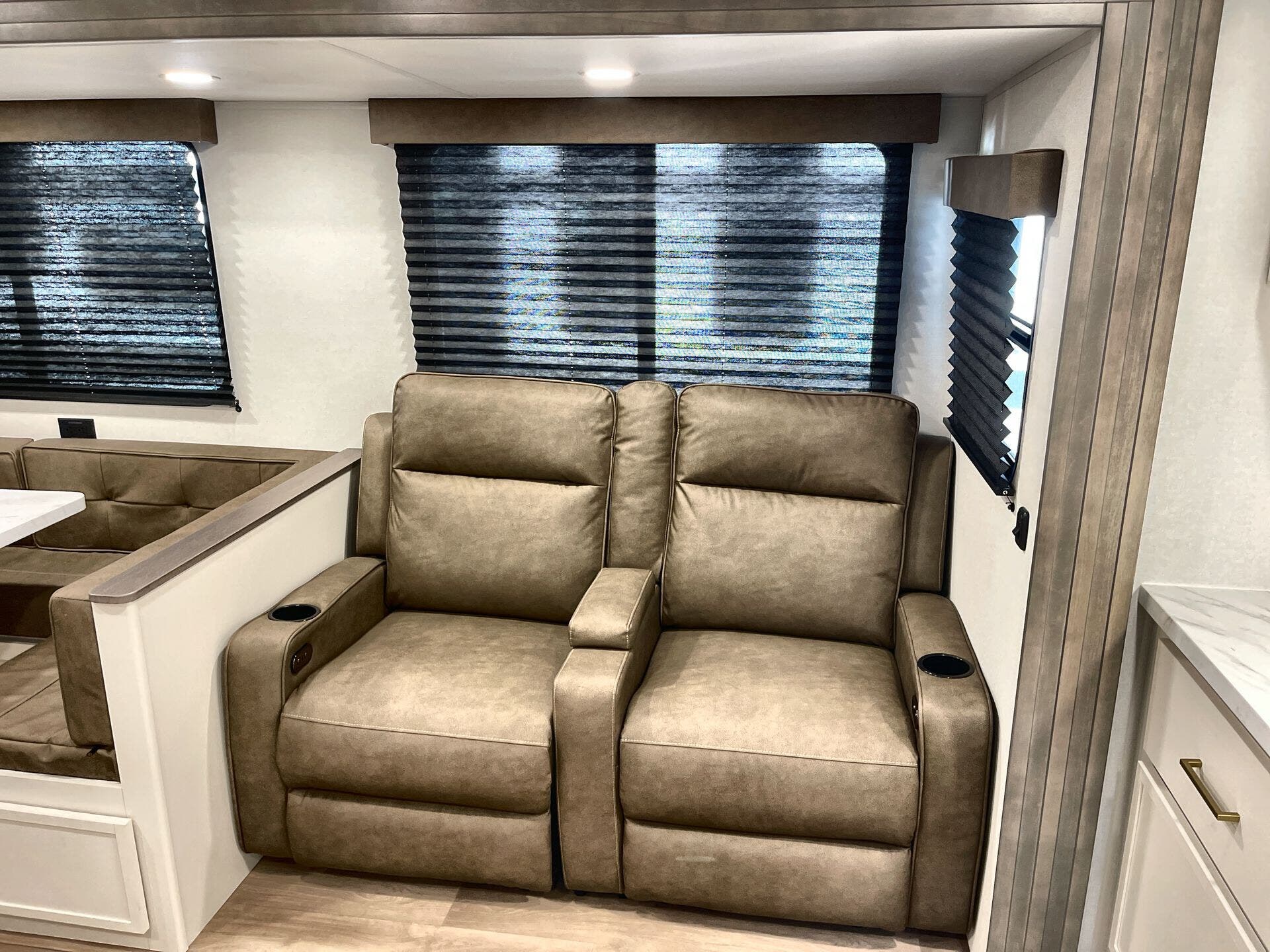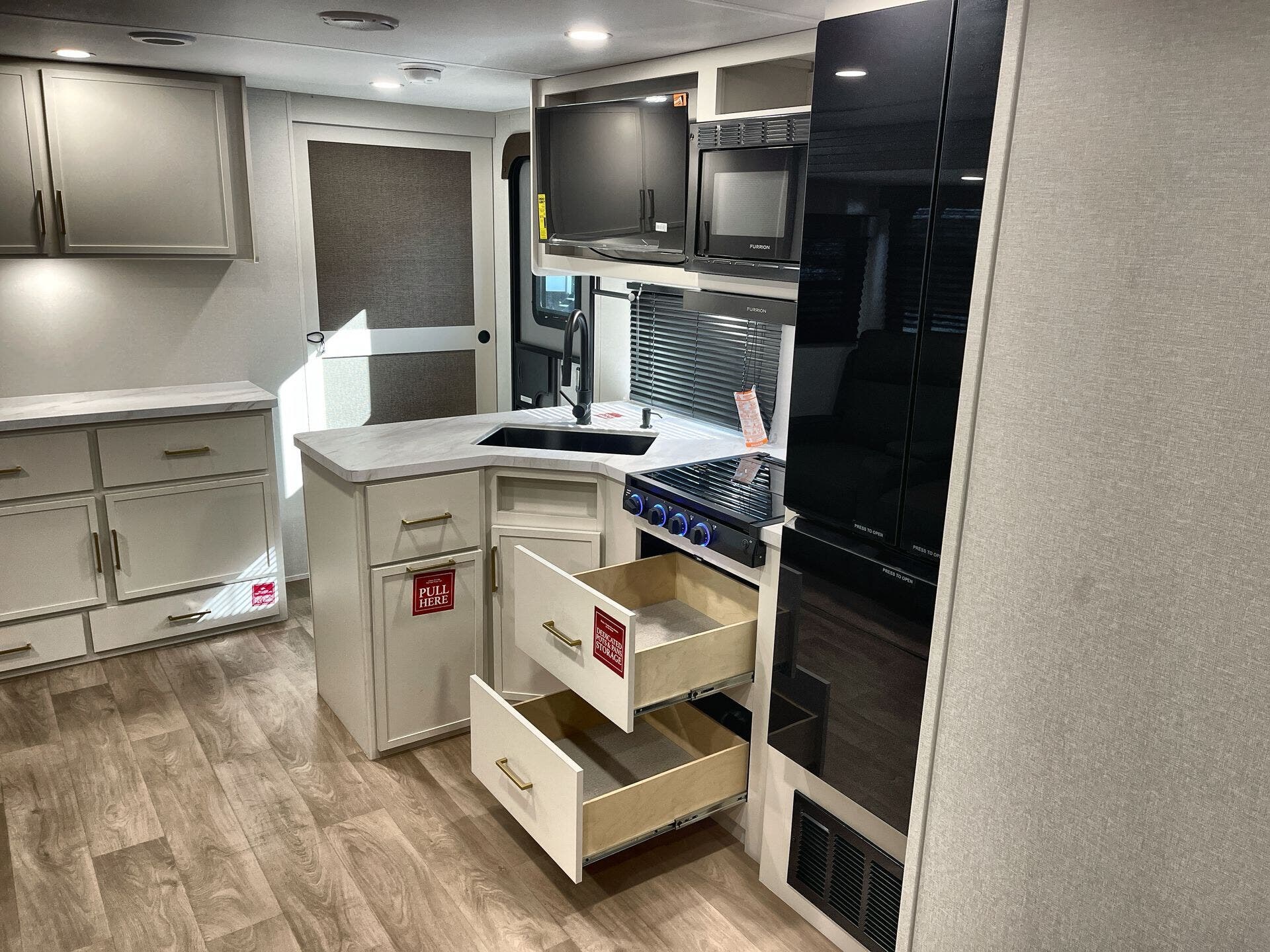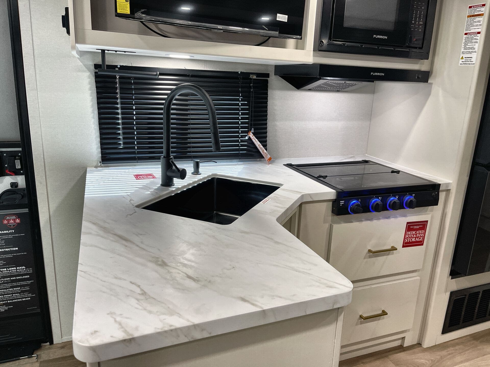 The Transcend 335BHT excels in delivering a roomy, family-friendly interior across three slideouts. The floorplan centers on a welcoming living area with dedicated sleeping spaces, including a queen bed and multiple seating options that convert to sleeping areas. A well-equipped kitchen, compact yet functional, makes meal prep a breeze, whether you’re parked at a campground or exploring off the beaten path. With one air conditioner and efficient storage, this RV maintains comfort across seasons while preserving valuable living space for gatherings and downtime.