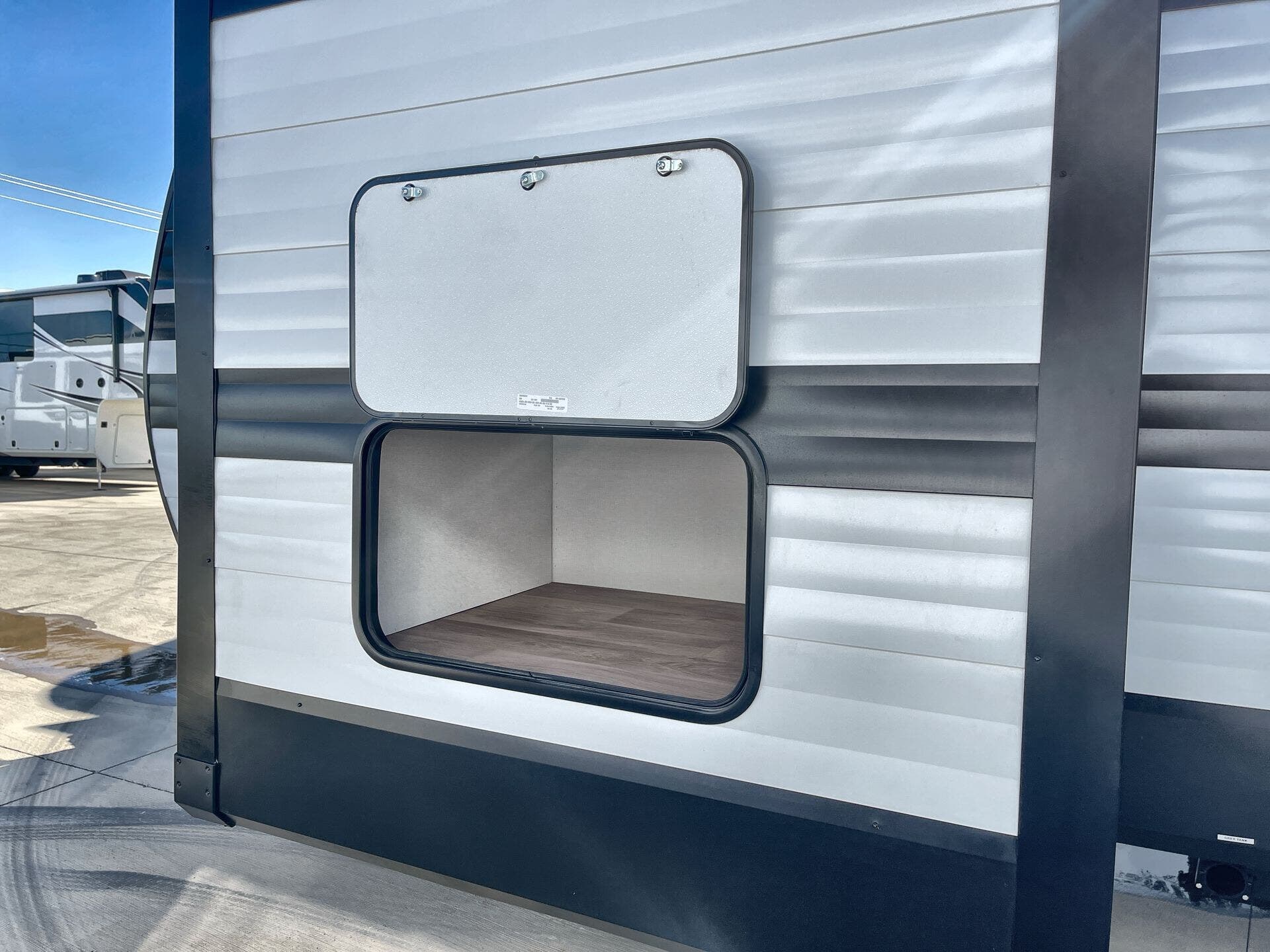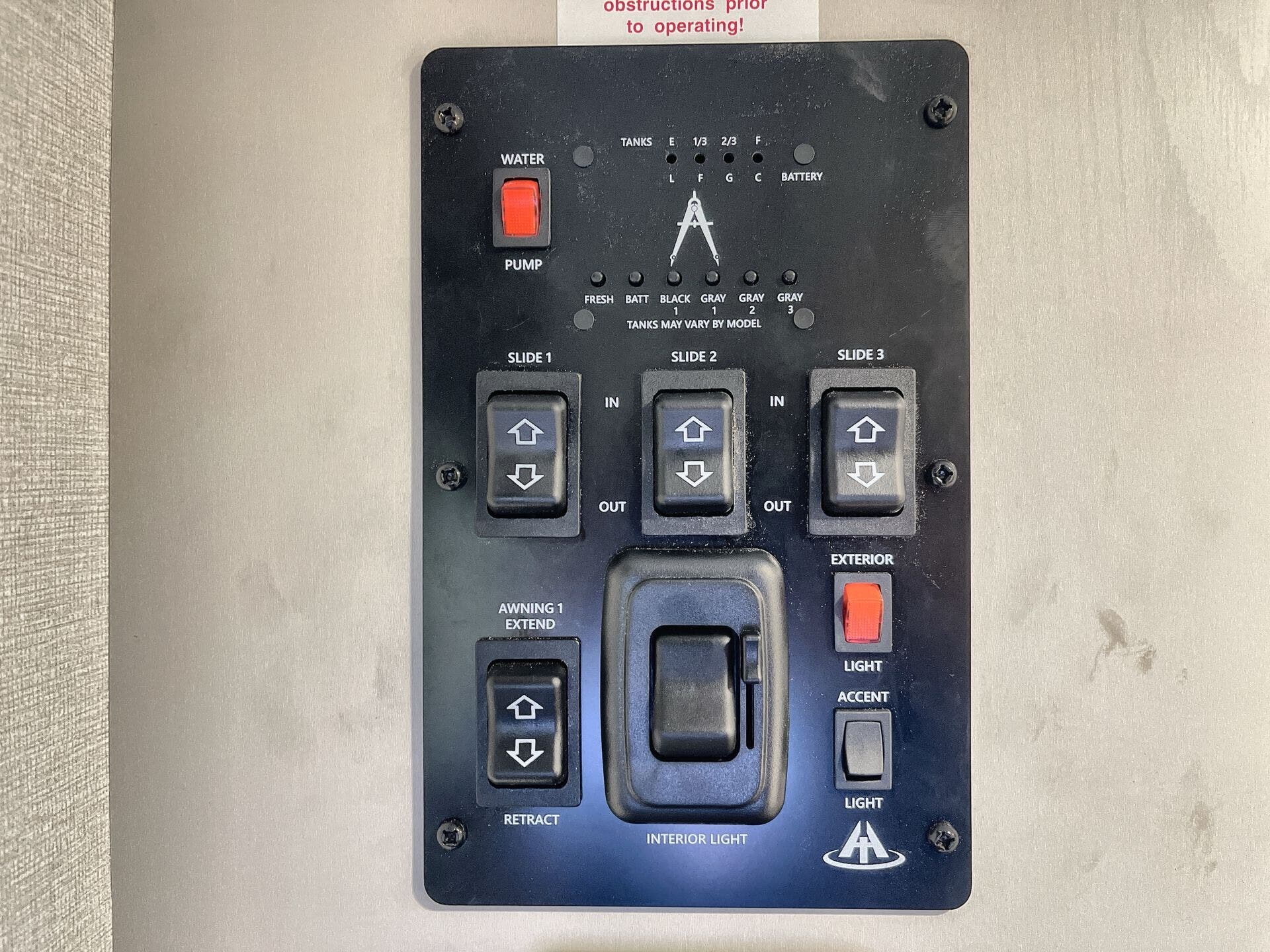 Awning, Black Tank Flush, Detachable, Detachable Power Cord, Enclosed Underbelly, Griddle, Power Awning, Tinted Windows -
