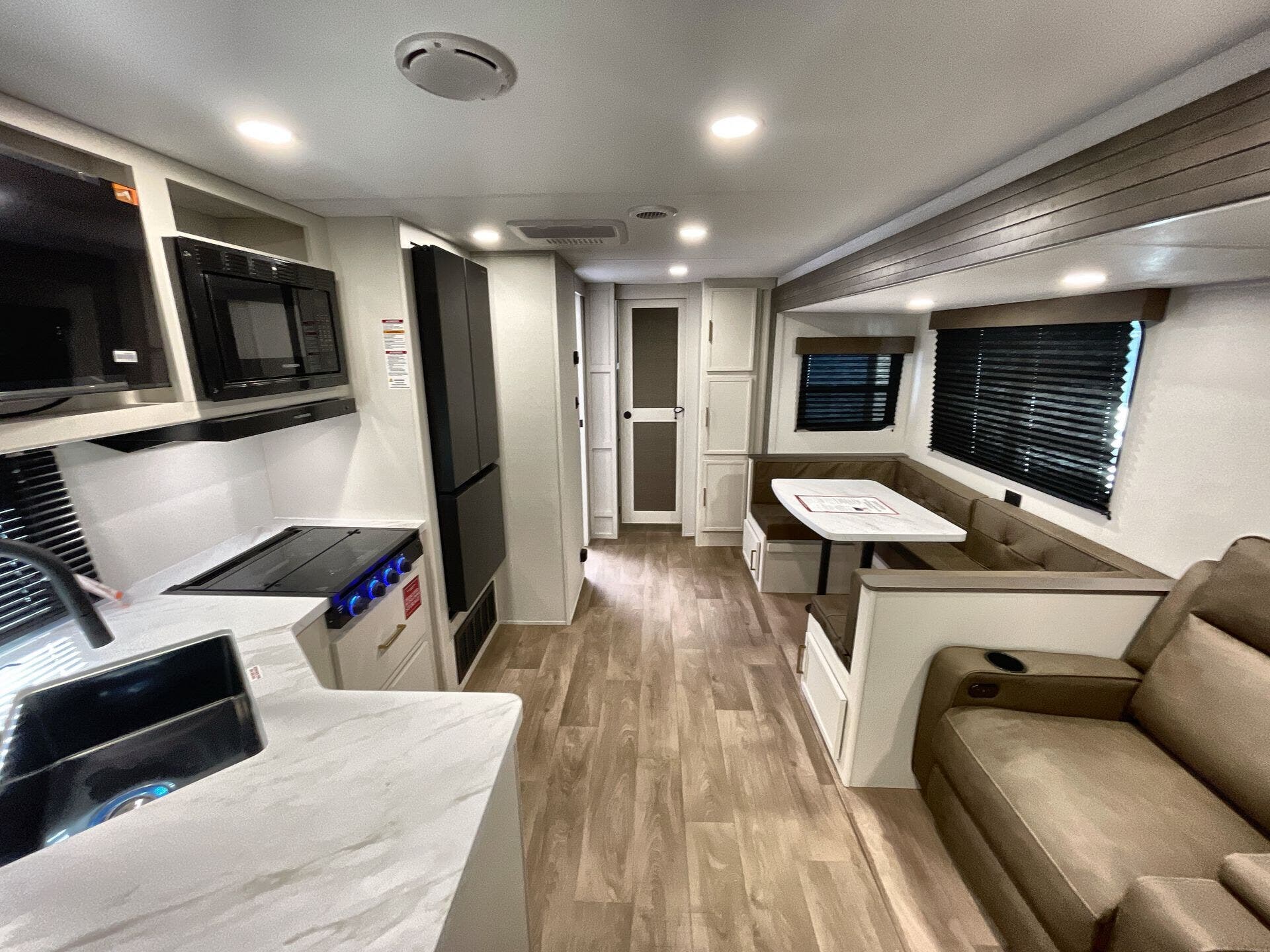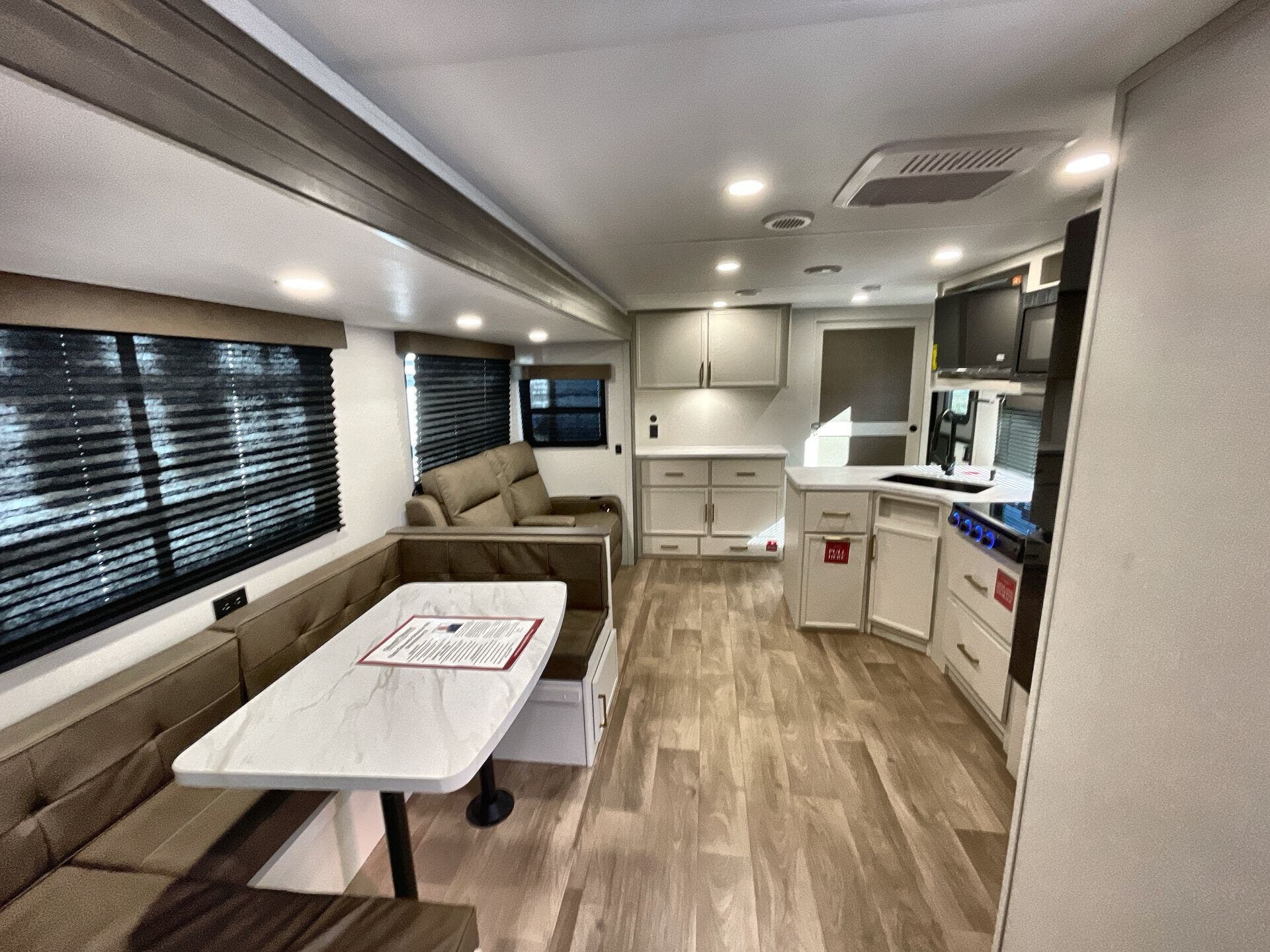 - Interior Layout: Booth Dinette and Dinette provide flexible dining and sleeping arrangements