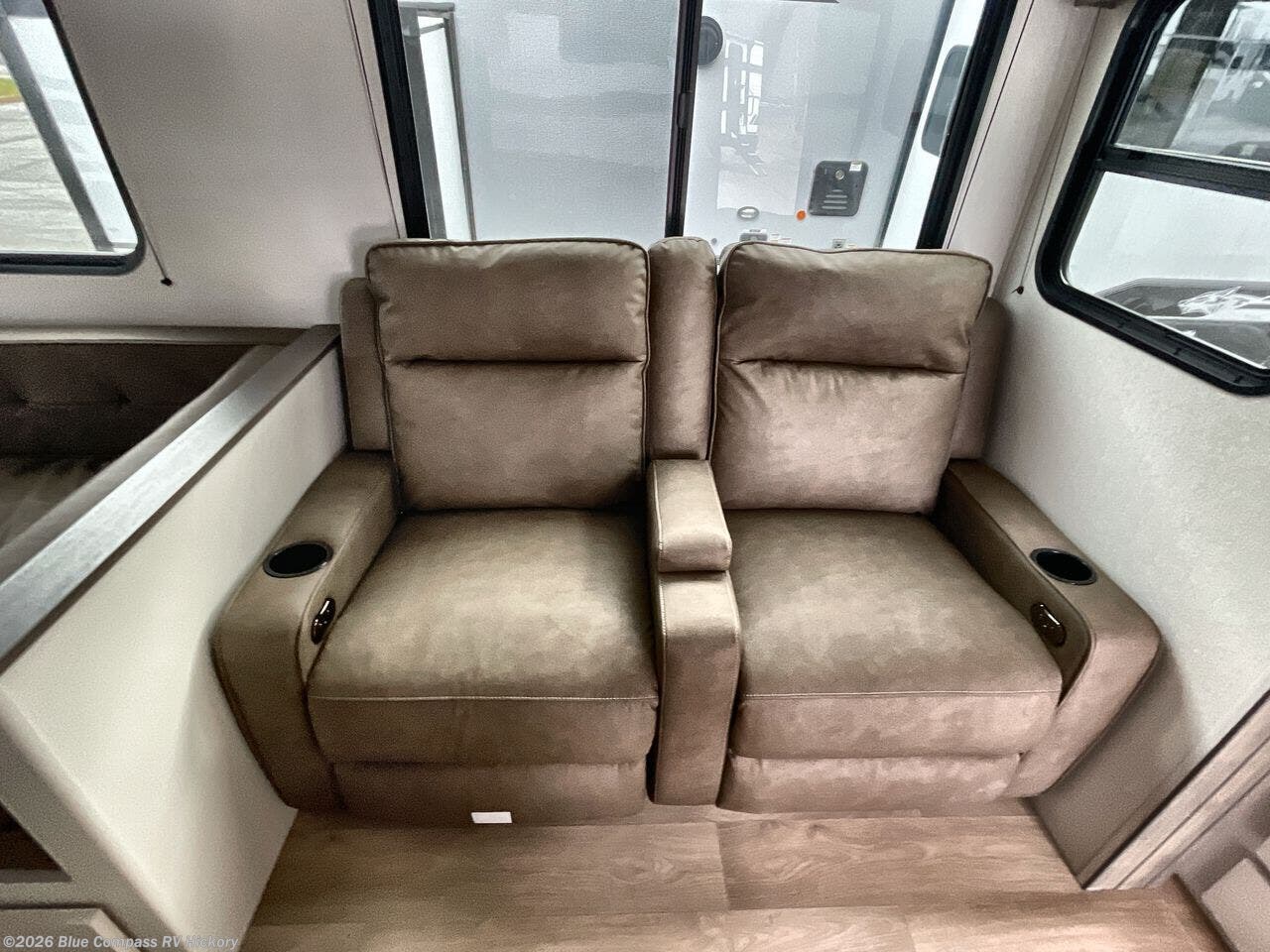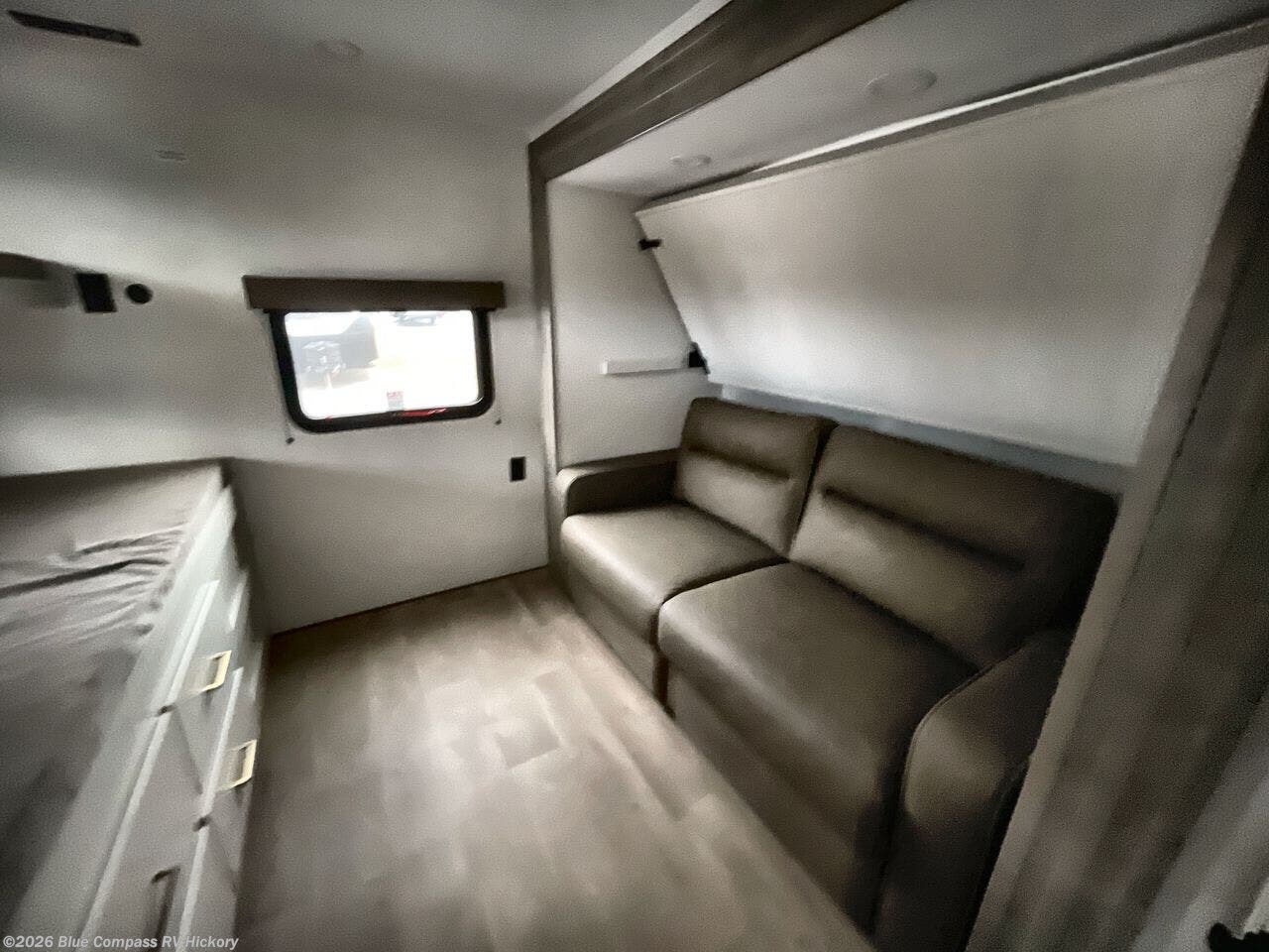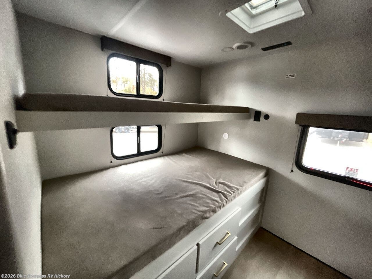 If you're looking for a travel trailer that can house your whole gang, this unit is the one! The rear private bunkhouse can sleep up to five since there is a sleeper sofa and three bunks, plus there are storage drawers for your guests' things. A front private bedroom will be perfect for the owners with a queen bed slide out and spacious front closet with washer and dryer prep! Whether you cook outside on the exterior griddle or inside on the three burner range, you'll be able to make your best meals. There is also a 12V French door refrigerator with a glass front and bottom freezer and a convection microwave/combo air fryer to enjoy some crispy fries! A U-shaped dinette and 60" sleeper sofa within the living room slide provides even more seating and sleeping space, or you can choose the optional theater seating!