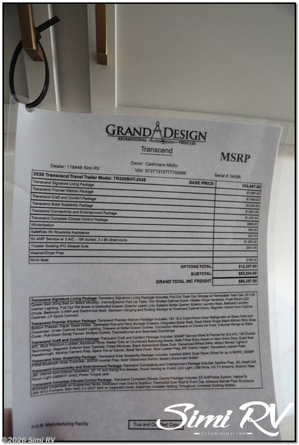 Request More Info on this 2026 Grand Design Transcend 335BHT Offered for sale by Simi RV