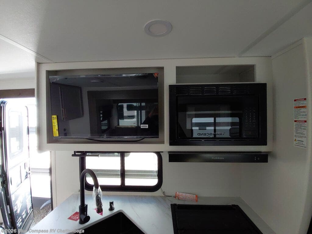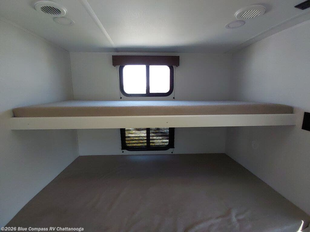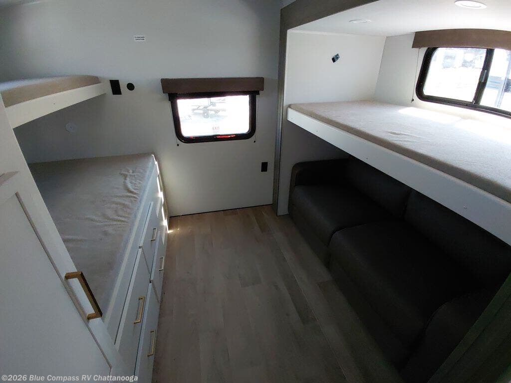If you're looking for a travel trailer that can house your whole gang, this unit is the one! The rear private bunkhouse can sleep up to five since there is a sleeper sofa and three bunks, plus there are storage drawers for your guests' things. A front private bedroom will be perfect for the owners with a queen bed slide out and spacious front closet with washer and dryer prep! Whether you cook outside on the exterior griddle or inside on the three burner range, you'll be able to make your best meals. There is also a 12V French door refrigerator with a glass front and bottom freezer and a convection microwave/combo air fryer to enjoy some crispy fries! A U-shaped dinette and 60" sleeper sofa within the living room slide provides even more seating and sleeping space, or you can choose the optional theater seating!