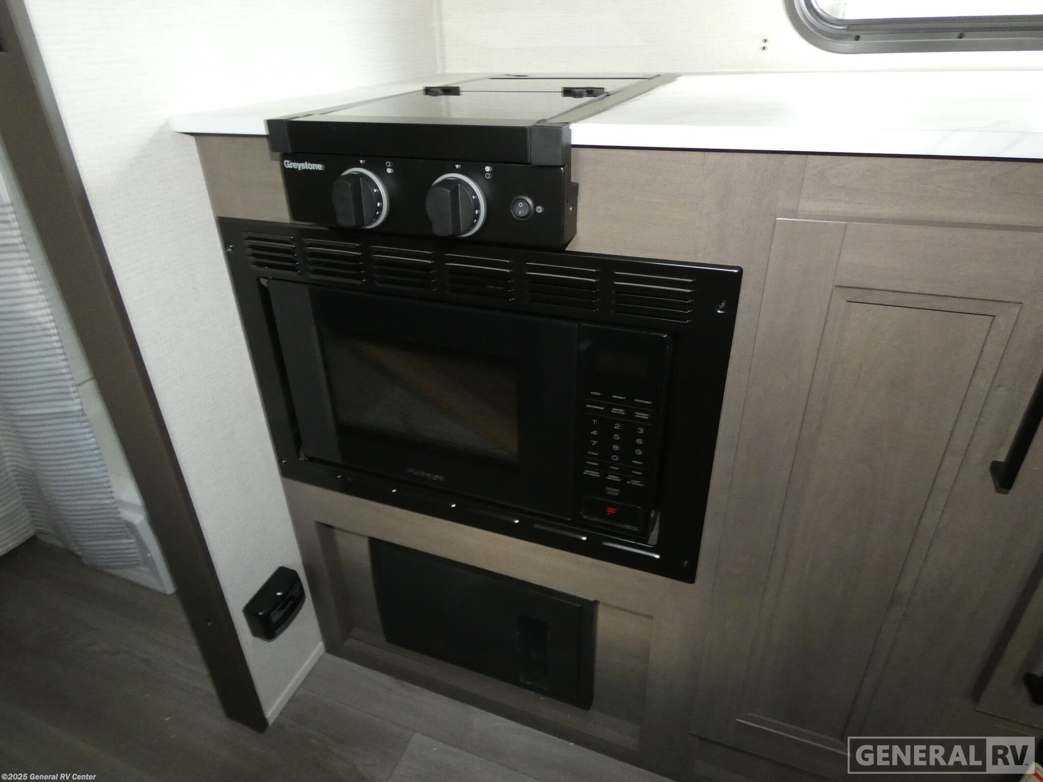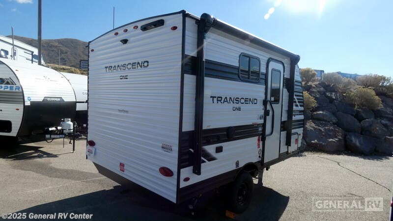 Grand Design Transcend One travel trailer 131DL highlights: Rear Bathroom Interior/Exterior Table Pass Through Storage Foot Flush Toilet Travel in this 131DL model and step inside through the sturdy aluminum entry steps and you'll be greeted by a versatile 60" x 80" Murphy bed that doubles as a comfortable seating area during the day—perfect for relaxing with your furry companion, thanks to the included pet dish. In the center, the kitchen offers all the essentials for preparing a delicious meal, featuring a microwave, 2-burner range, 3.3 cu. ft. refrigerator, and overhead cabinets for added storage. At the rear, enjoy the convenience of a full bathroom complete with a walk-in shower and foot-flush toilet, making life on the road both comfortable and functional. With any Transcend One travel trailer by Grand Design, you will enjoy lightweight towing thanks to their single-axle. There are many interior comforts to make camping easier than ever, such as recessed lighting, residential countertops, and a 6' 6" interior height. Each model is constructed with a heated and enclosed underbelly with suspended tanks, a moisture barrier floor enclosure, and Thermofoil over the roof and front cap for added protection. And a JBL sound system will let you listen to tunes as you visit under the power awning with a Fusion light!