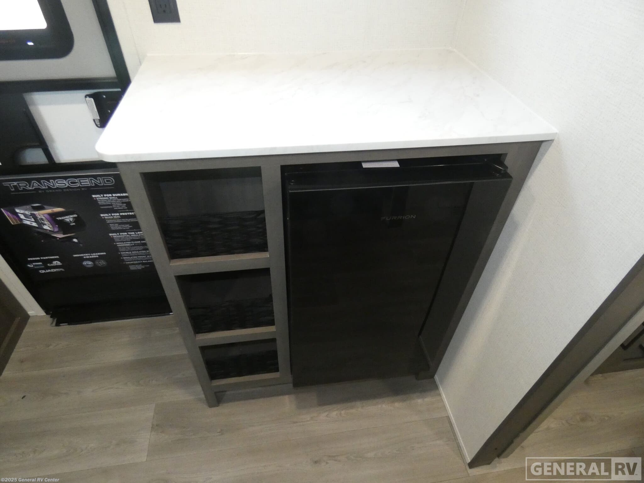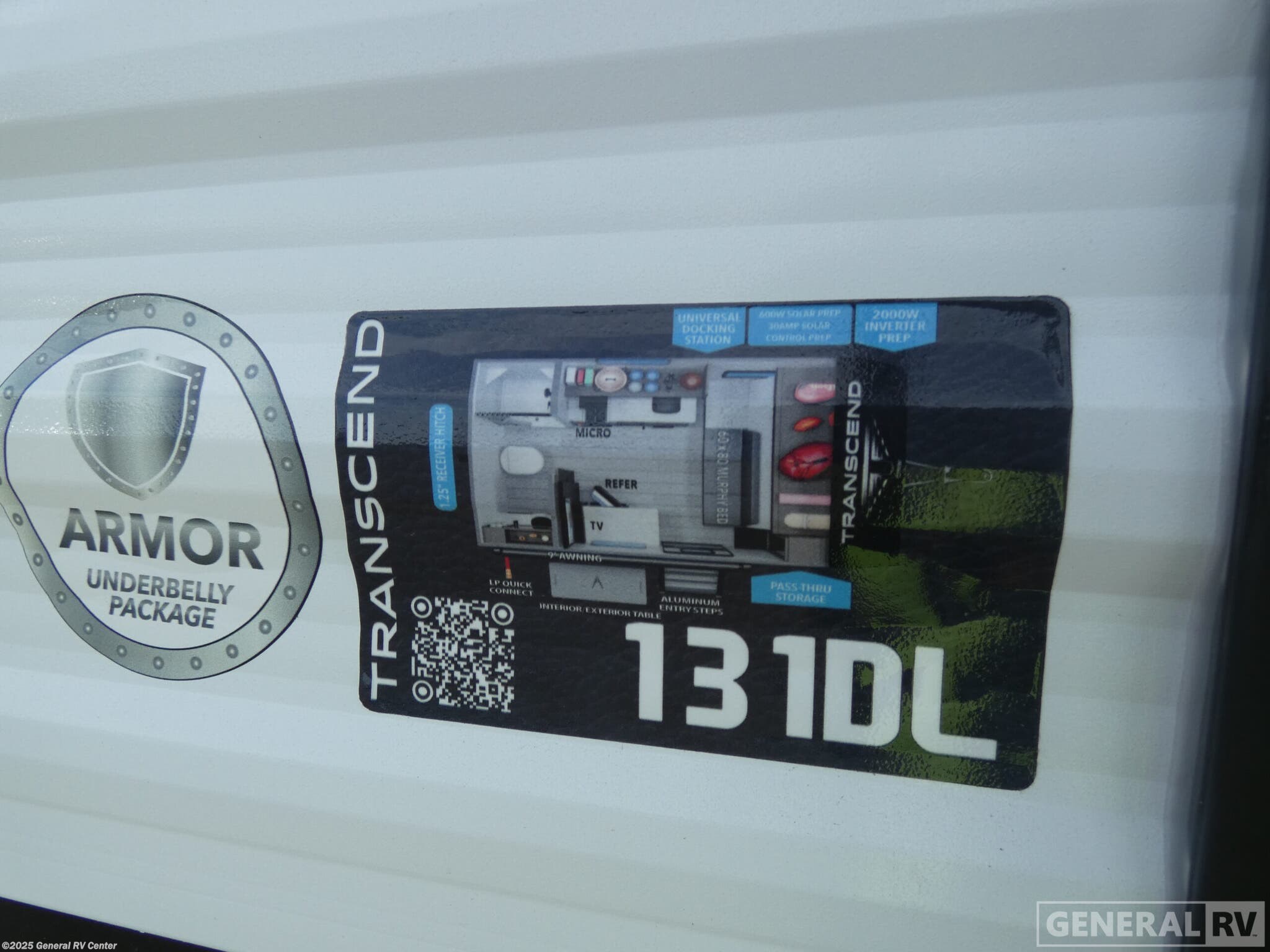 Grand Design Transcend One travel trailer 131DL highlights: Rear Bathroom Interior/Exterior Table Pass Through Storage Foot Flush Toilet Travel in this 131DL model and step inside through the sturdy aluminum entry steps and you'll be greeted by a versatile 60" x 80" Murphy bed that doubles as a comfortable seating area during the day—perfect for relaxing with your furry companion, thanks to the included pet dish. In the center, the kitchen offers all the essentials for preparing a delicious meal, featuring a microwave, 2-burner range, 3.3 cu. ft. refrigerator, and overhead cabinets for added storage. At the rear, enjoy the convenience of a full bathroom complete with a walk-in shower and foot-flush toilet, making life on the road both comfortable and functional. With any Transcend One travel trailer by Grand Design, you will enjoy lightweight towing thanks to their single-axle. There are many interior comforts to make camping easier than ever, such as recessed lighting, residential countertops, and a 6' 6" interior height. Each model is constructed with a heated and enclosed underbelly with suspended tanks, a moisture barrier floor enclosure, and Thermofoil over the roof and front cap for added protection. And a JBL sound system will let you listen to tunes as you visit under the power awning with a Fusion light!