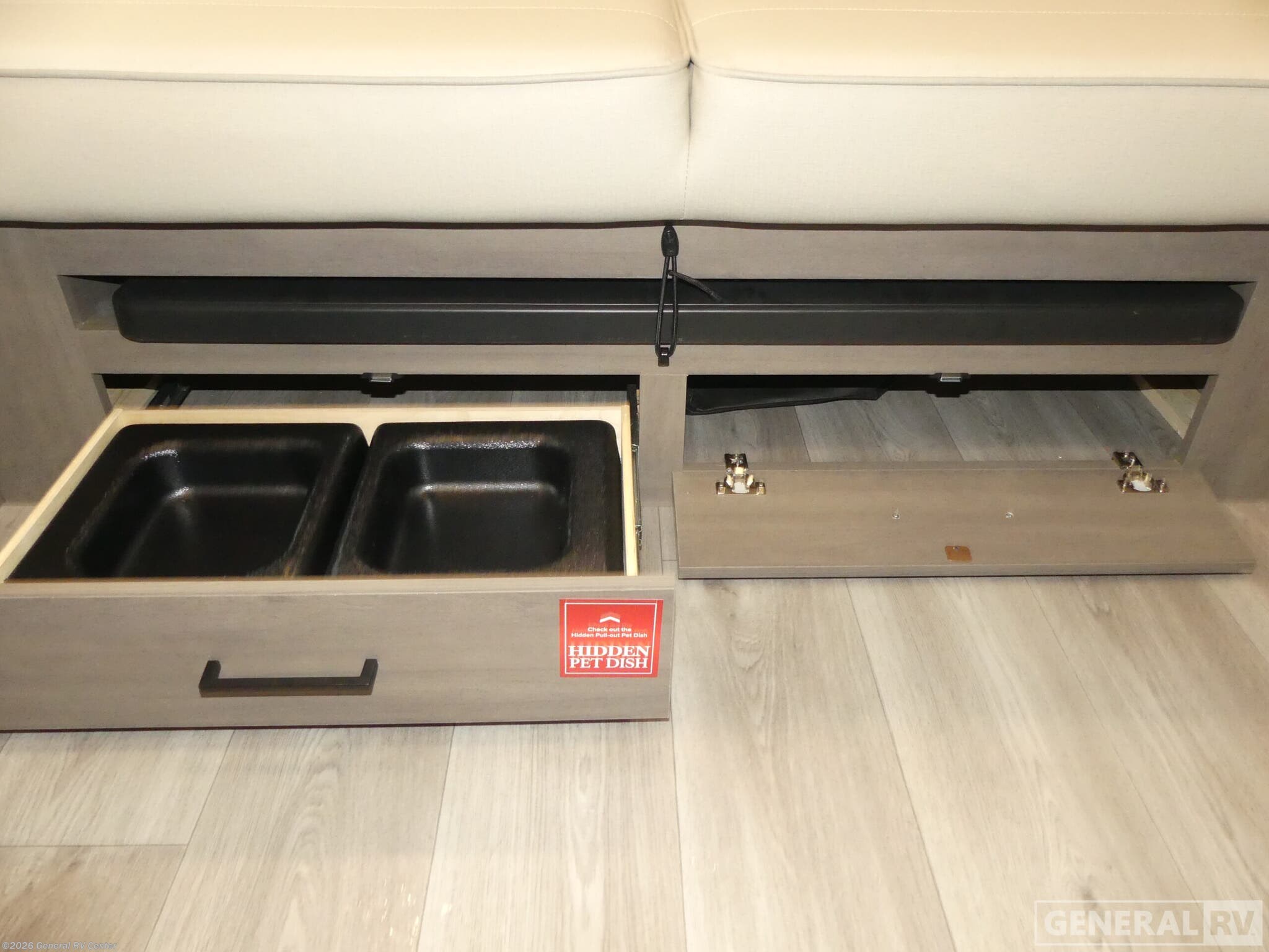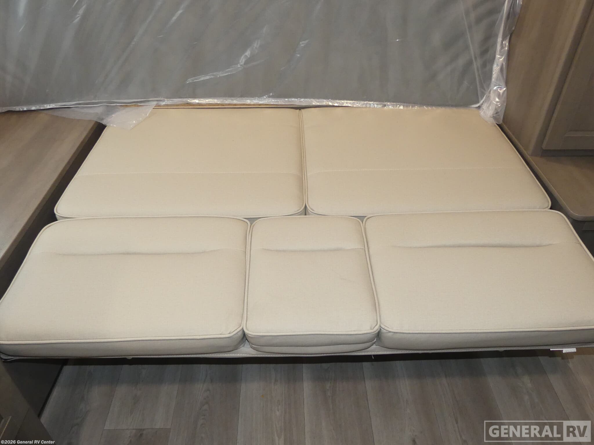 Grand Design Transcend One travel trailer 131DL highlights: Rear Bathroom Interior/Exterior Table Pass Through Storage Foot Flush Toilet Travel in this 131DL model and step inside through the sturdy aluminum entry steps and you'll be greeted by a versatile 60" x 80" Murphy bed that doubles as a comfortable seating area during the day—perfect for relaxing with your furry companion, thanks to the included pet dish. In the center, the kitchen offers all the essentials for preparing a delicious meal, featuring a microwave, 2-burner range, 3.3 cu. ft. refrigerator, and overhead cabinets for added storage. At the rear, enjoy the convenience of a full bathroom complete with a walk-in shower and foot-flush toilet, making life on the road both comfortable and functional. With any Transcend One travel trailer by Grand Design, you will enjoy lightweight towing thanks to their single-axle. There are many interior comforts to make camping easier than ever, such as recessed lighting, residential countertops, and a 6' 6" interior height. Each model is constructed with a heated and enclosed underbelly with suspended tanks, a moisture barrier floor enclosure, and Thermofoil over the roof and front cap for added protection. And a JBL sound system will let you listen to tunes as you visit under the power awning with a Fusion light!