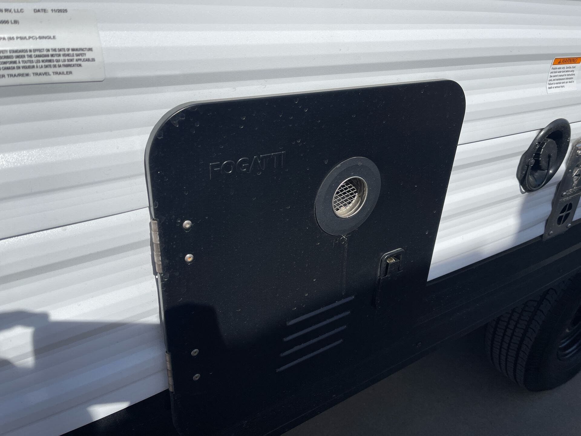 Awning, Black Tank Flush, Detachable, Detachable Power Cord, Enclosed Underbelly, Hitch, Ladder, Power Awning, Tinted Windows -