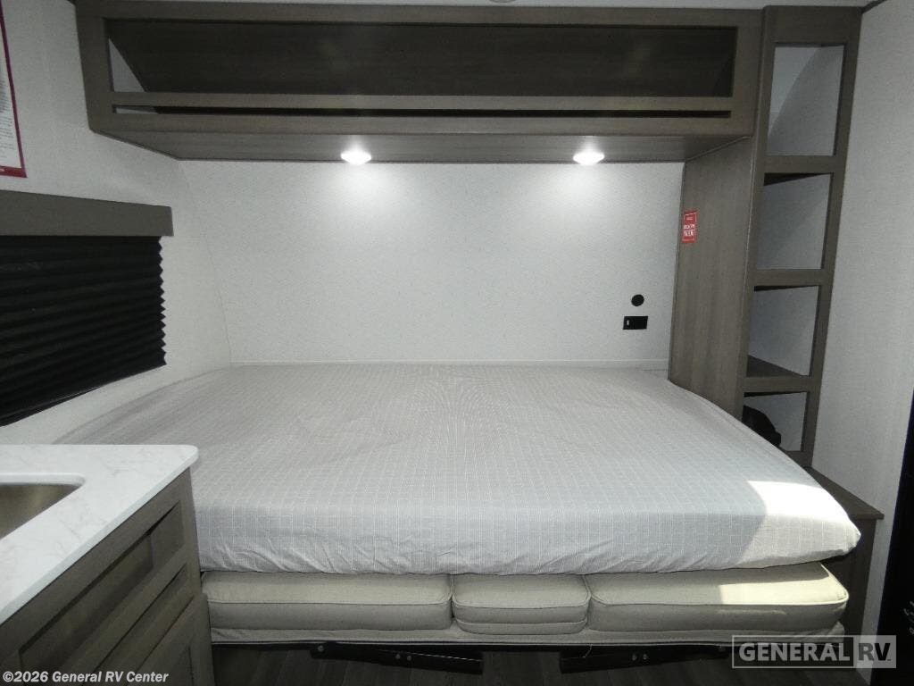 Grand Design Transcend One travel trailer 131DL highlights: Rear Bathroom Interior/Exterior Table Pass Through Storage Foot Flush Toilet Travel in this 131DL model and step inside through the sturdy aluminum entry steps and you'll be greeted by a versatile 60" x 80" Murphy bed that doubles as a comfortable seating area during the day—perfect for relaxing with your furry companion, thanks to the included pet dish. In the center, the kitchen offers all the essentials for preparing a delicious meal, featuring a microwave, 2-burner range, 3.3 cu. ft. refrigerator, and overhead cabinets for added storage. At the rear, enjoy the convenience of a full bathroom complete with a walk-in shower and foot-flush toilet, making life on the road both comfortable and functional. With any Transcend One travel trailer by Grand Design, you will enjoy lightweight towing thanks to their single-axle. There are many interior comforts to make camping easier than ever, such as recessed lighting, residential countertops, and a 6' 6" interior height. Each model is constructed with a heated and enclosed underbelly with suspended tanks, a moisture barrier floor enclosure, and Thermofoil over the roof and front cap for added protection. And a JBL sound system will let you listen to tunes as you visit under the power awning with a Fusion light!