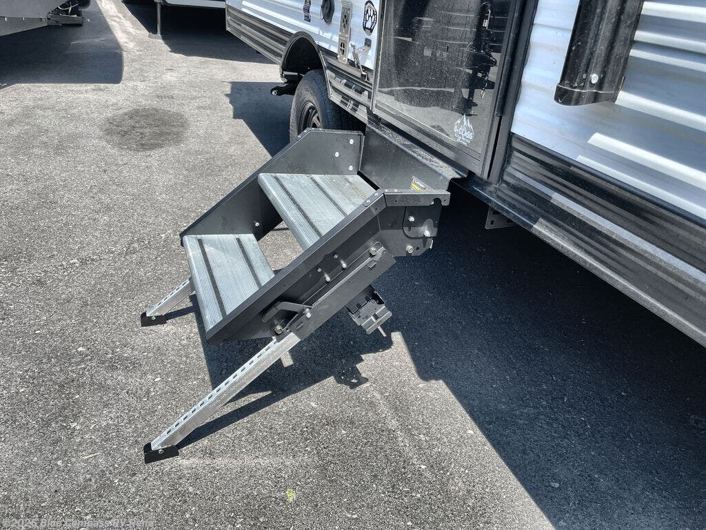 Camping trips to the lake have never been easier than with this travel trailer! The 28" x 67" bunks are right next to the private bath for easy nighttime use, and the front queen bed includes hidden storage for your things. There is also a 66" Jack knife sofa that provides a little more sleeping space for guests. A full kitchen lets you cook meals each day and there is an exterior LP quick connect if you want to fire up your own propane grill.