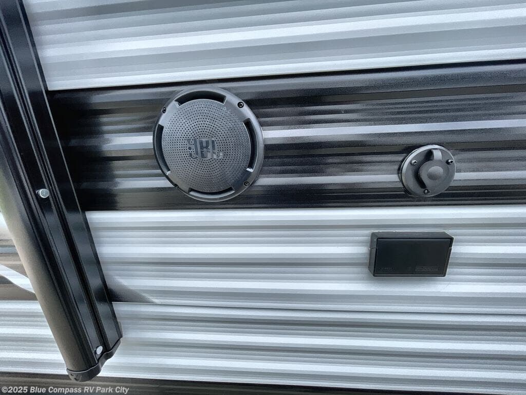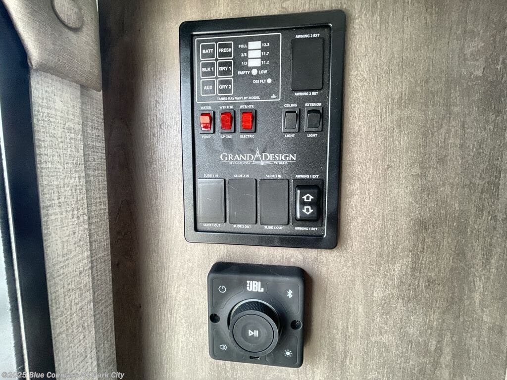 With any Transcend One travel trailer by Grand Design, you will enjoy lightweight towing thanks to their single-axle. There are many interior comforts to make camping easier than ever, such as recessed lighting, residential countertops, and a 6' 6" interior height. Each model is constructed with a heated and enclosed underbelly with suspended tanks, a moisture barrier floor enclosure, and Thermofoil over the roof and front cap for added protection. And a JBL sound system will let you listen to tunes as you visit under the power awning with a Fusion light!