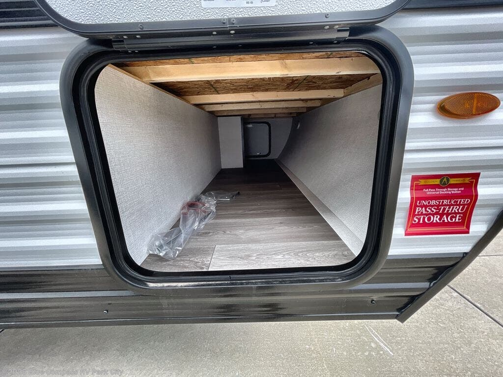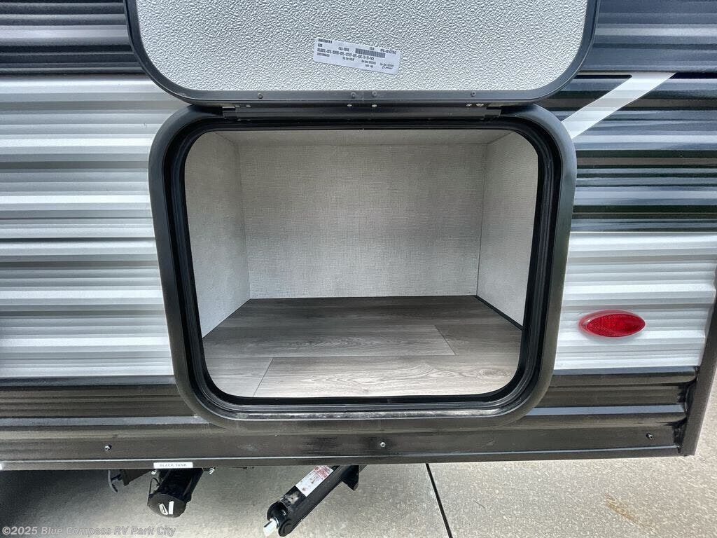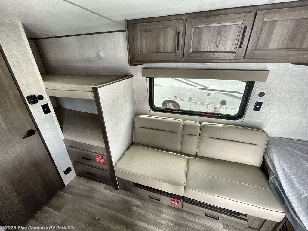 Camping trips to the lake have never been easier than with this travel trailer! The 28" x 67" bunks are right next to the private bath for easy nighttime use, and the front queen bed includes hidden storage for your things. There is also a 66" Jack knife sofa that provides a little more sleeping space for guests. A full kitchen lets you cook meals each day and there is an exterior LP quick connect if you want to fire up your own propane grill.