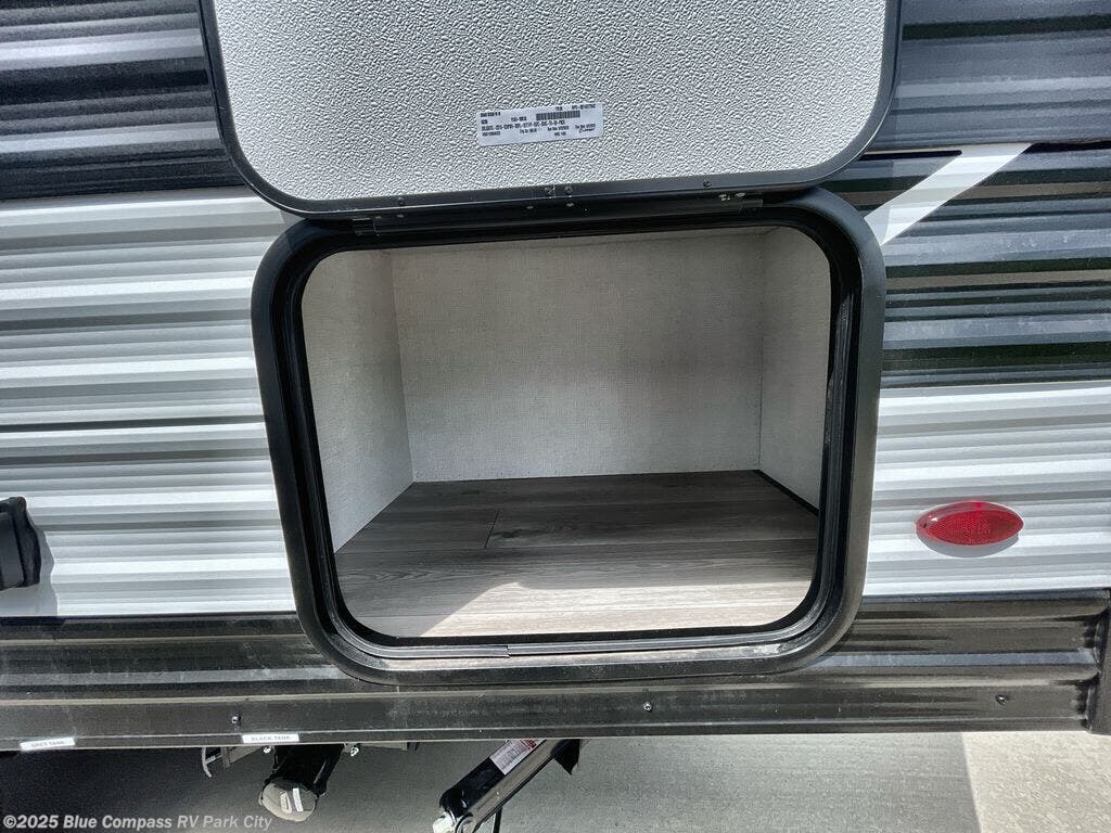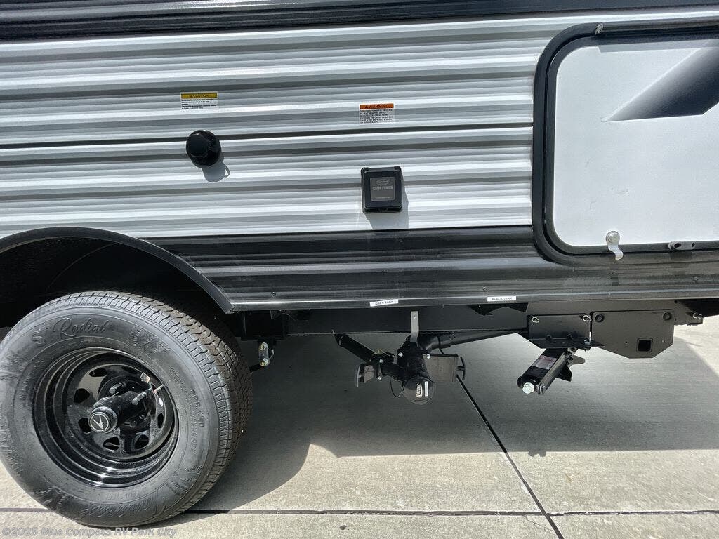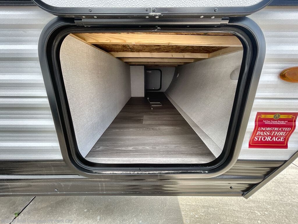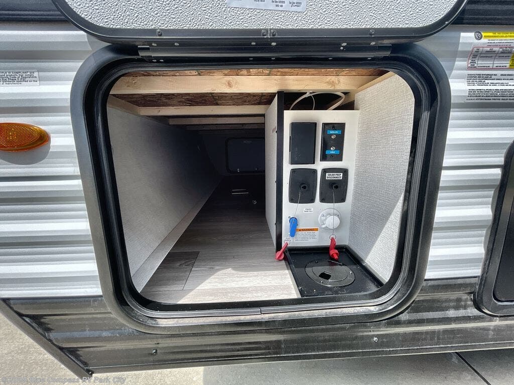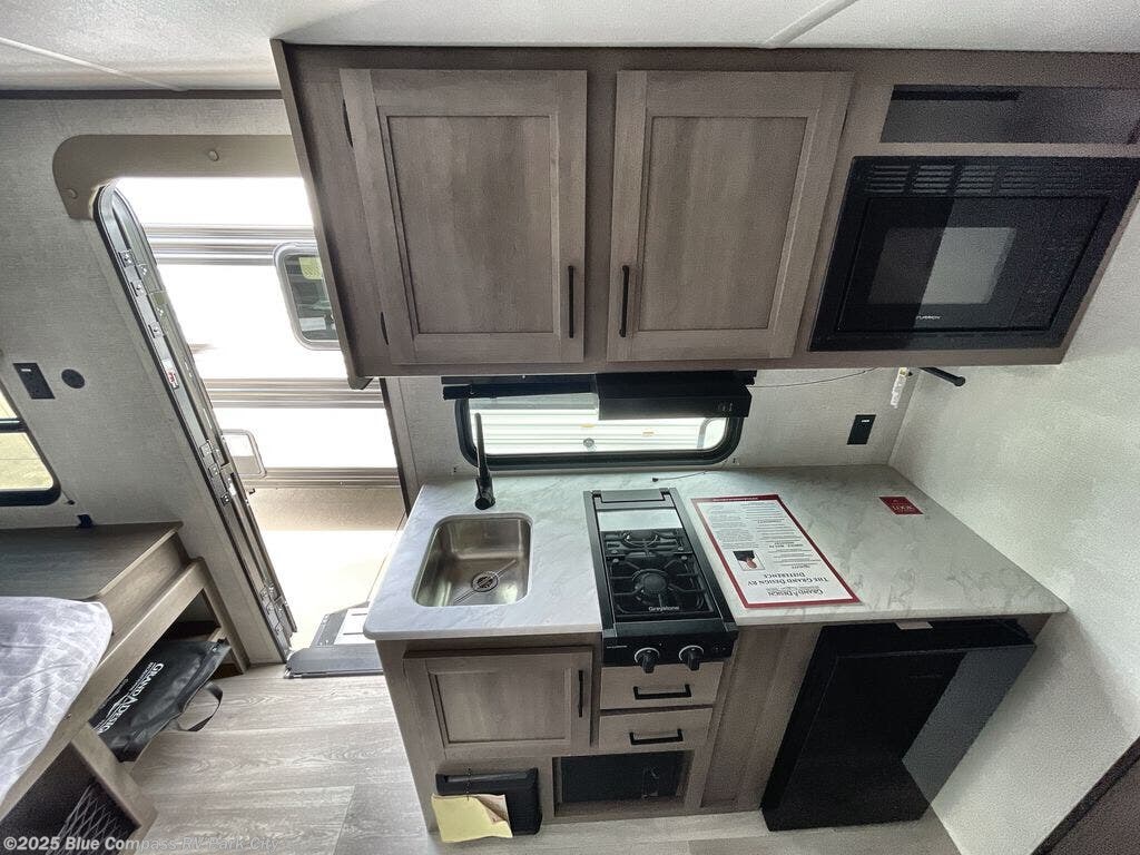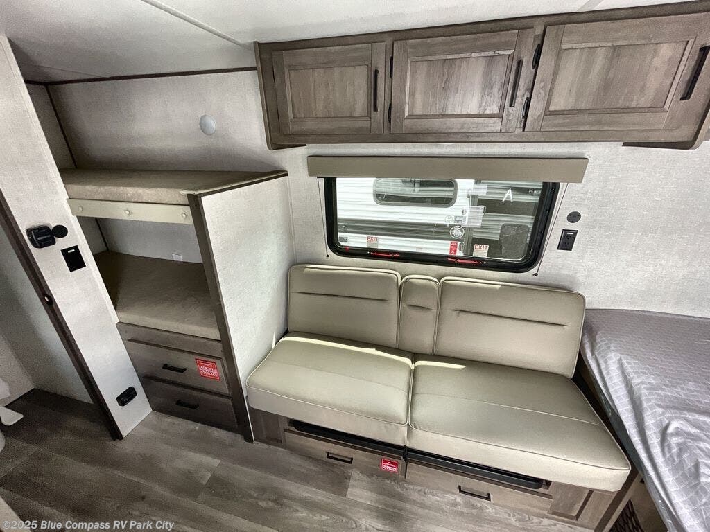 Camping trips to the lake have never been easier than with this travel trailer! The 28" x 67" bunks are right next to the private bath for easy nighttime use, and the front queen bed includes hidden storage for your things. There is also a 66" Jack knife sofa that provides a little more sleeping space for guests. A full kitchen lets you cook meals each day and there is an exterior LP quick connect if you want to fire up your own propane grill.