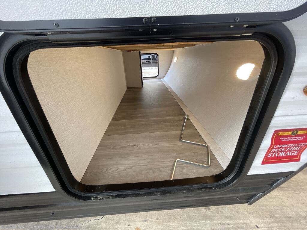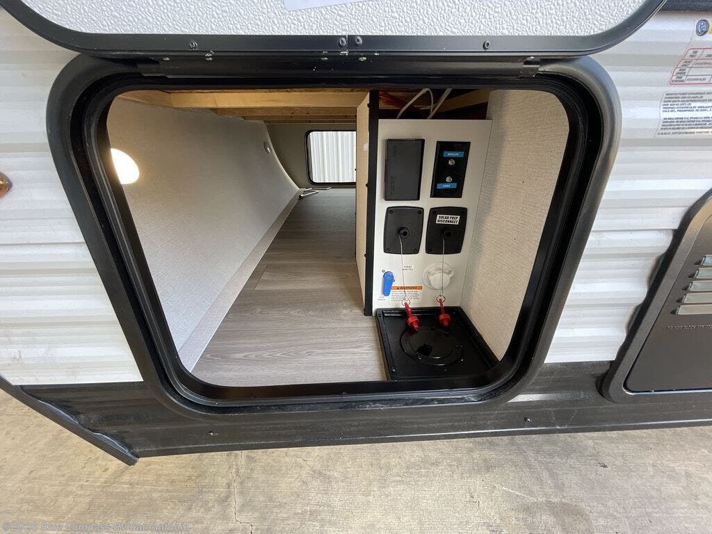 Camping trips to the lake have never been easier than with this travel trailer! The 28" x 67" bunks are right next to the private bath for easy nighttime use, and the front queen bed includes hidden storage for your things. There is also a 66" Jack knife sofa that provides a little more sleeping space for guests. A full kitchen lets you cook meals each day and there is an exterior LP quick connect if you want to fire up your own propane grill.