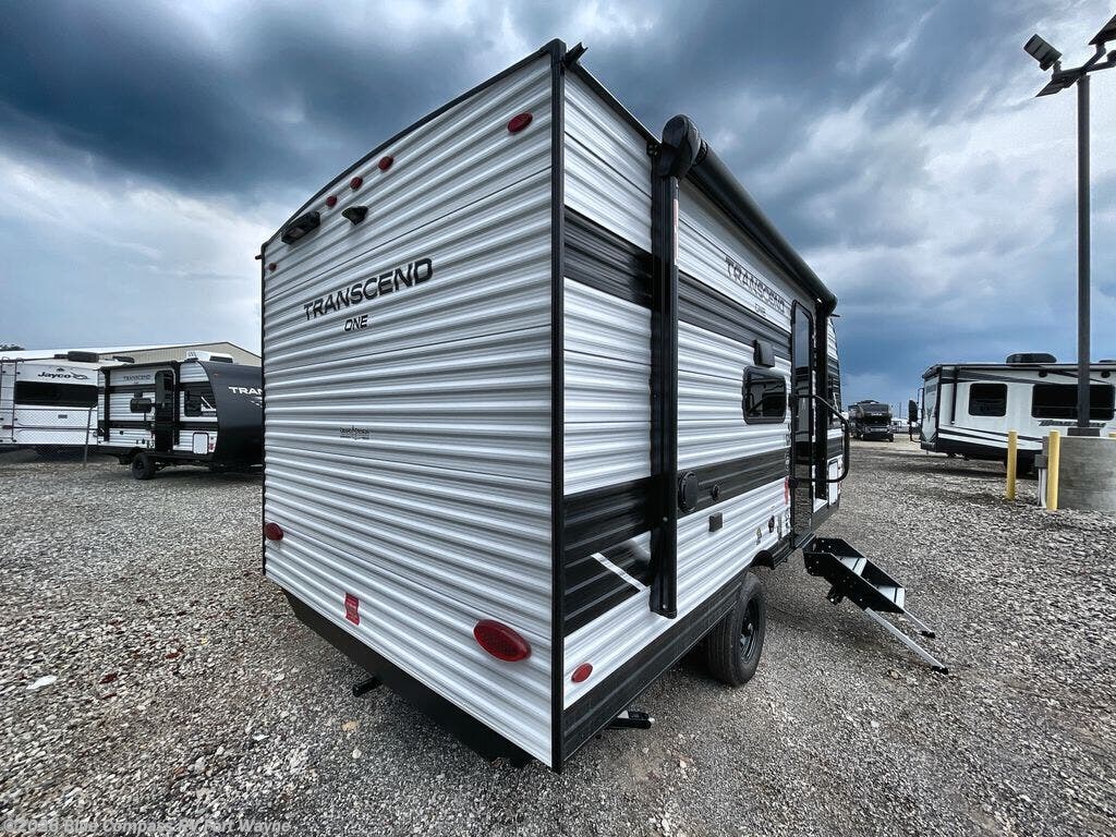 With any Transcend One travel trailer by Grand Design, you will enjoy lightweight towing thanks to their single-axle. There are many interior comforts to make camping easier than ever, such as recessed lighting, residential countertops, and a 6' 6" interior height. Each model is constructed with a heated and enclosed underbelly with suspended tanks, a moisture barrier floor enclosure, and Thermofoil over the roof and front cap for added protection. And a JBL sound system will let you listen to tunes as you visit under the power awning with a Fusion light!